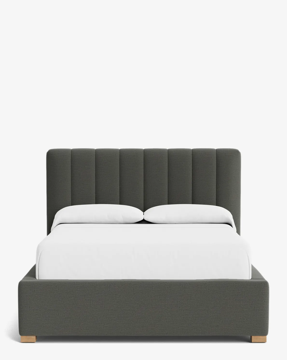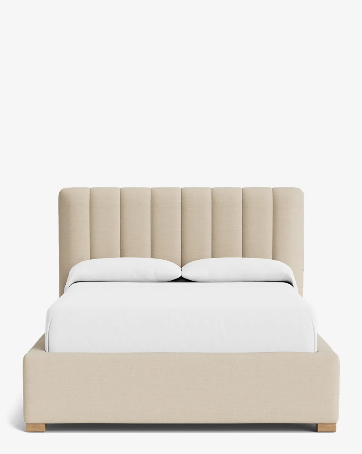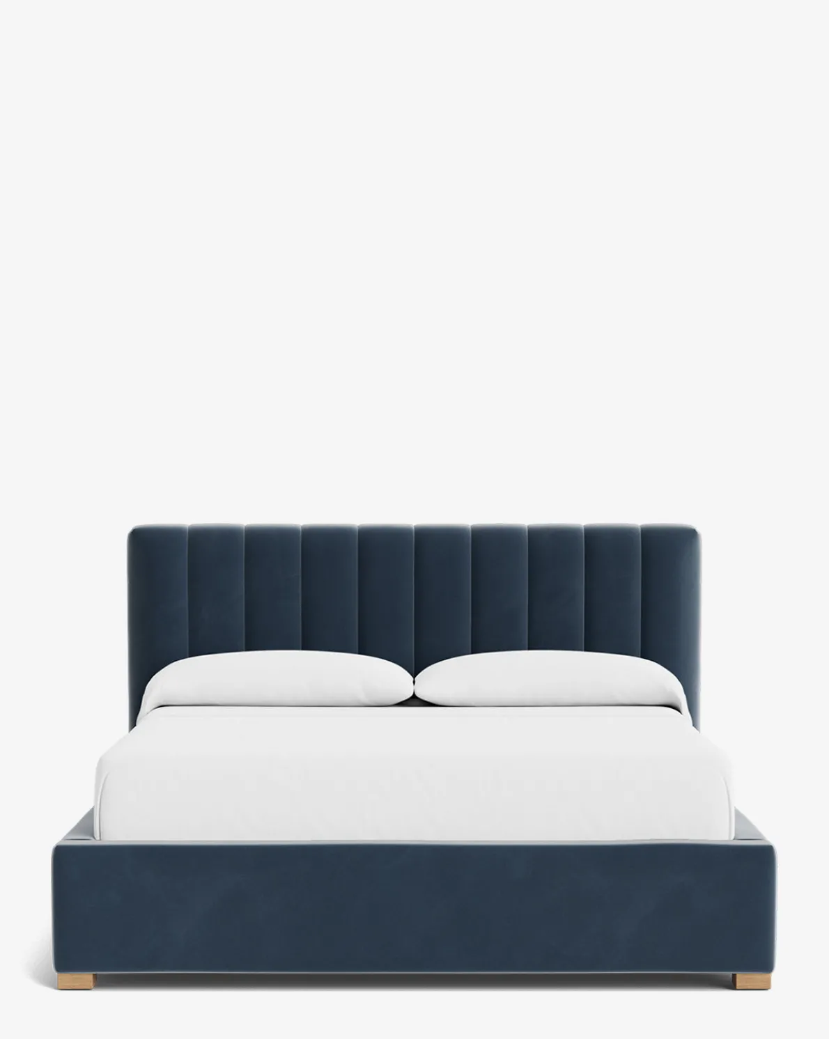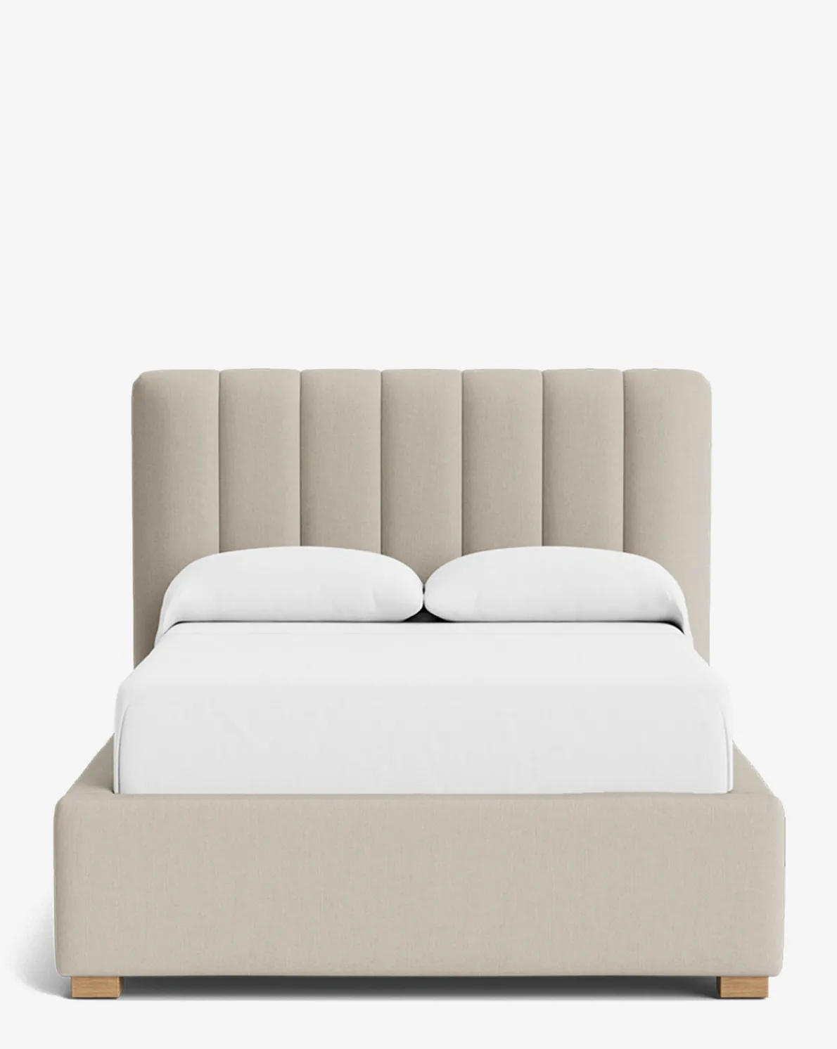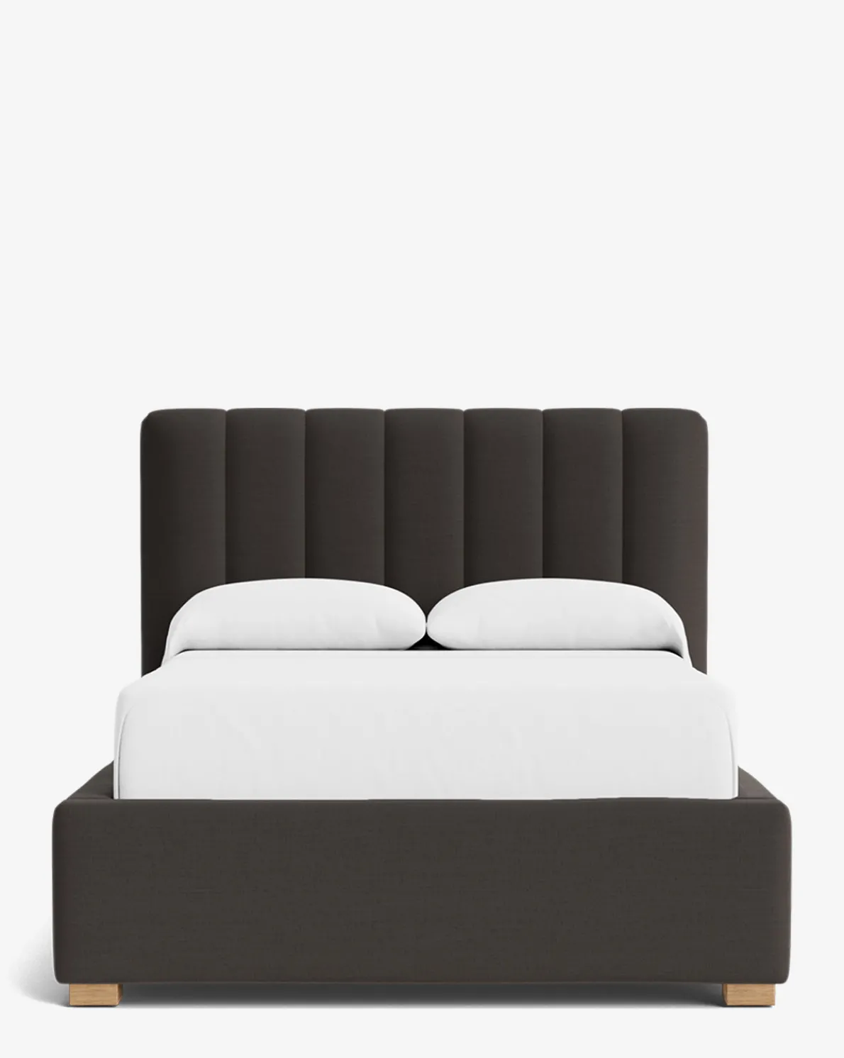 Fully upholstered on a bench-made alder wood frame, the Hoffman Bed with 52″ Headboard is customizable in a variety of high-quality fabrics, each hand-selected by our team for their beauty and durability. With distinct channels that flow through the headboard and subtle wood block feet, the bed brings a refined touch to classic bed designs.