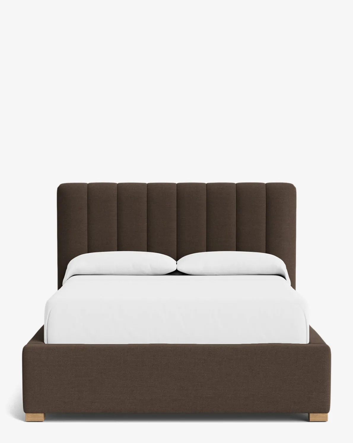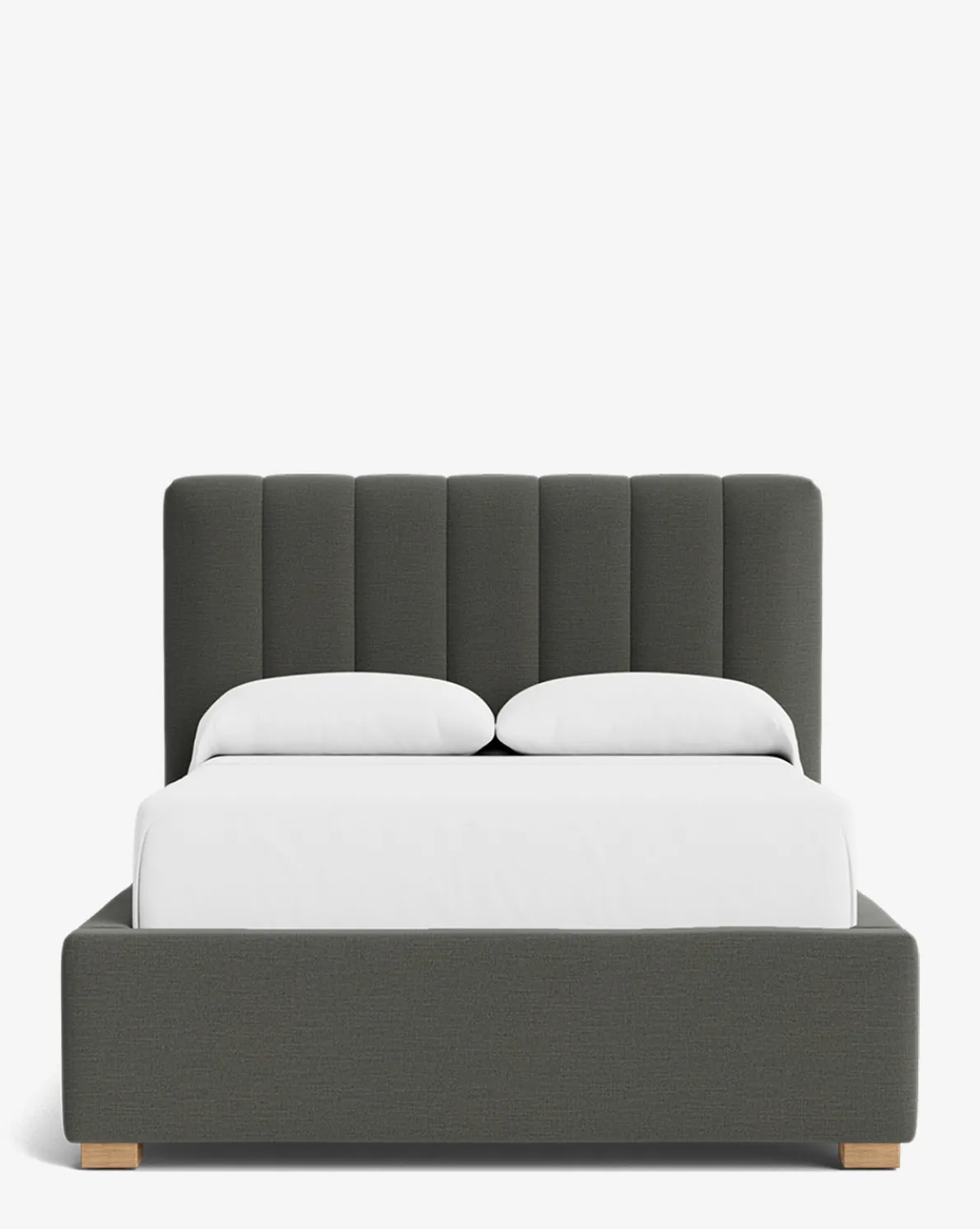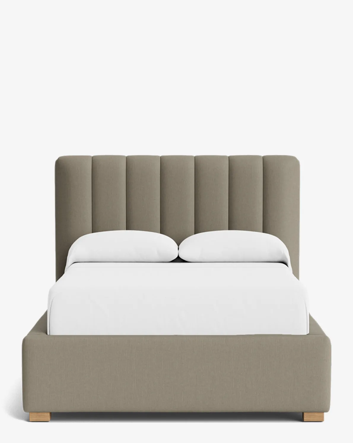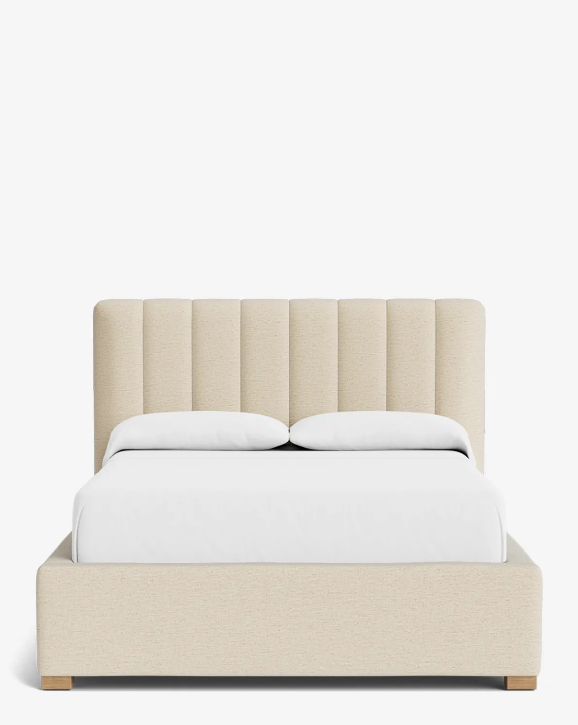 Fully upholstered on a bench-made alder wood frame, the Hoffman Bed with 52″ Headboard is customizable in a variety of high-quality fabrics, each hand-selected by our team for their beauty and durability. With distinct channels that flow through the headboard and subtle wood block feet, the bed brings a refined touch to classic bed designs.