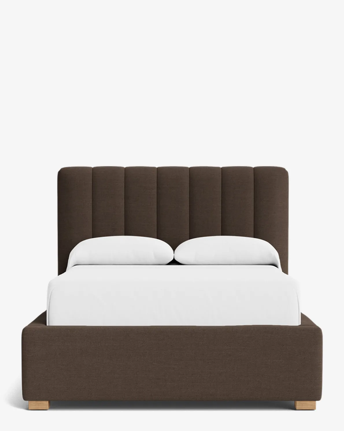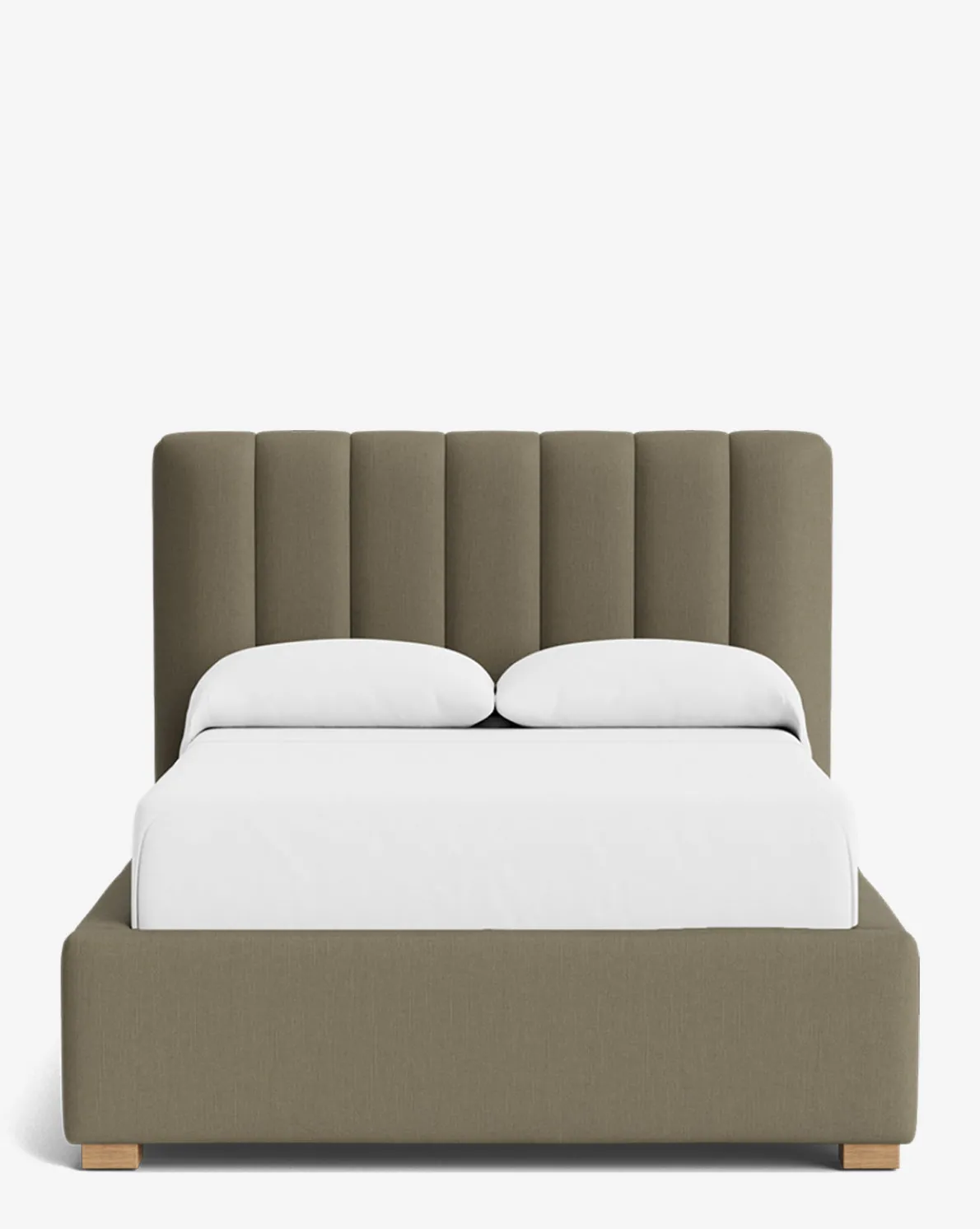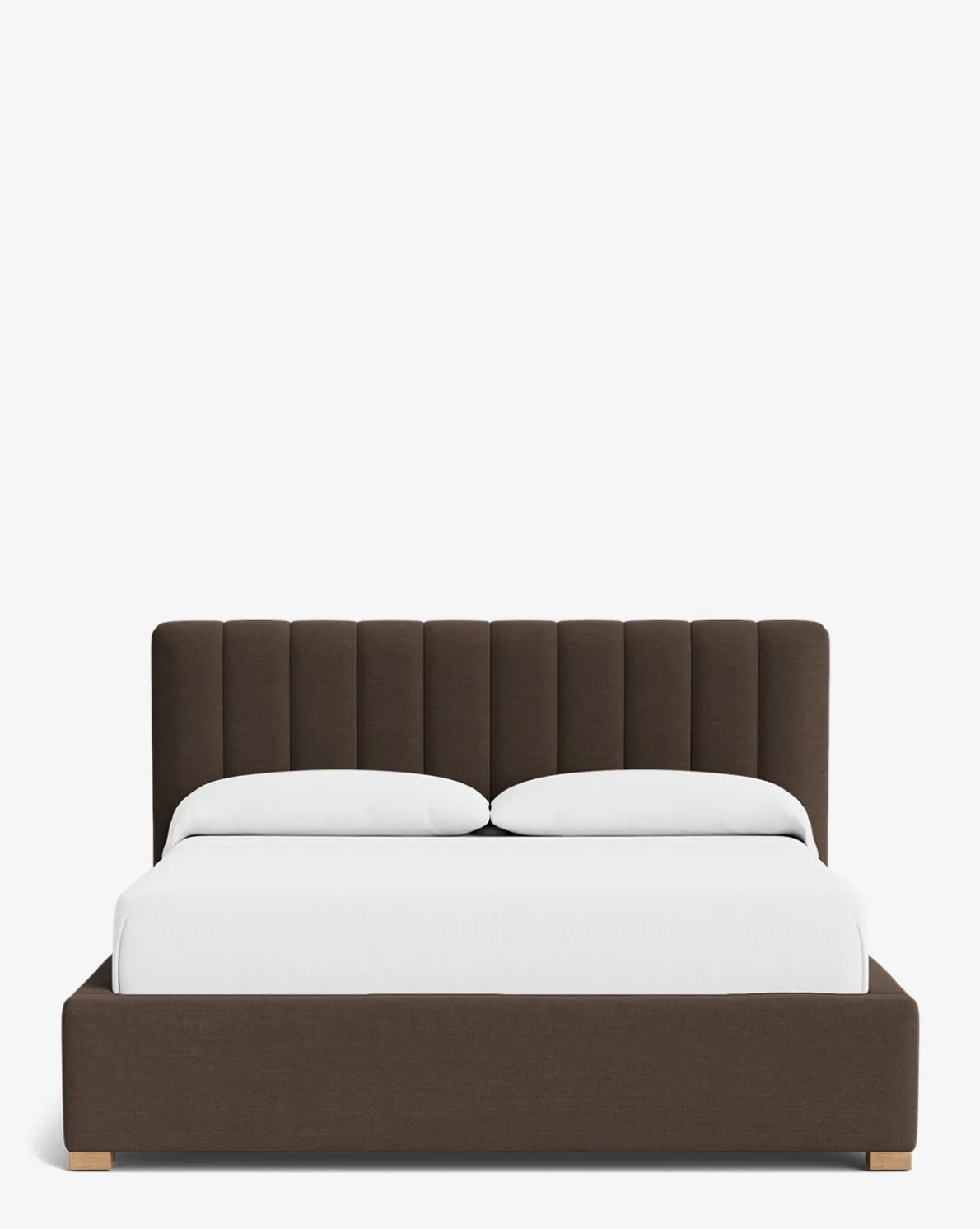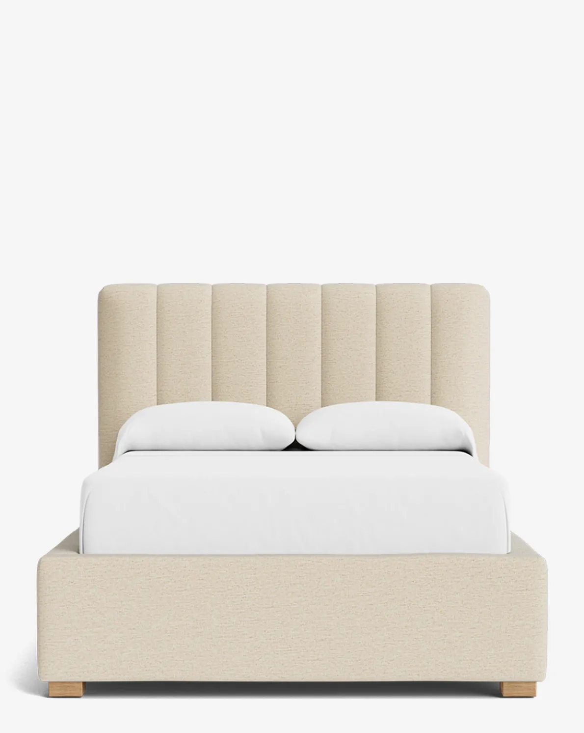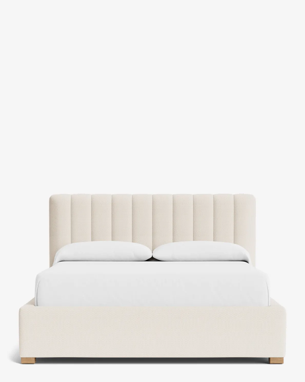 Fully upholstered on a bench-made alder wood frame, the Hoffman Bed with 52″ Headboard is customizable in a variety of high-quality fabrics, each hand-selected by our team for their beauty and durability. With distinct channels that flow through the headboard and subtle wood block feet, the bed brings a refined touch to classic bed designs.