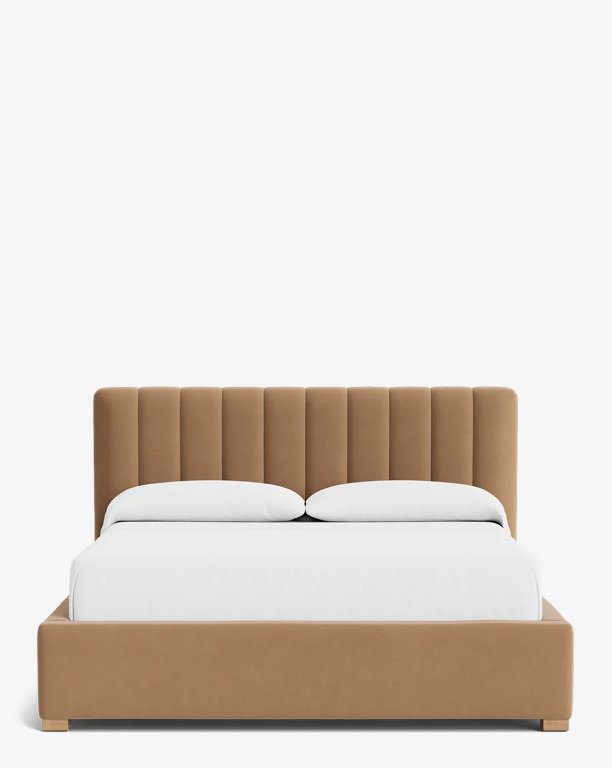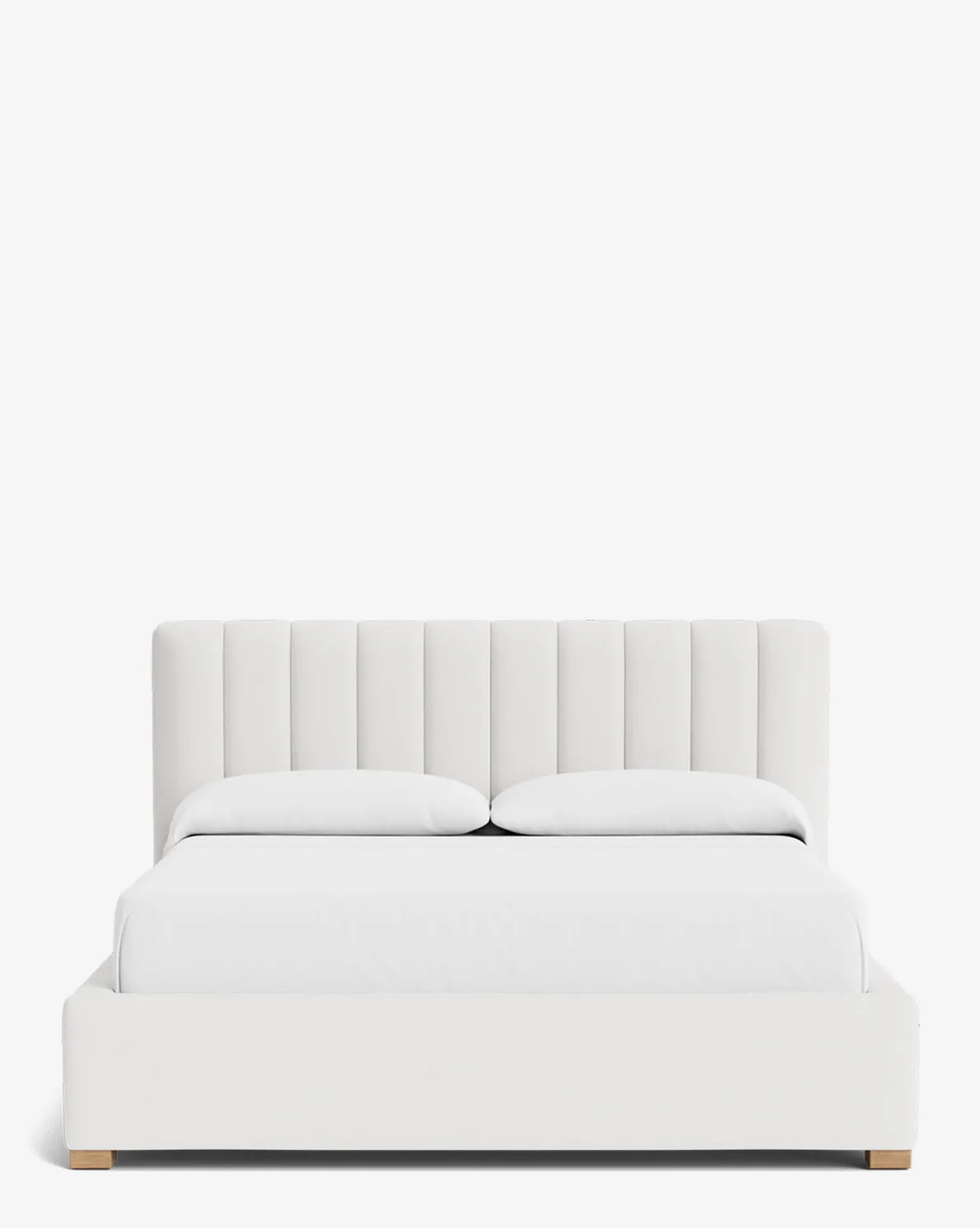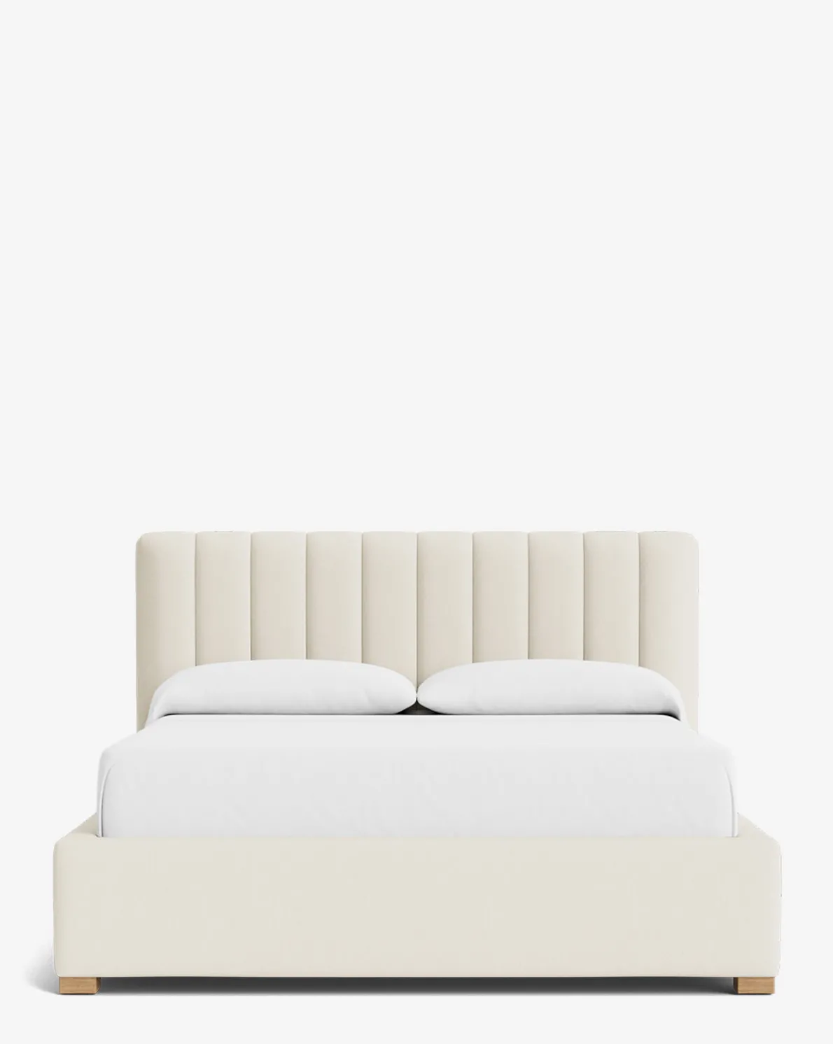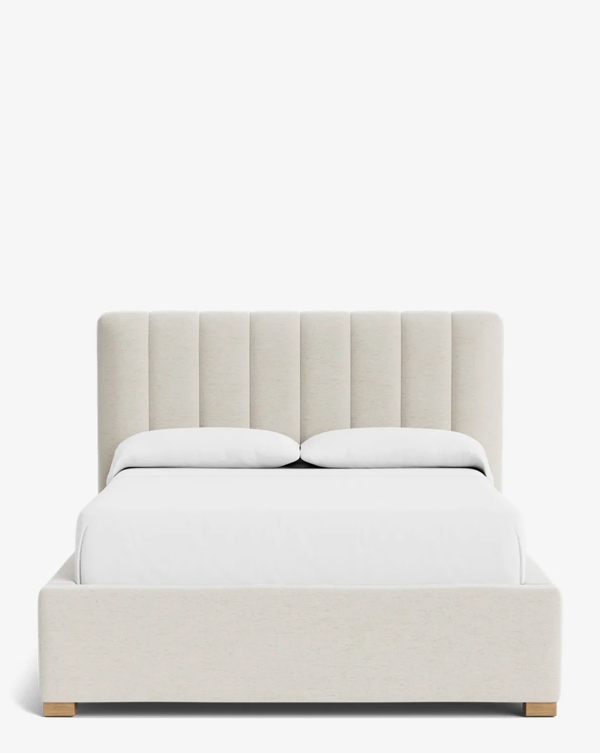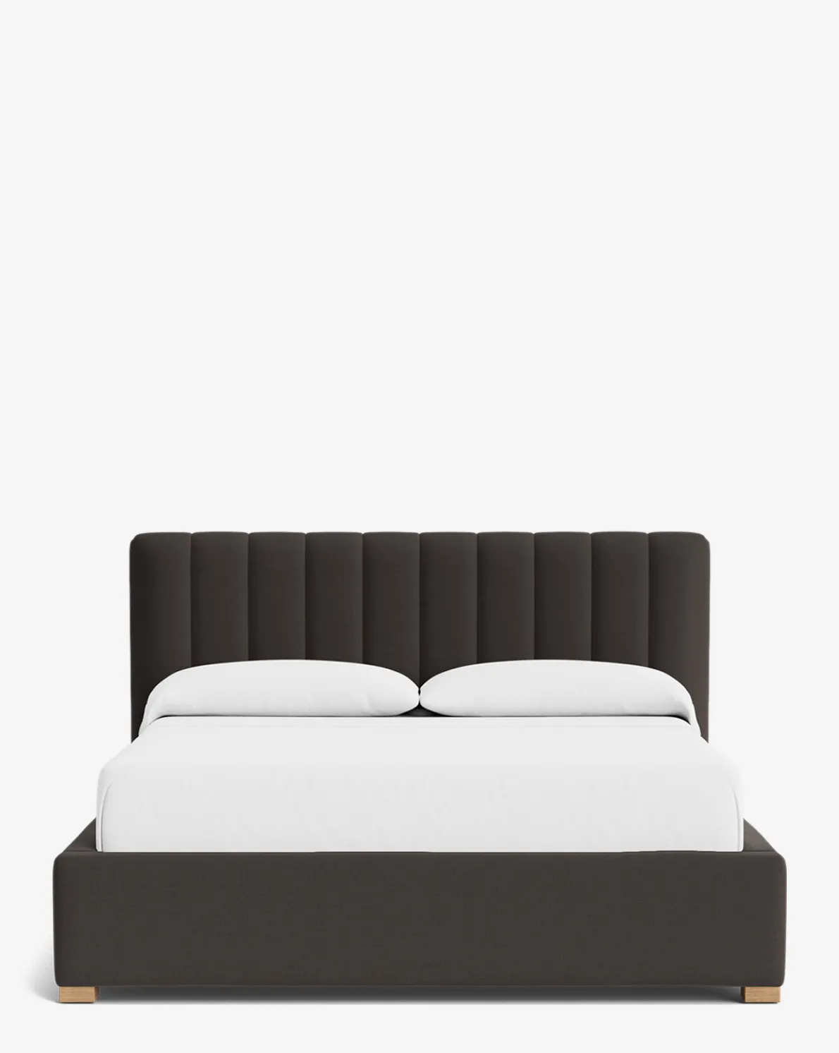 Fully upholstered on a bench-made alder wood frame, the Hoffman Bed with 52″ Headboard is customizable in a variety of high-quality fabrics, each hand-selected by our team for their beauty and durability. With distinct channels that flow through the headboard and subtle wood block feet, the bed brings a refined touch to classic bed designs.