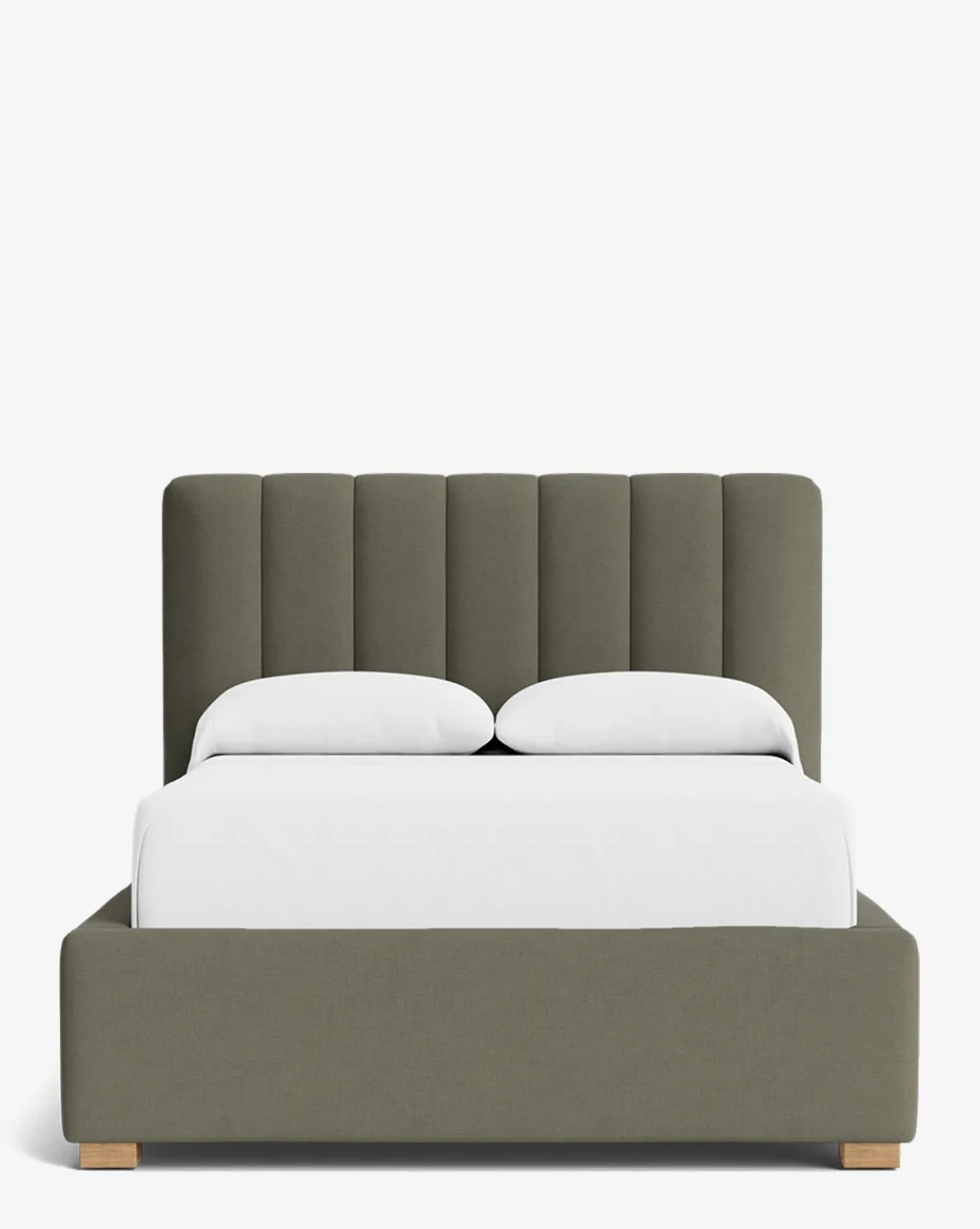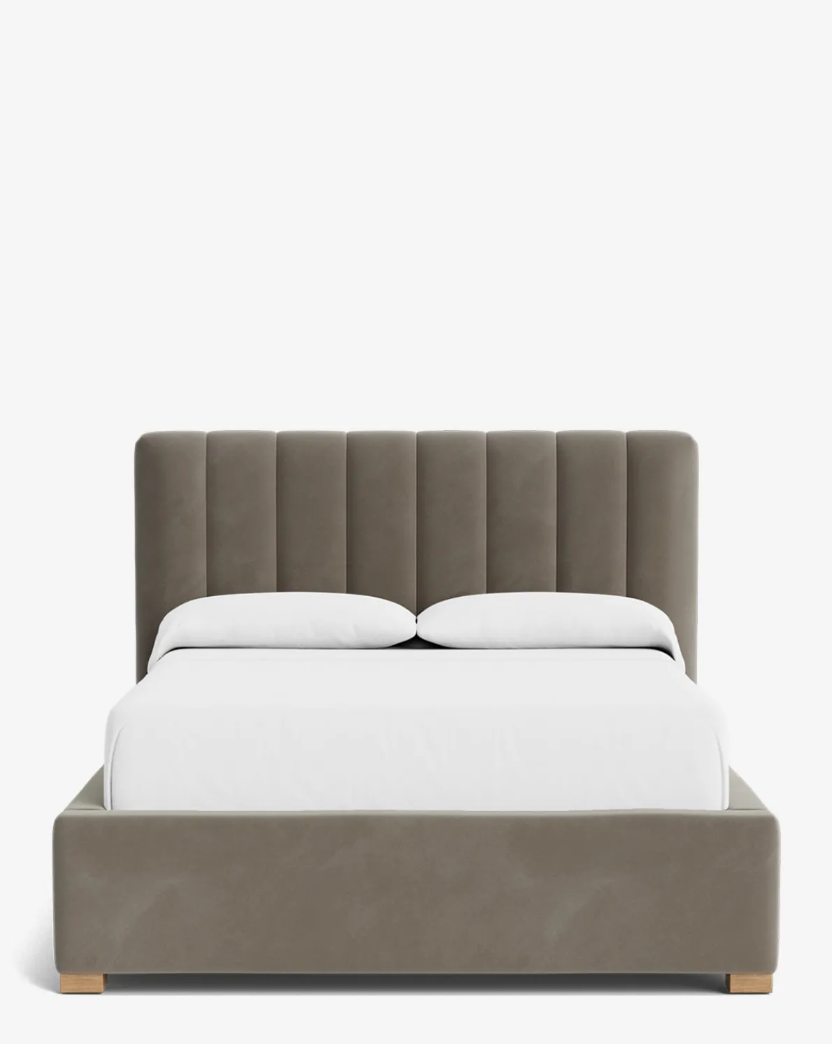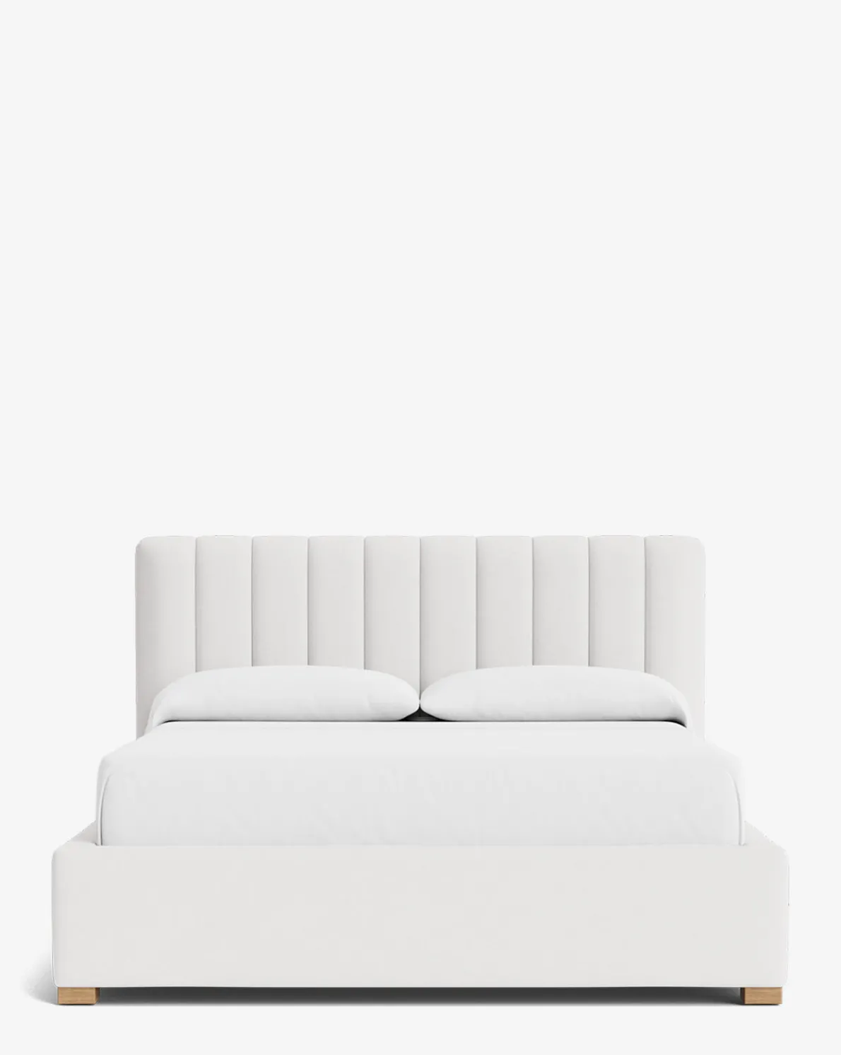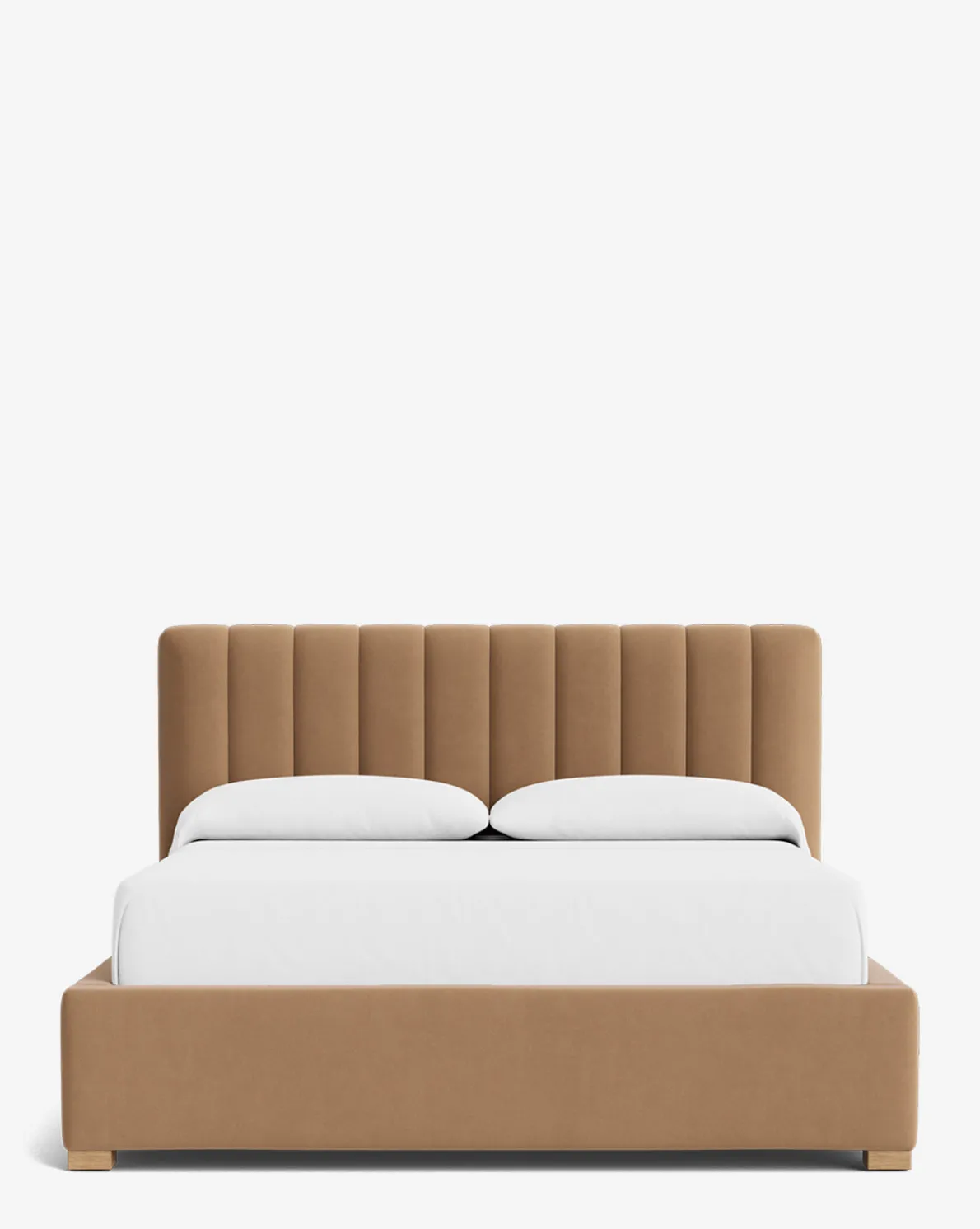 Fully upholstered on a bench-made alder wood frame, the Hoffman Bed with 52″ Headboard is customizable in a variety of high-quality fabrics, each hand-selected by our team for their beauty and durability. With distinct channels that flow through the headboard and subtle wood block feet, the bed brings a refined touch to classic bed designs.