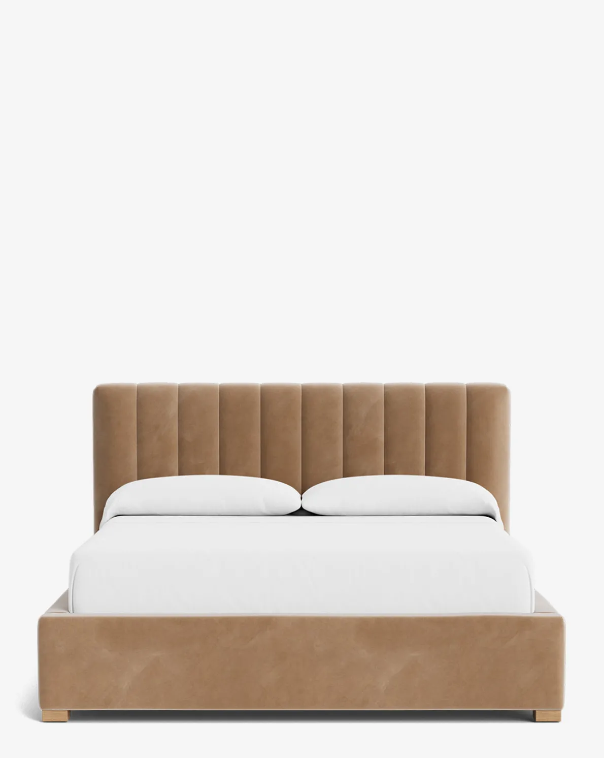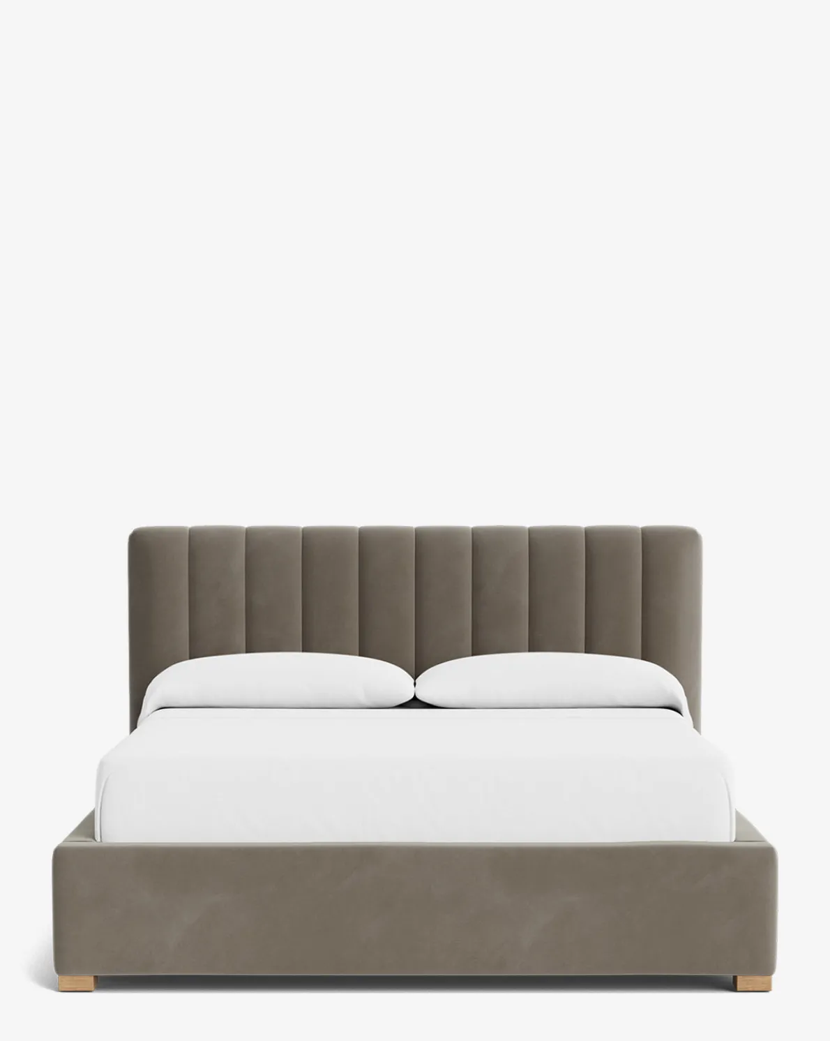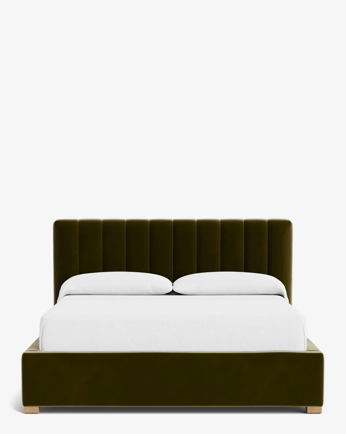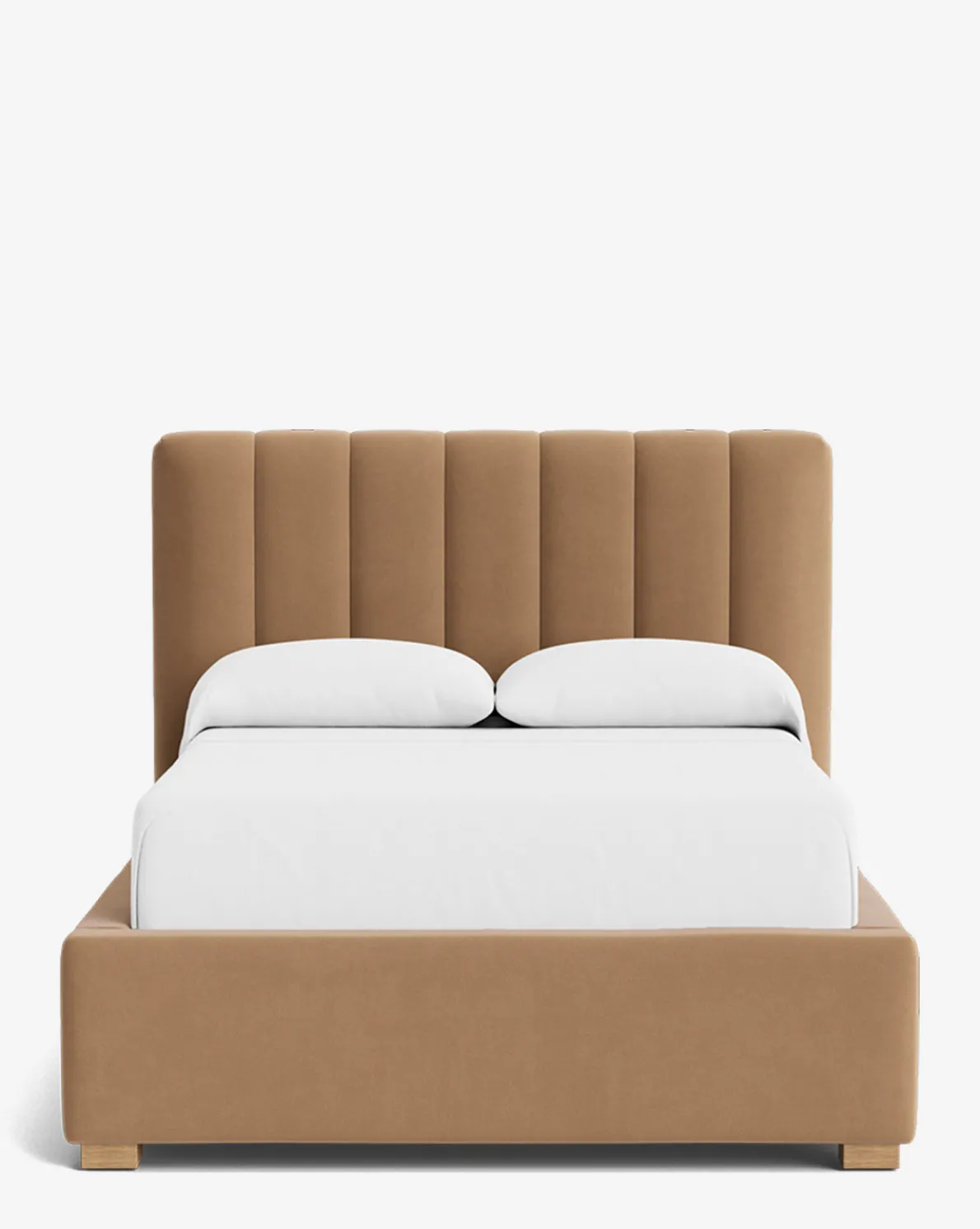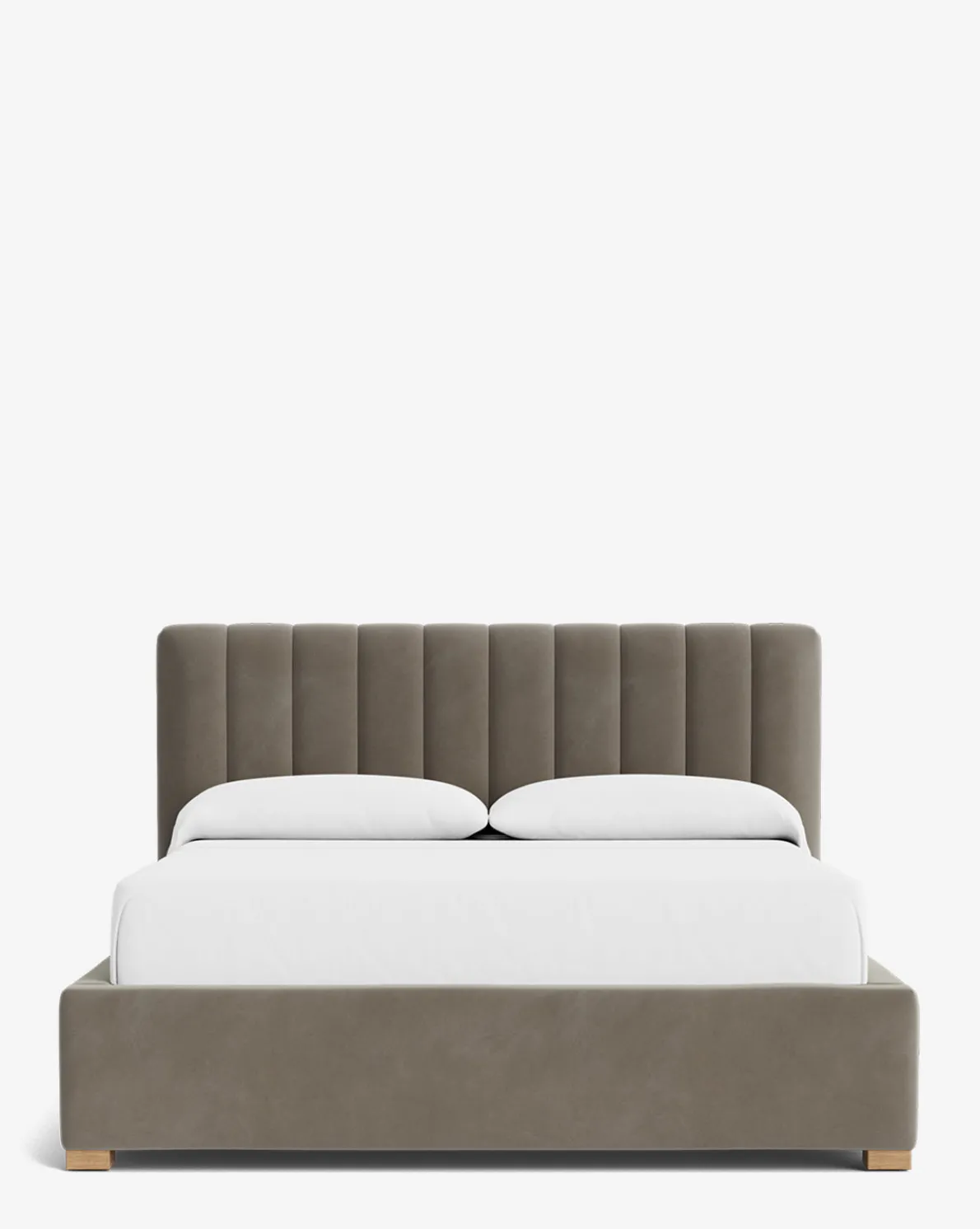 Fully upholstered on a bench-made alder wood frame, the Hoffman Bed with 52″ Headboard is customizable in a variety of high-quality fabrics, each hand-selected by our team for their beauty and durability. With distinct channels that flow through the headboard and subtle wood block feet, the bed brings a refined touch to classic bed designs.