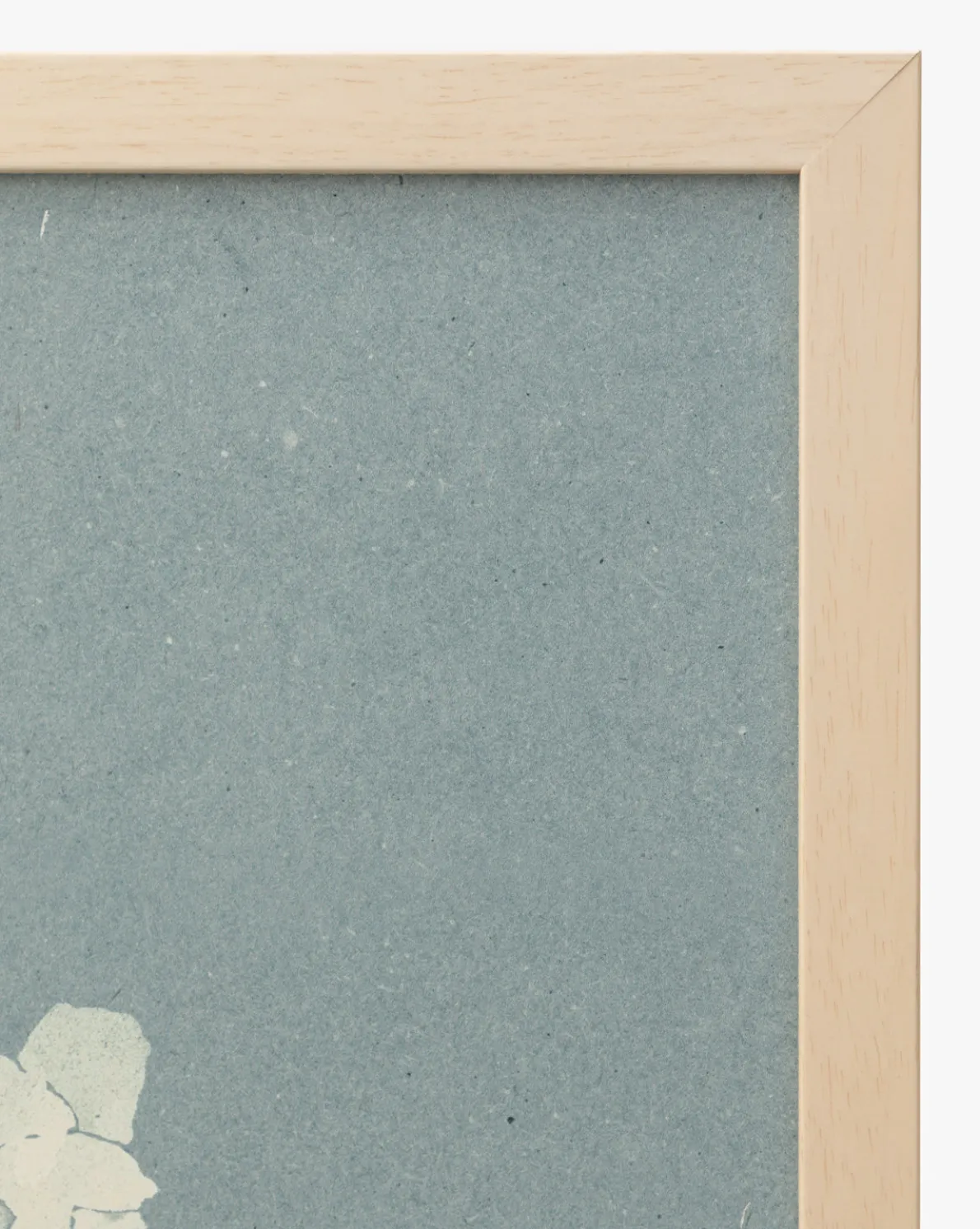 In a cool palette of blue and white, Iris Ink Block depicts a block print painting of iris flowers. The contrast and composition of the piece bring a playful simplicity to the walls of your children’s room.