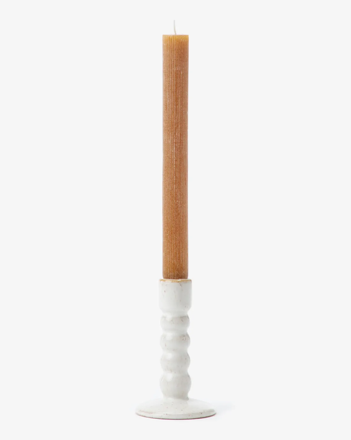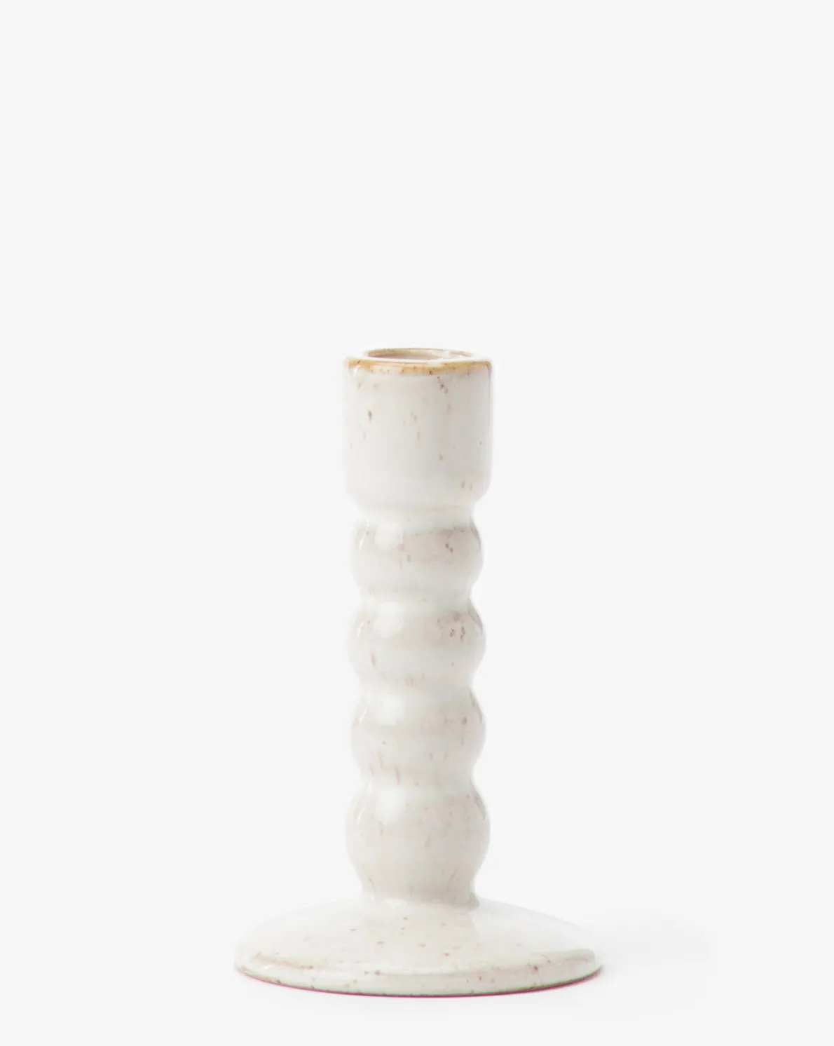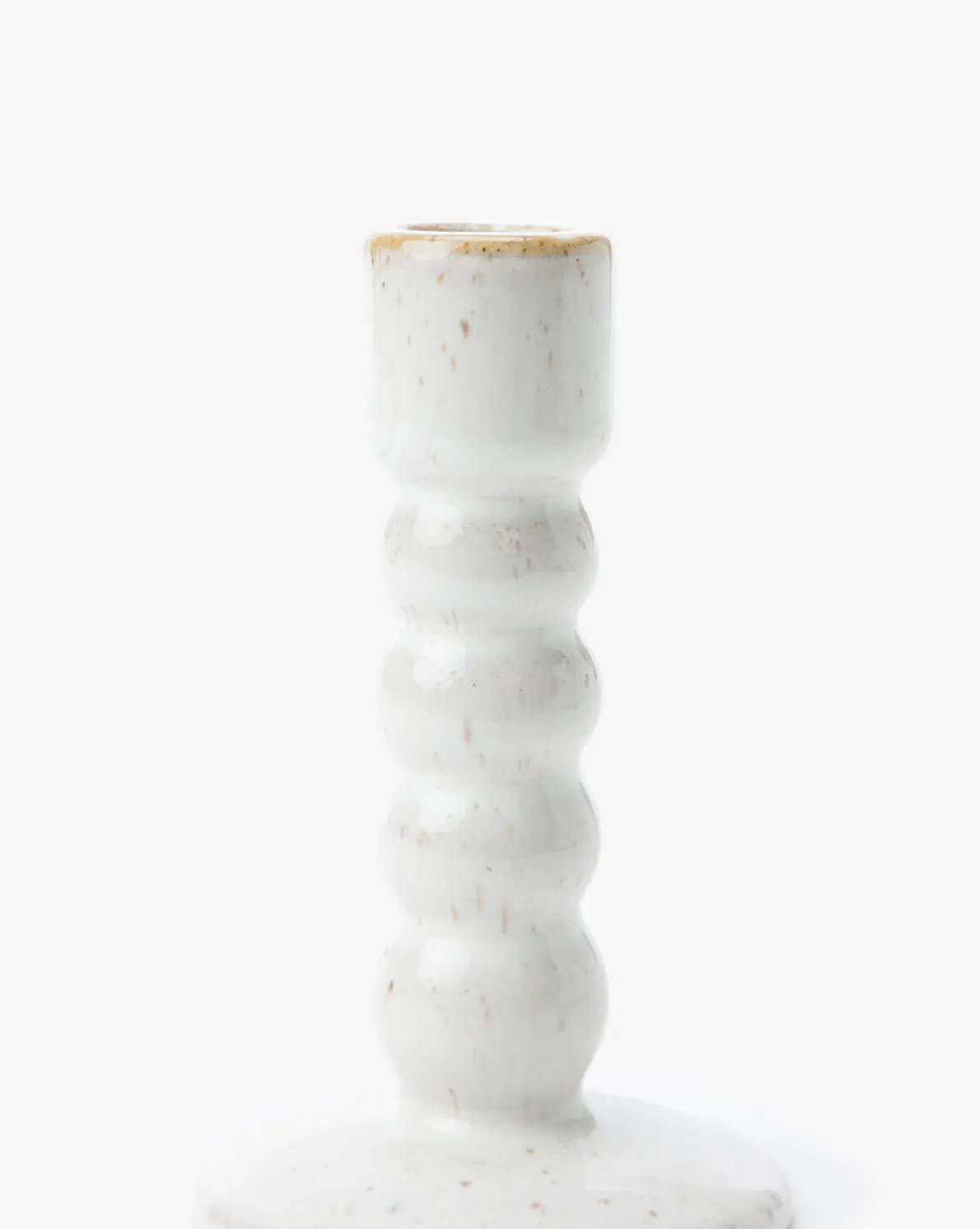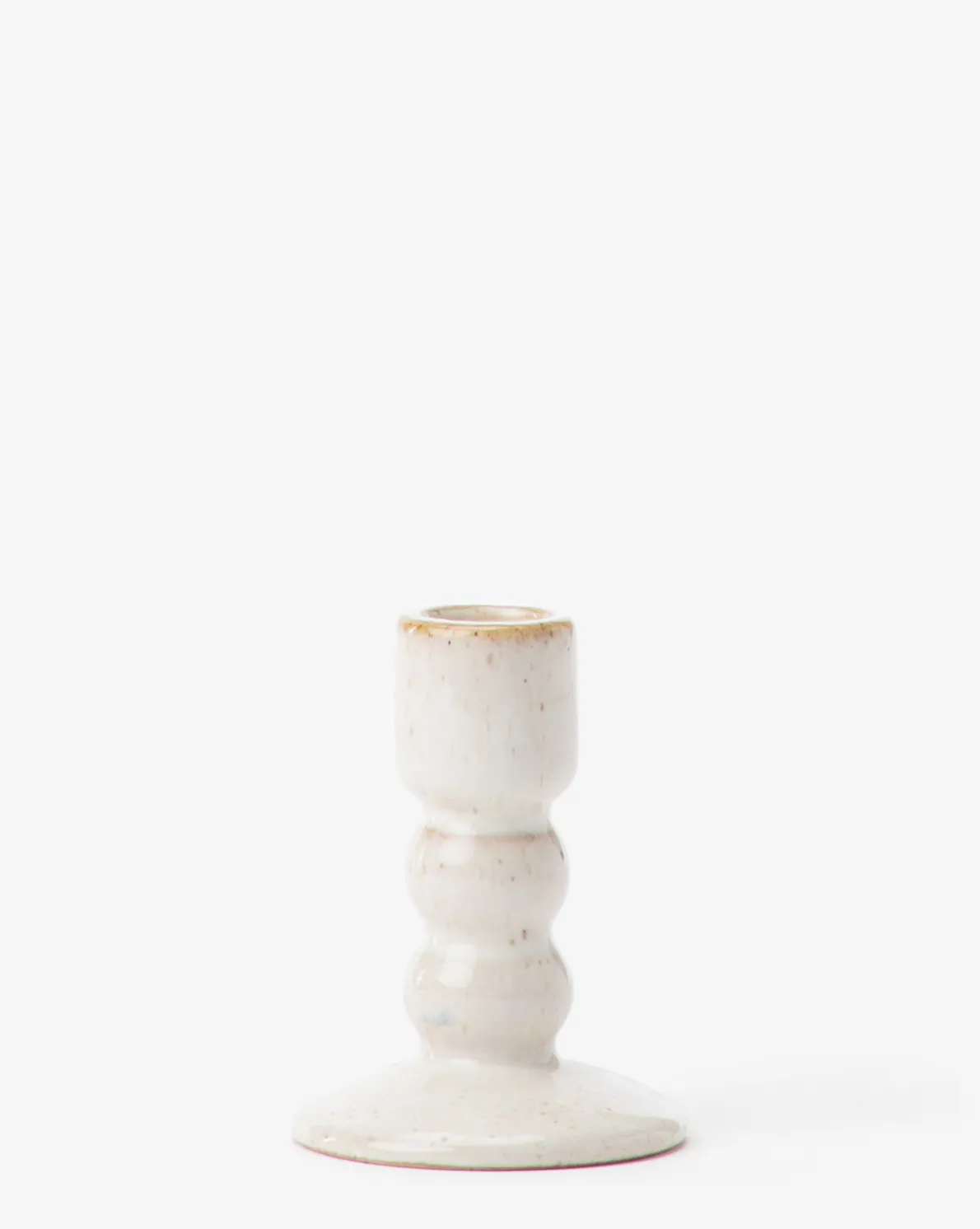 Crafted from stoneware with a hand-applied white glaze, the Mae Ceramic Taper Holder brings a classic feel and shapely personality to your mantel or console vignette. Its simple stacked shape brings subtle interest to your taper candles wherever they are styled.