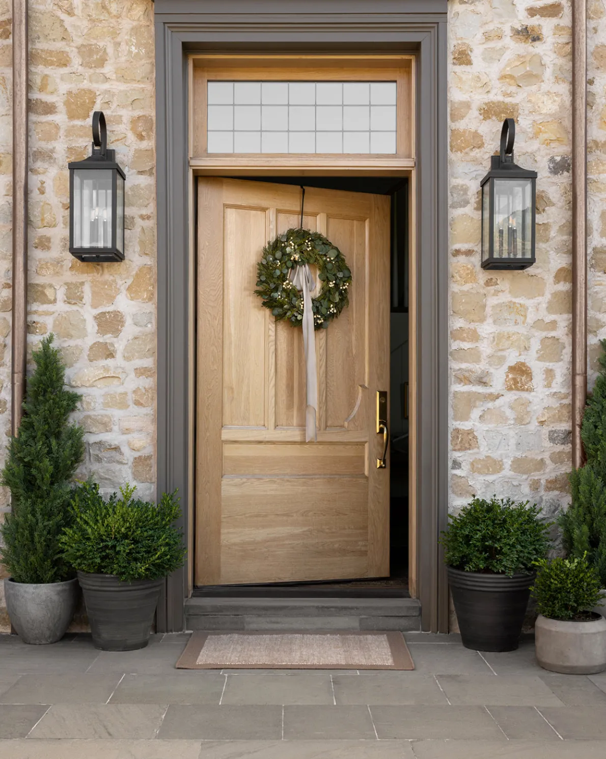 In a crisp black hue, this iron wreath hanger is simplistic and modern. Hanging any wreath, real or faux, for any season, this wreath hanger is a year-round staple.