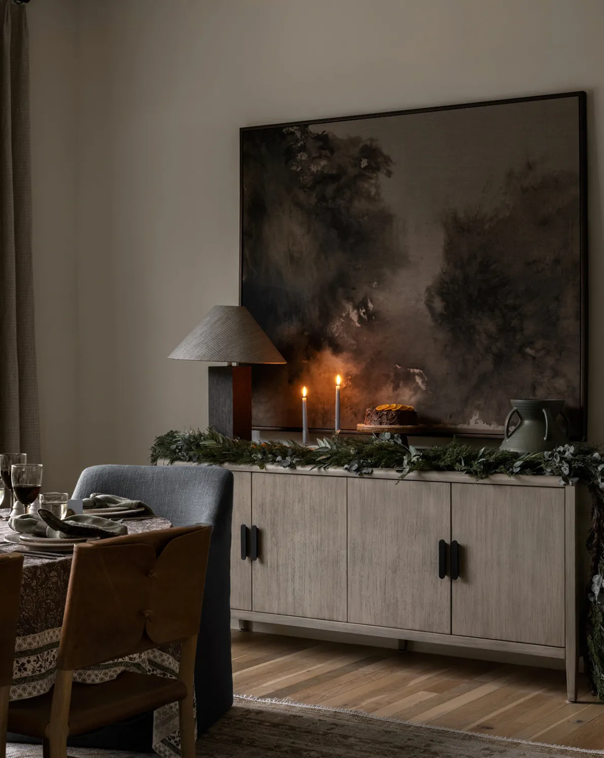 With smoky movement, Spilled Ink is a contemporary and unique abstract piece. Bronze wood frames the gallery wrapped giclee print on linen, allowing the quality materials to elevate your decor. Moody and textural, the artwork allows for a refined yet eye-catching moment wherever it is placed.