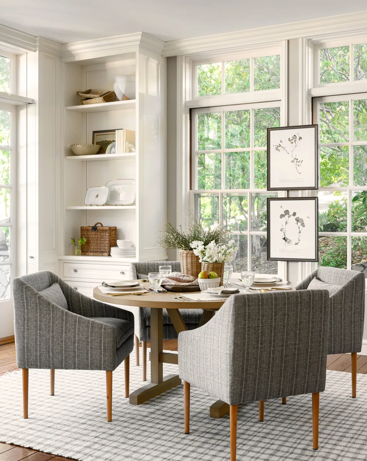 Mimicking pressed botanicals in a refined composition, Subdued Botanicals III has a monochromatic palette that puts emphasis on the shape and delicacy of each floral. A giclee print on paper, Subdued Botanicals III is mounted in a light walnut frame.