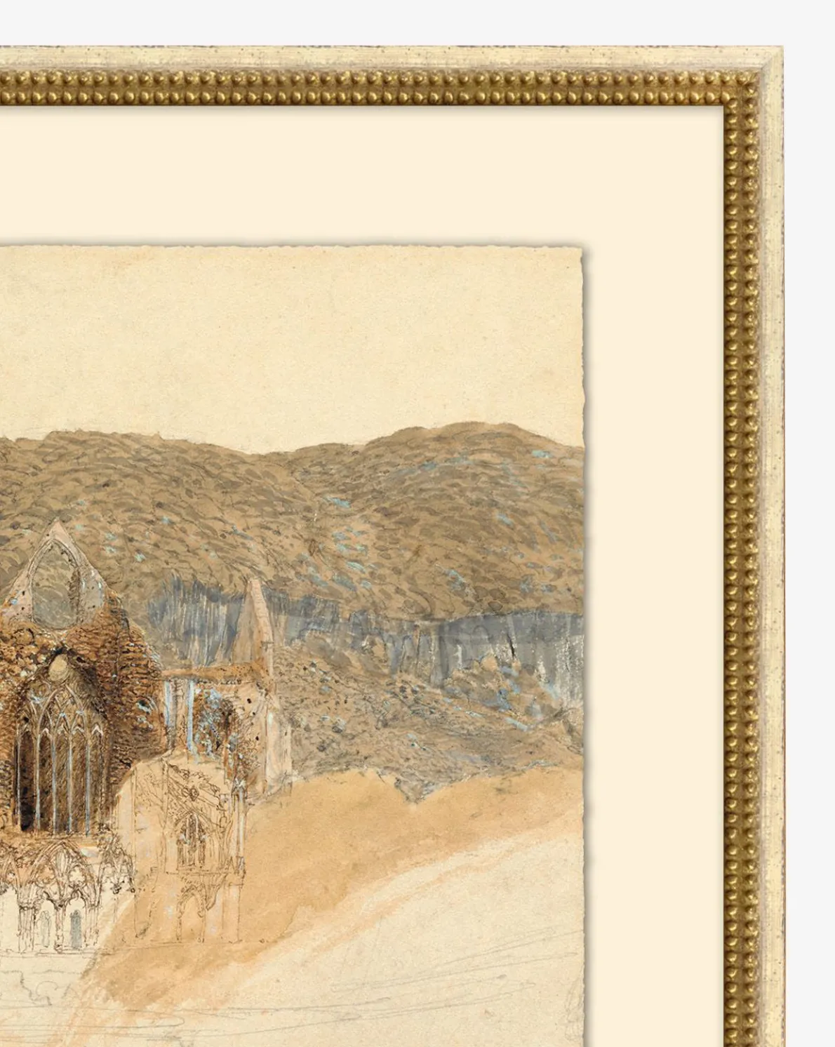 An inviting scene comes to life with expressive detail and a unique composition in Unveiling Foundations. A giclee print on watercolor paper presented within a gold-finished wood frame, this piece brings beauty to your wall treatments.