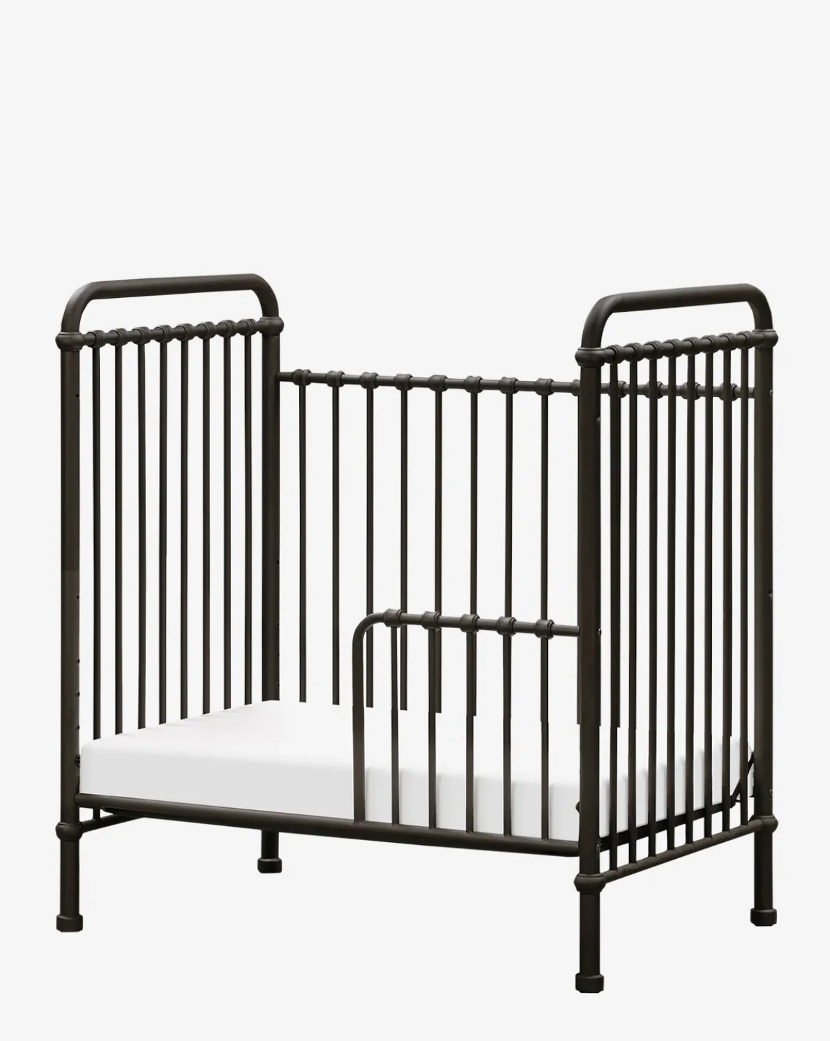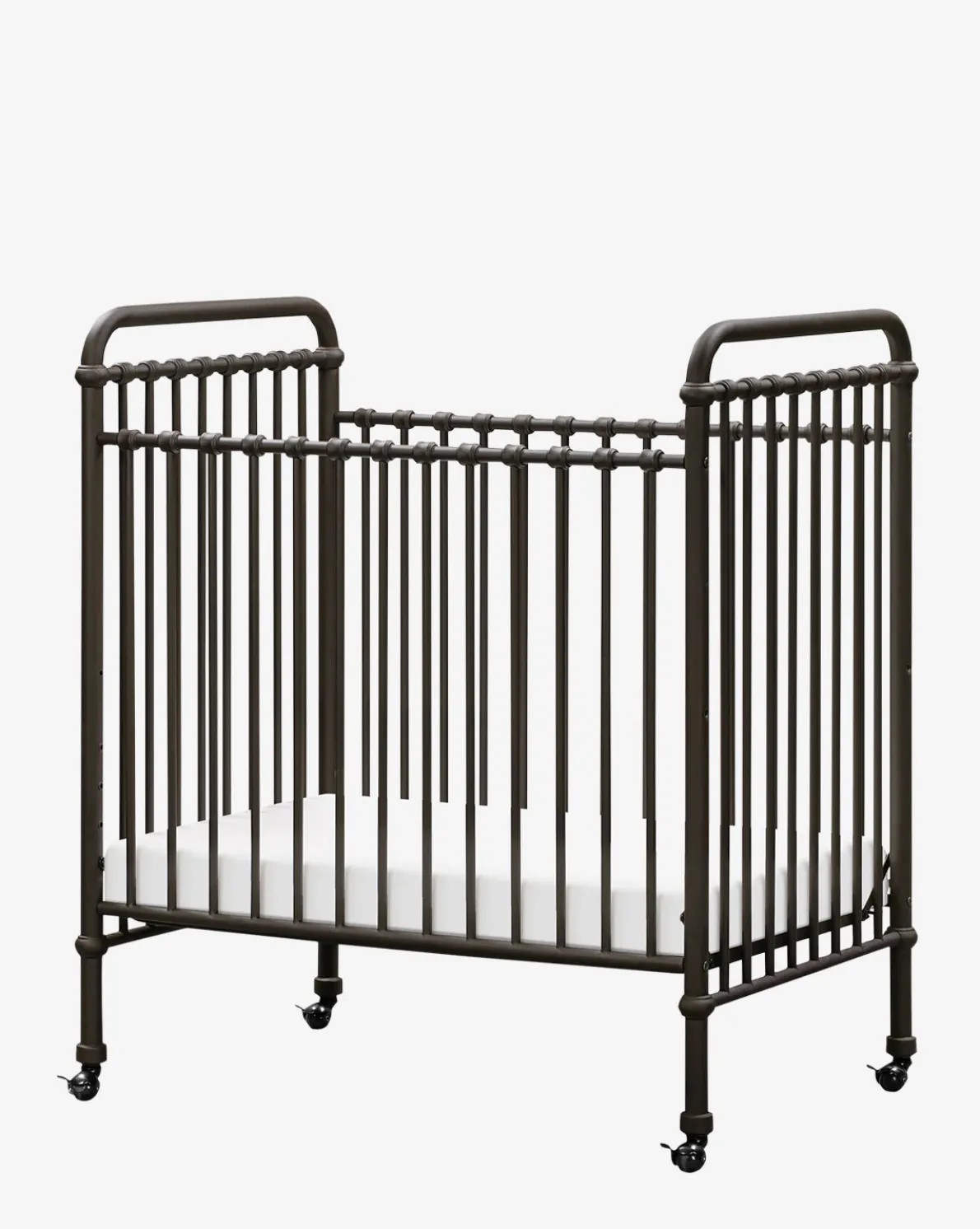 In a vintage inspired design, the Abigail Mini Crib by Namesake uses intentionally straightforward design to create a timeless style for nurseries. Crafted from iron in either a vintage gold or vintage iron finish, the crib is made to convert to toddler and daybeds as your little one grows.