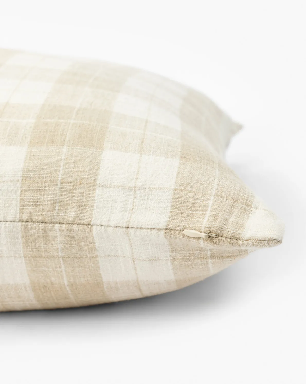 With a plaid motif in tan and white, the Aimee Pillow Cover brings both intricacy and subtle elegance to your pillow vignettes. Made from linen, the luxurious feel of the pillow cover is inviting in any setting.
