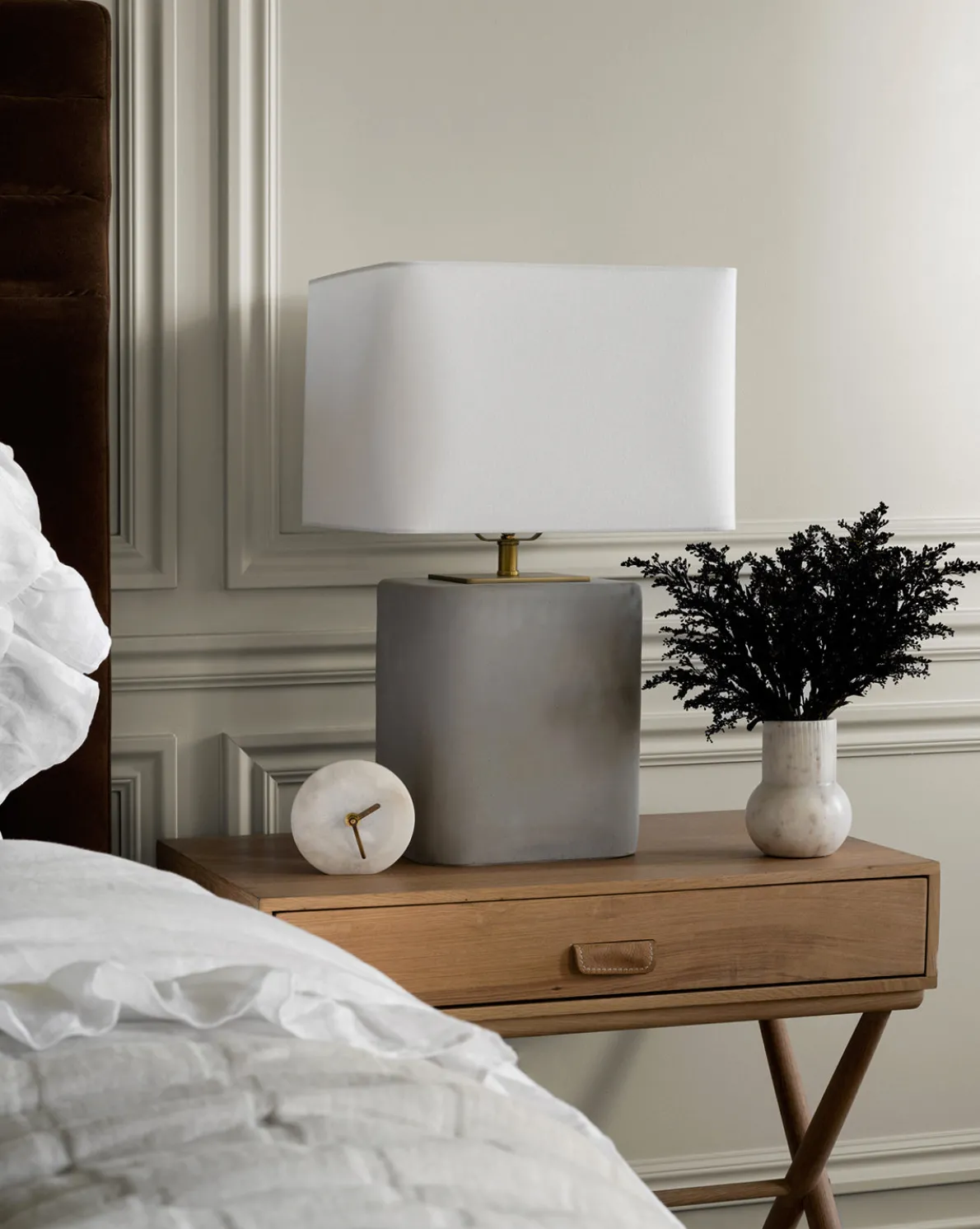 The Alabaster Table Clock generates intrigue with its round stone shape and natural coloring. The solid alabaster form creates a compelling balance between natural materials and sophisticated design. With clock hands made of stainless steel with a brass finish, the table clock is both subtle and refined.