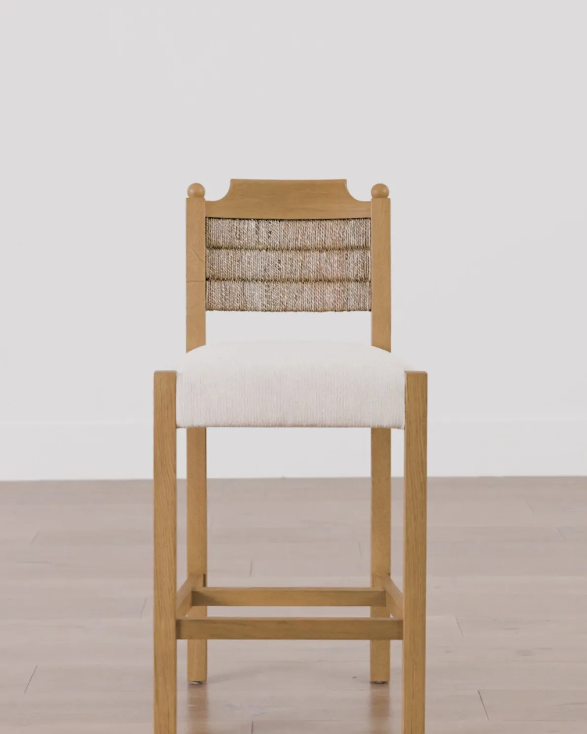 Vintage-inspired and crafted with a blend of mixed materials, our Alberta Counter Stool balances both traditional and modern aesthetics. The honey oak finished frame and textured back woven with seagrass bring a natural feel to the chair’s classic structure. Upholstered in soft and resilient cotton-linen performance blend, the seat offers depth for a generous sit that invites you settle in. Durable and detailed, it brings a sophisticated yet approachable element to your kitchen counter.