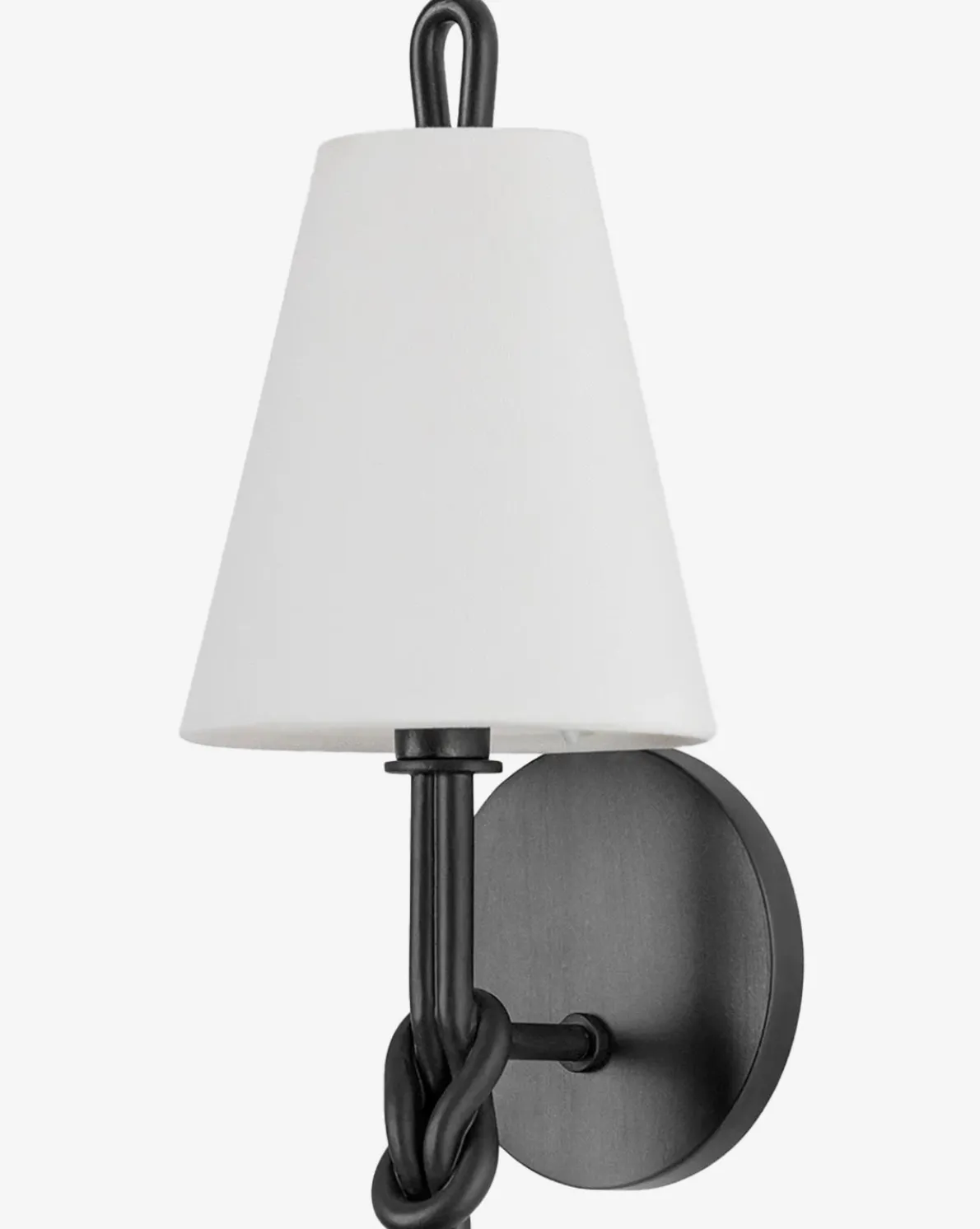 With a contemporary yet approachable feel, the thoughtful design of the Alburgh Sconce gives it a unique beauty. The white linen shade is held by an intricate iron structure in a vintage gold leaf or aged iron finish.