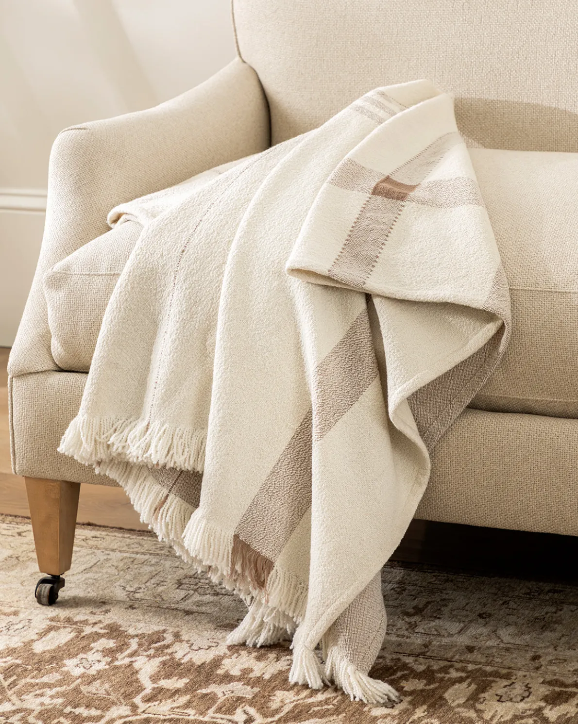 Crafted with a luxurious look and feel, the Alex Plaid Throw is both beautiful and functional. Draped over a sofa for an added layer of texture, its neutral color palette complements your styling effortlessly.