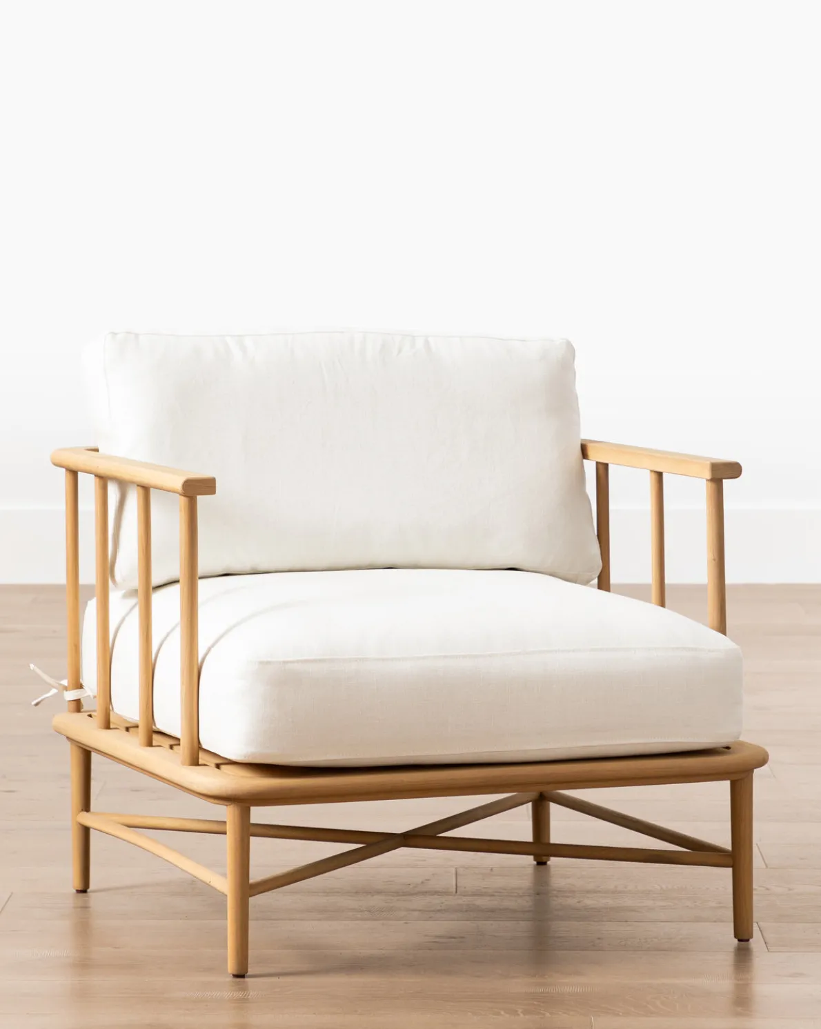 Inspired by contemporary design, but with a more relaxed look and feel, the sophisticated form of our Alma Chair draws inspiration from influences around the world. Crafted entirely from kiln-dried, high-quality, solid oak for durability, the contrast of luxuriously comfortable cushions is easy to see. Without forgetting function, solid oak dowels finish off the silhouette with a rail-like detail, lending even more dimension to this stunning design.