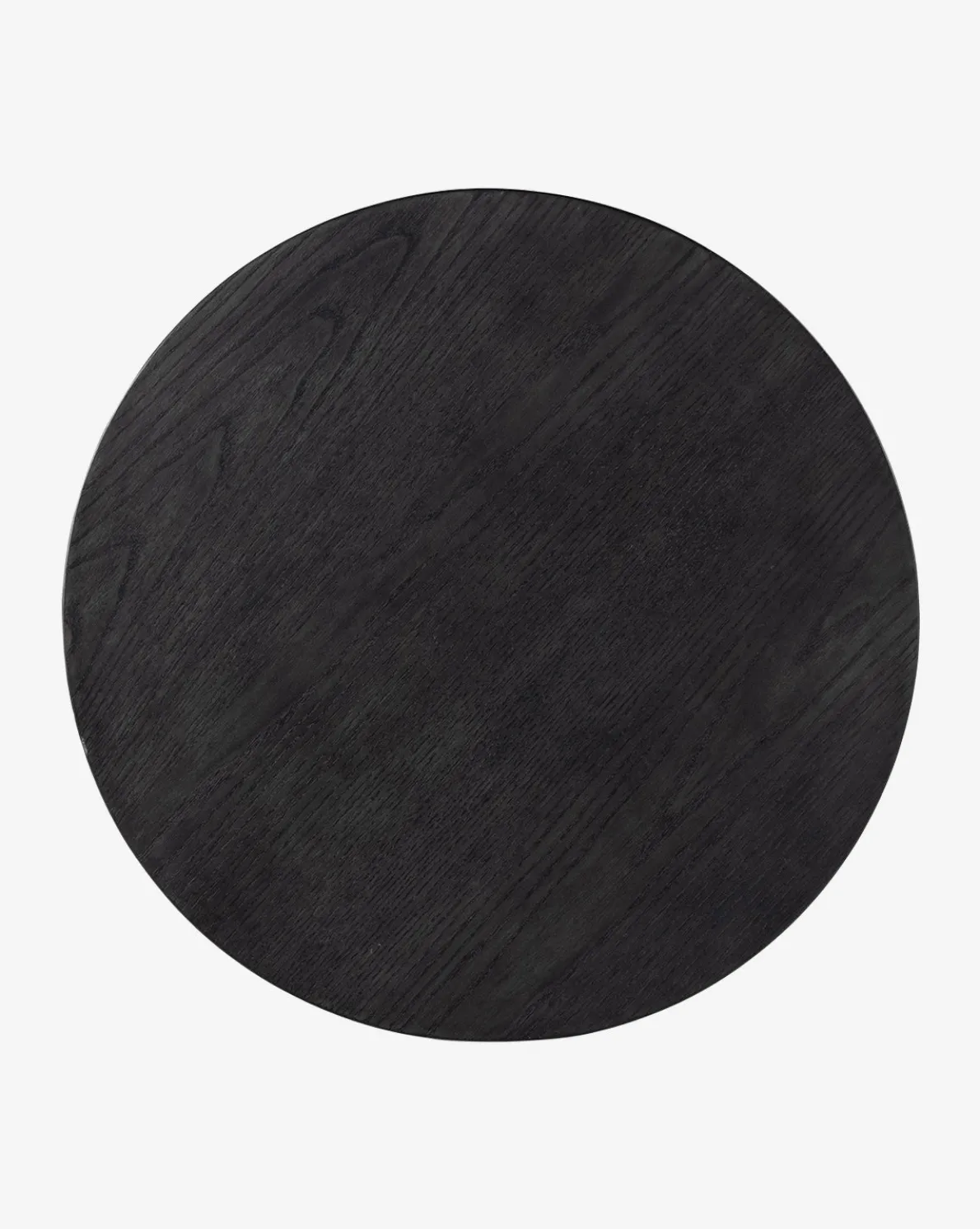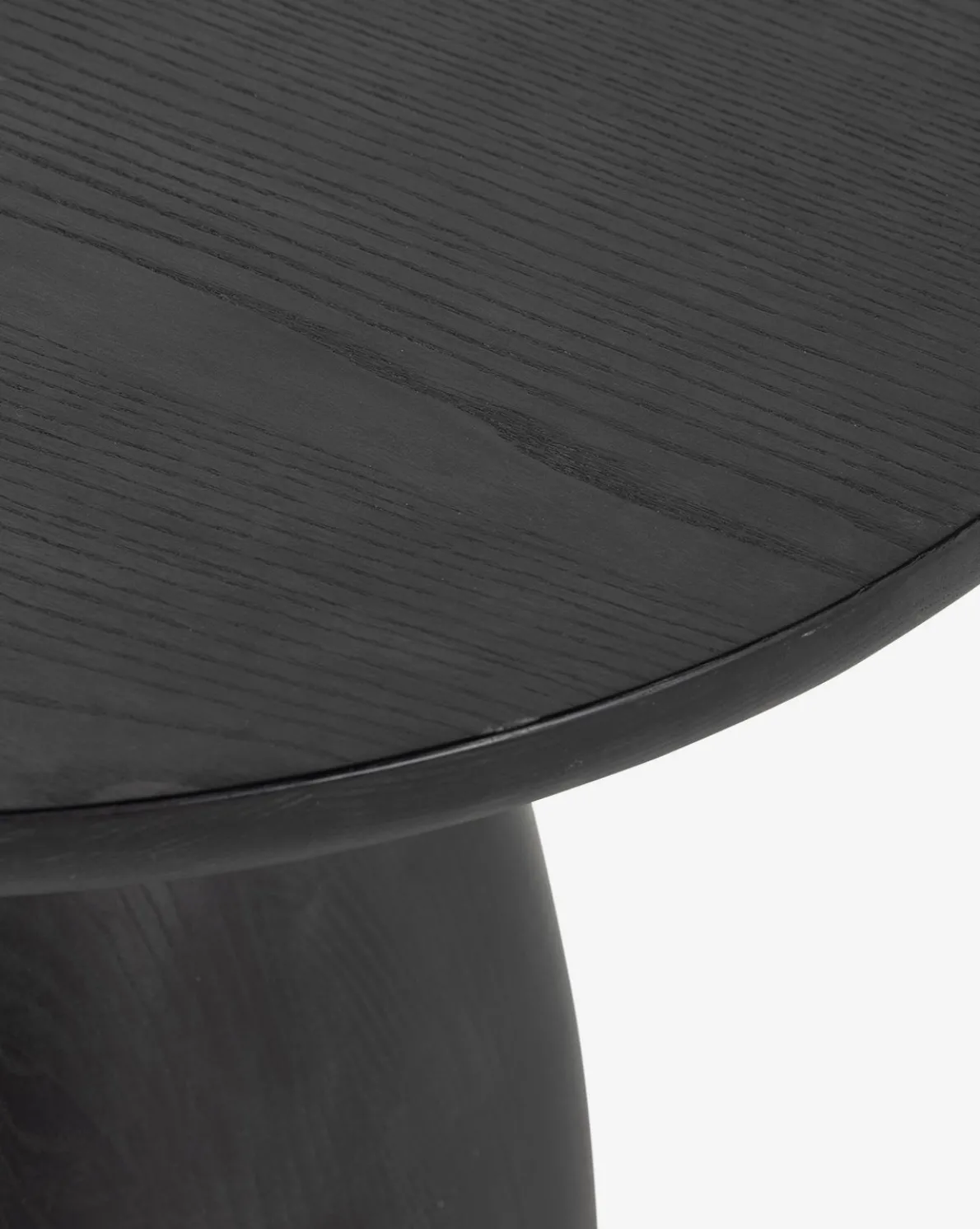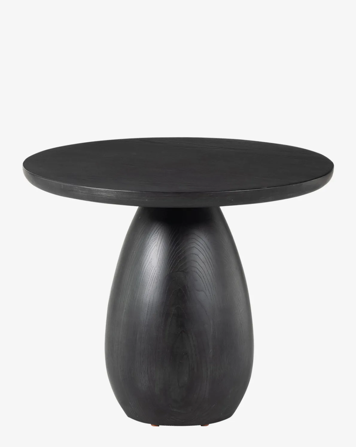 Shapely and endearing, the Argus End Table is crafted from a solid, black-washed ash base that is tapered in a voluminous design. Its rounded tabletop balances the piece, creating a rich, dimensional design.