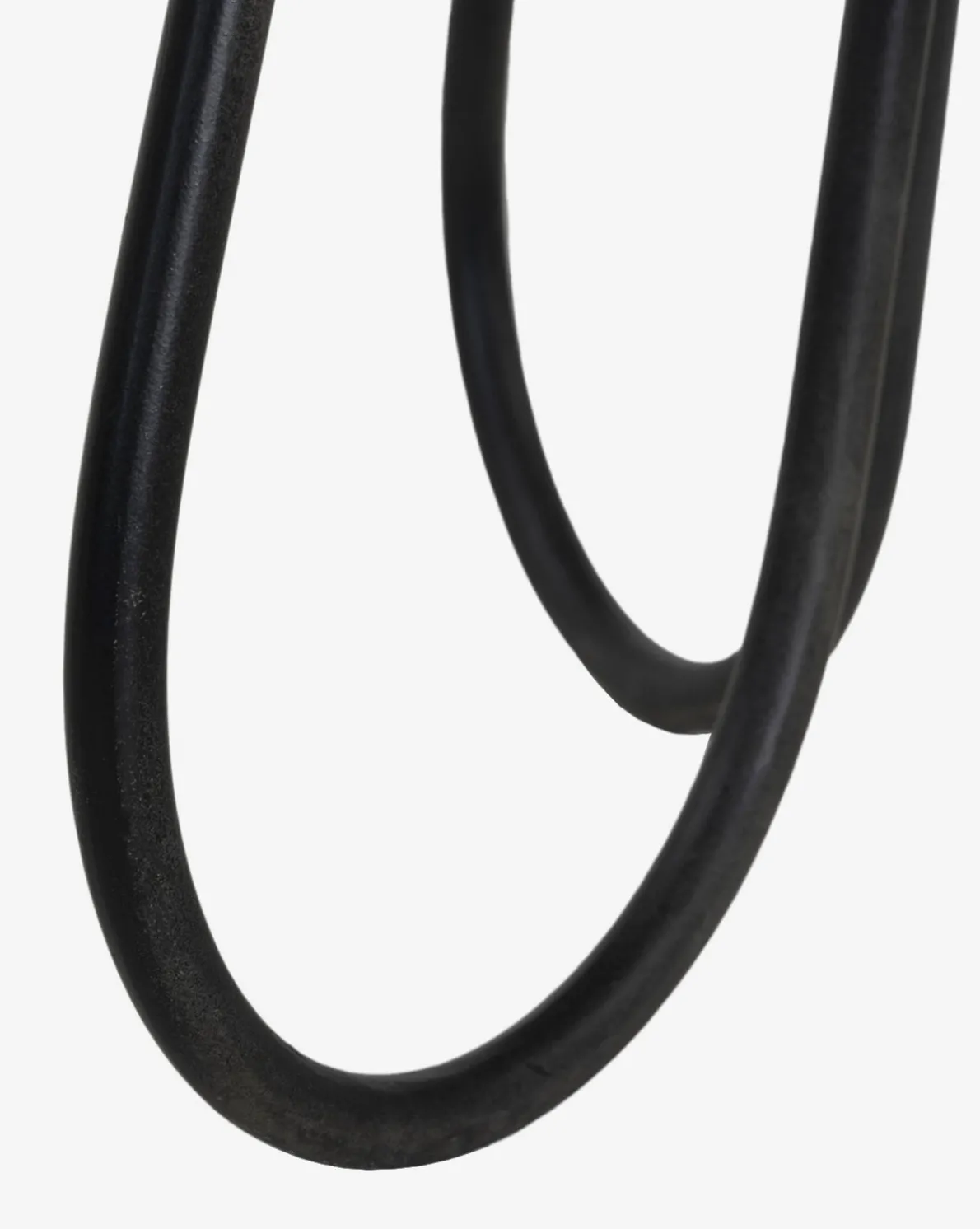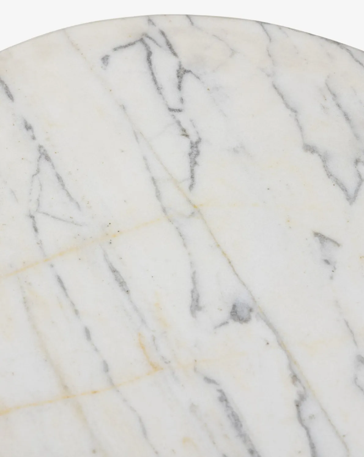 Artful form meets striking contrast in the Ashburn Marble End Table. A sculptural base of hammered gunmetal cast aluminum, shaped from three looped legs with a center ball detail, supports a rounded top of beautifully veined white marble. A refined statement piece that feels both bold and timeless.