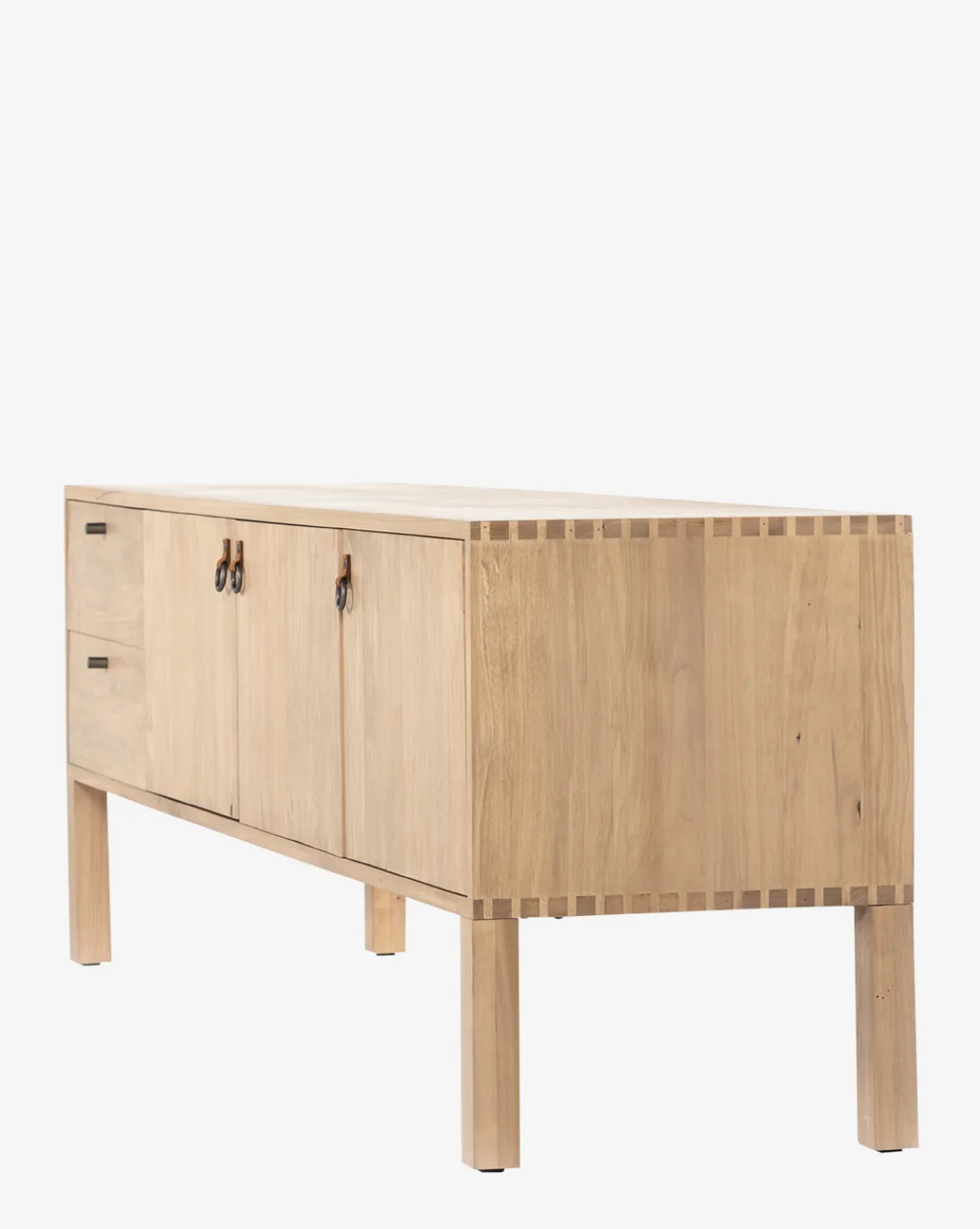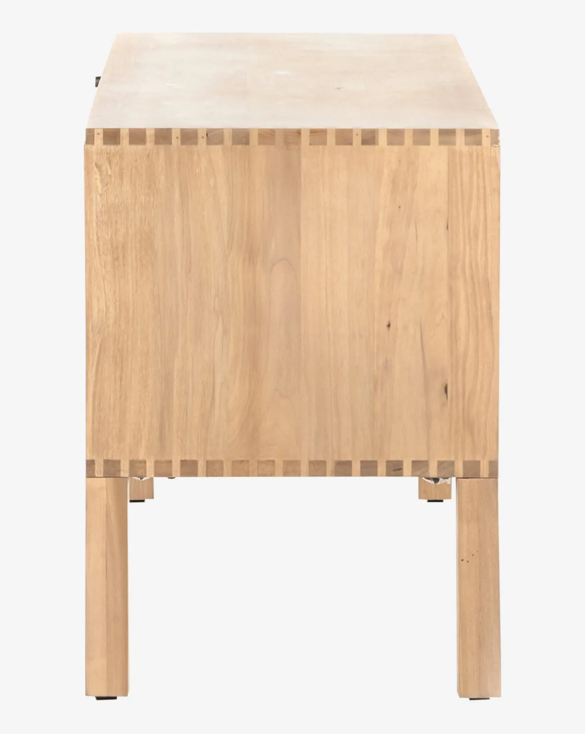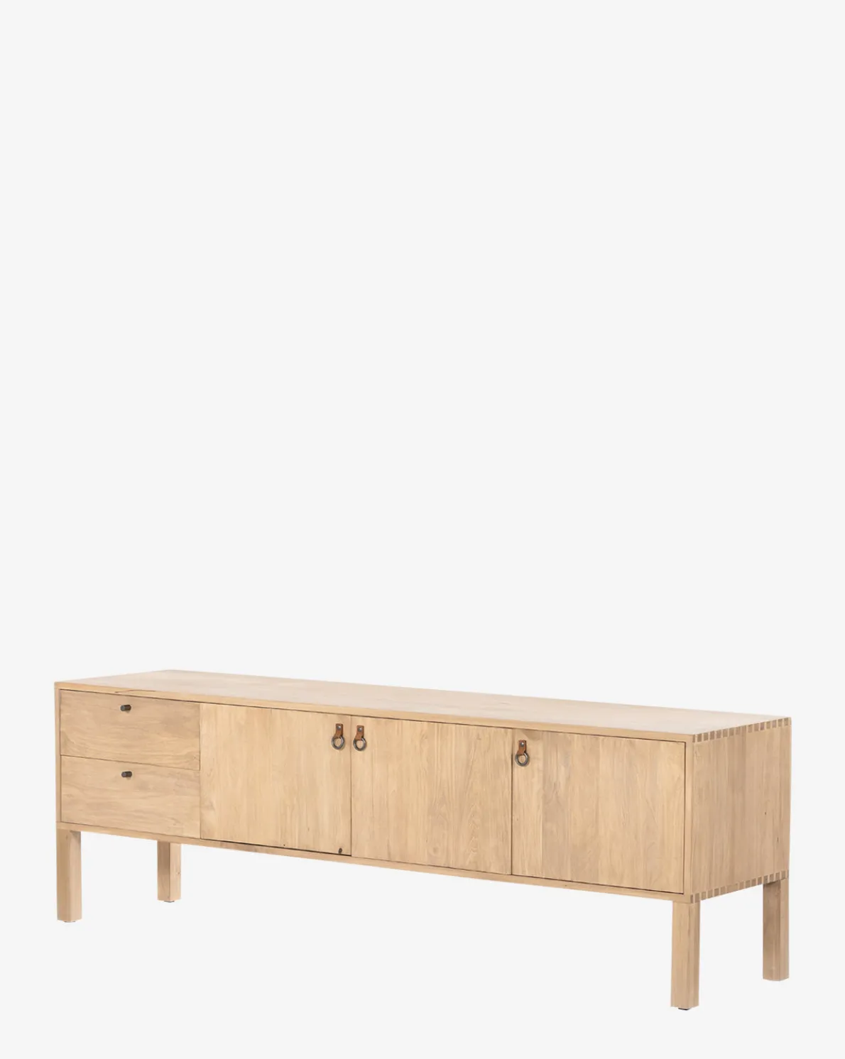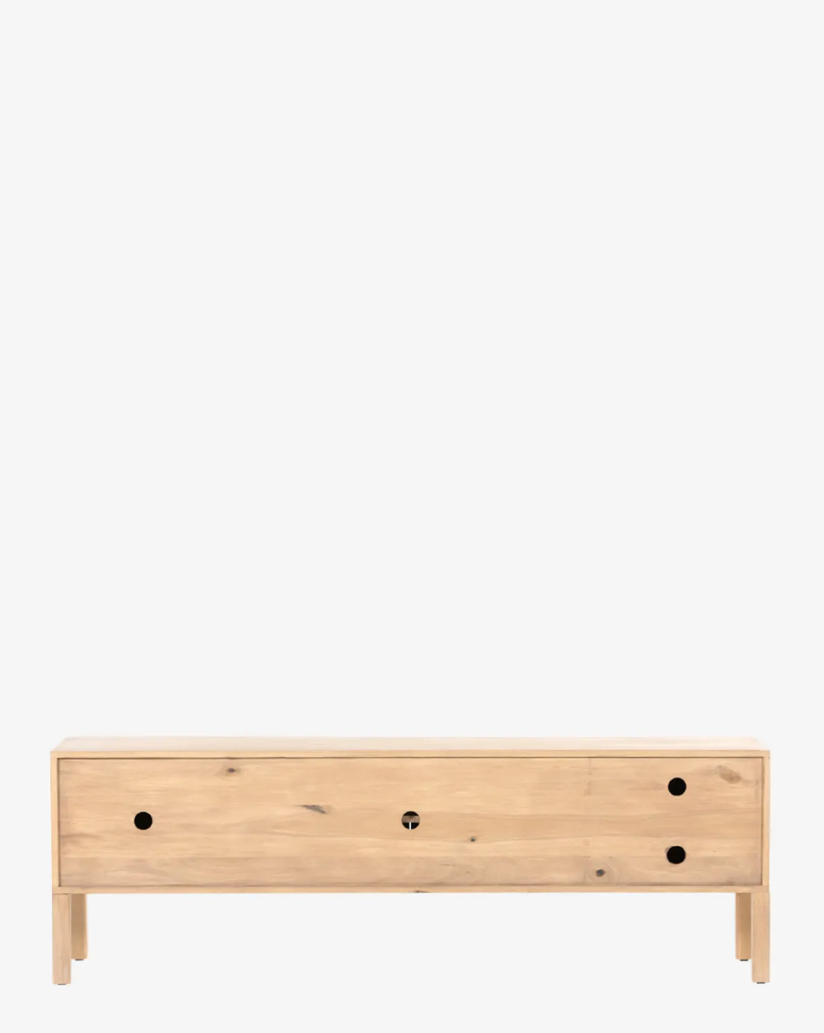 Consistently beautiful, Shaker-inspired style and clean lines accentuate the mixed hardware that inspire the Ashlen Console. Crafted from solid, dry-washed poplar and constructed with dovetail joinery, the natural feel of this streamlined piece is complemented by its blend of simple iron knobs and leather loops. With practical rear cutouts for cord management, the Ashlen Console is practically simple and stylistically sophisticated.