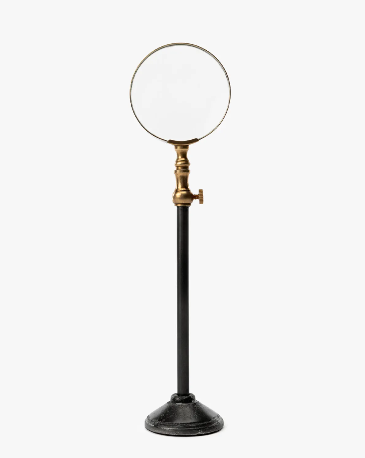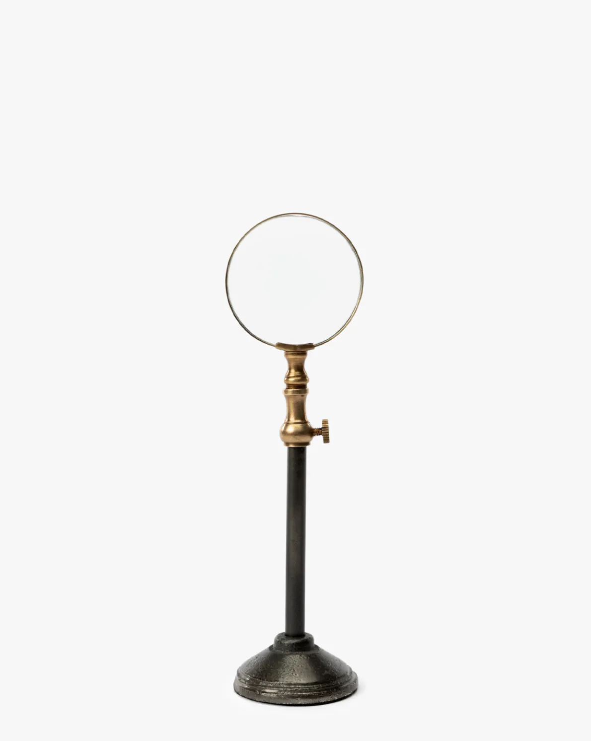 Whether you’re curating an elegant vignette or styling your home with a curiously eclectic aesthetic, our Barnabas Standing Object adds the perfect touch of old-world charm. The standing magnifying glass features a classic silhouette thoughtfully crafted with warm burnished brass and anchored with an iron base and stem.