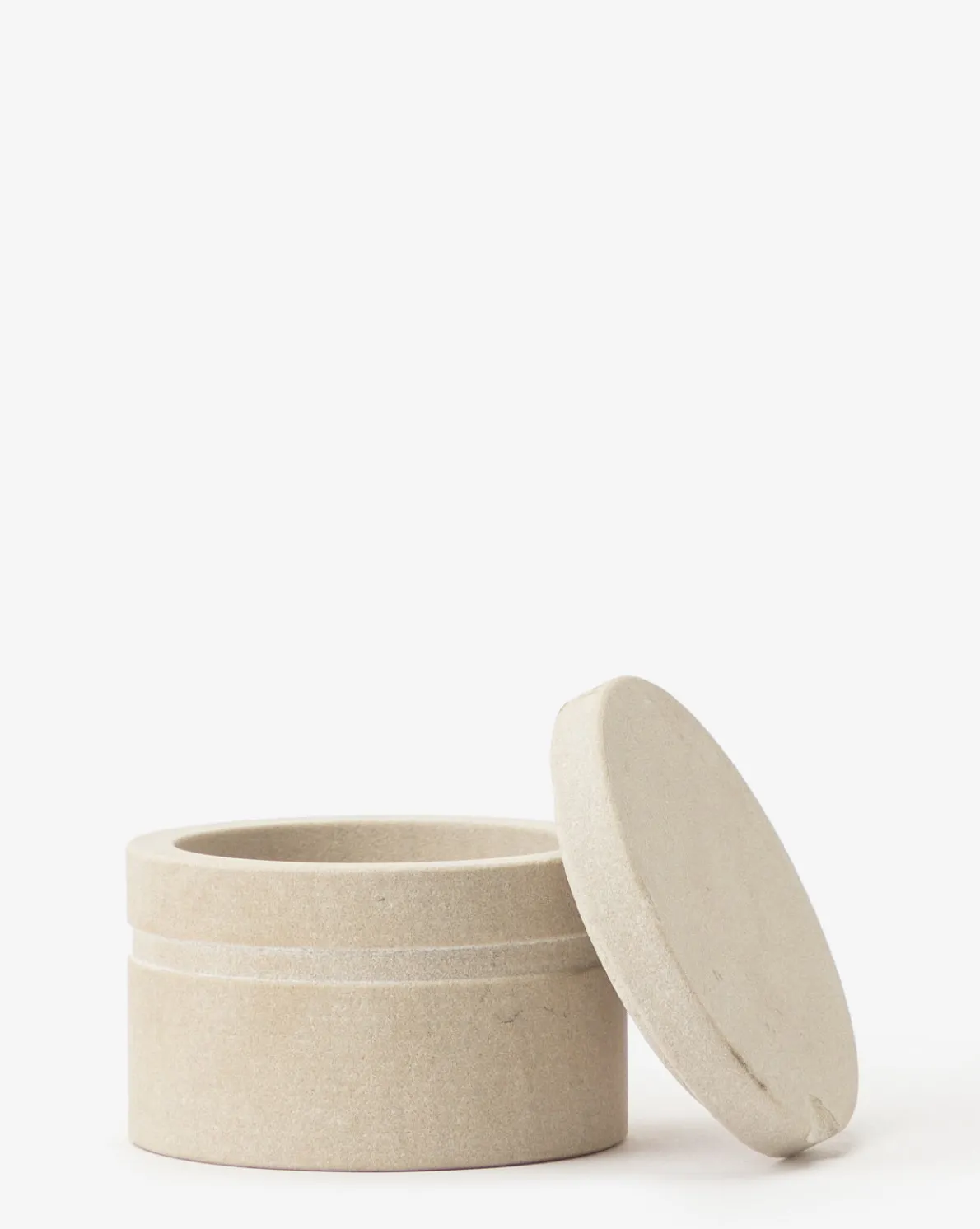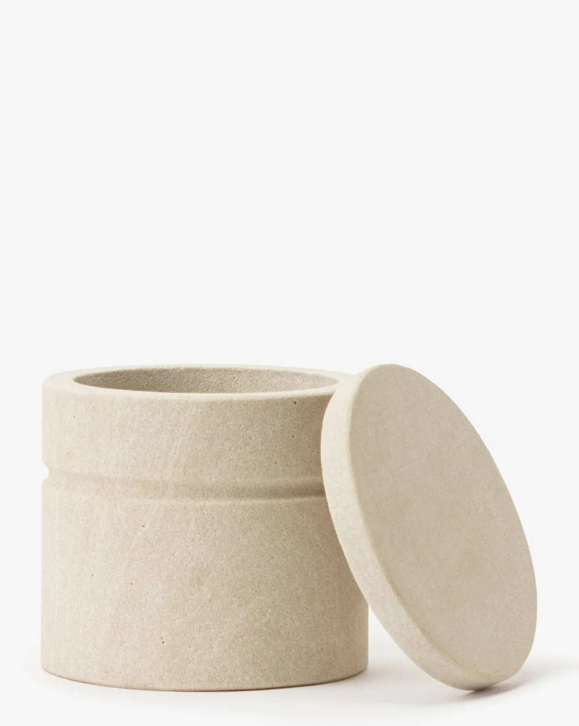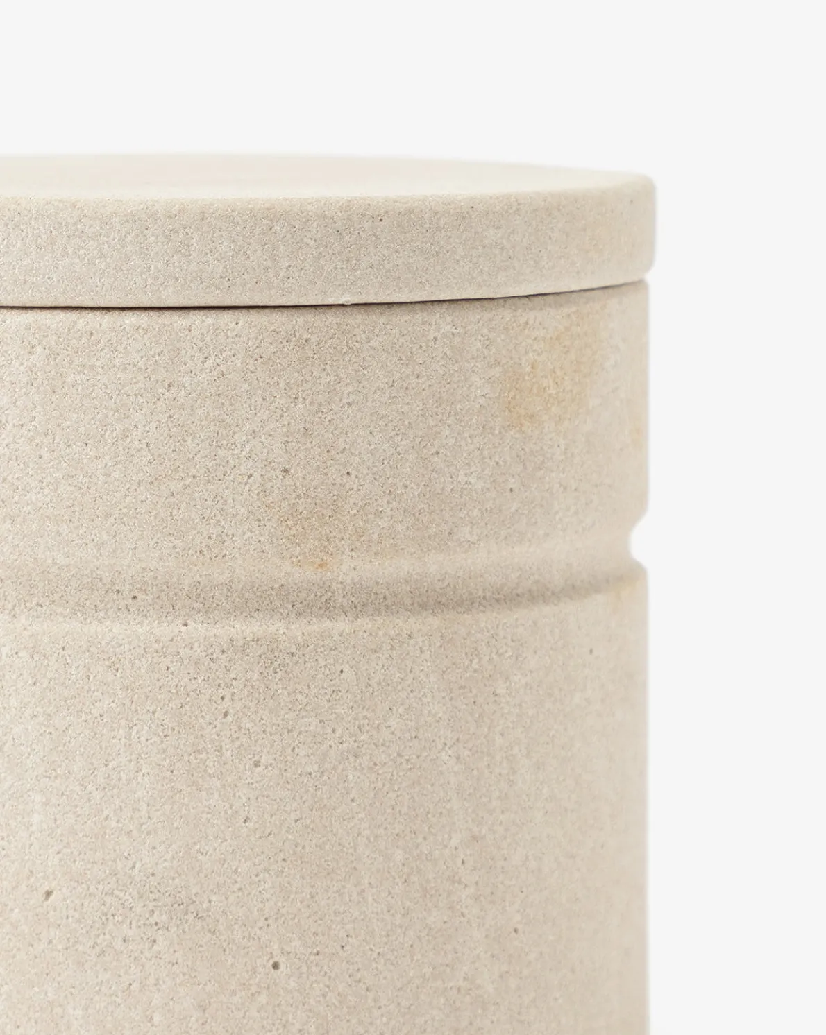 Simple linework and soft, sandstone texture give the Barton Sandstone Canister a captivating form. With its neutral finish and strong cylindrical shape, this decorative piece gives a light, airy addition to entryways or bathroom countertops.