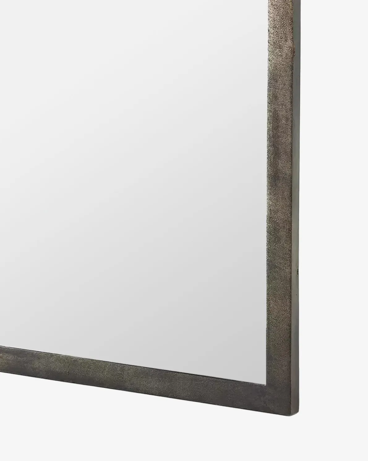 The Beckington Floor Mirror has a bold frame and intriguing finish to create its antiqued feel. With an iron frame and burnished charcoal finish, the floor mirror elevates your spaces, from bedrooms to entryways.