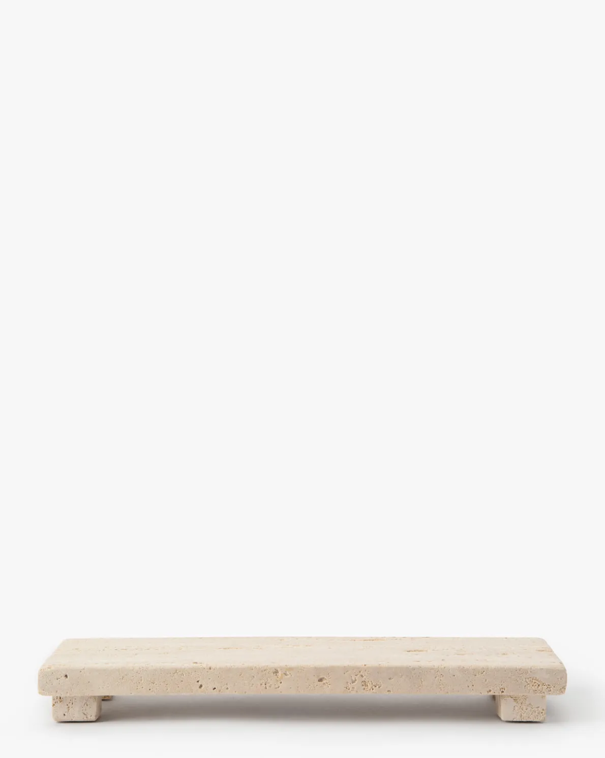 As versatile as it is beautiful, the Beige Travertine Footed Serving Board is made of 100% travertine stone. Its elongated, geometric form brings a modern element to your hosting tools or kitchen counter, while its natural details lend subtle elegance to any setting.