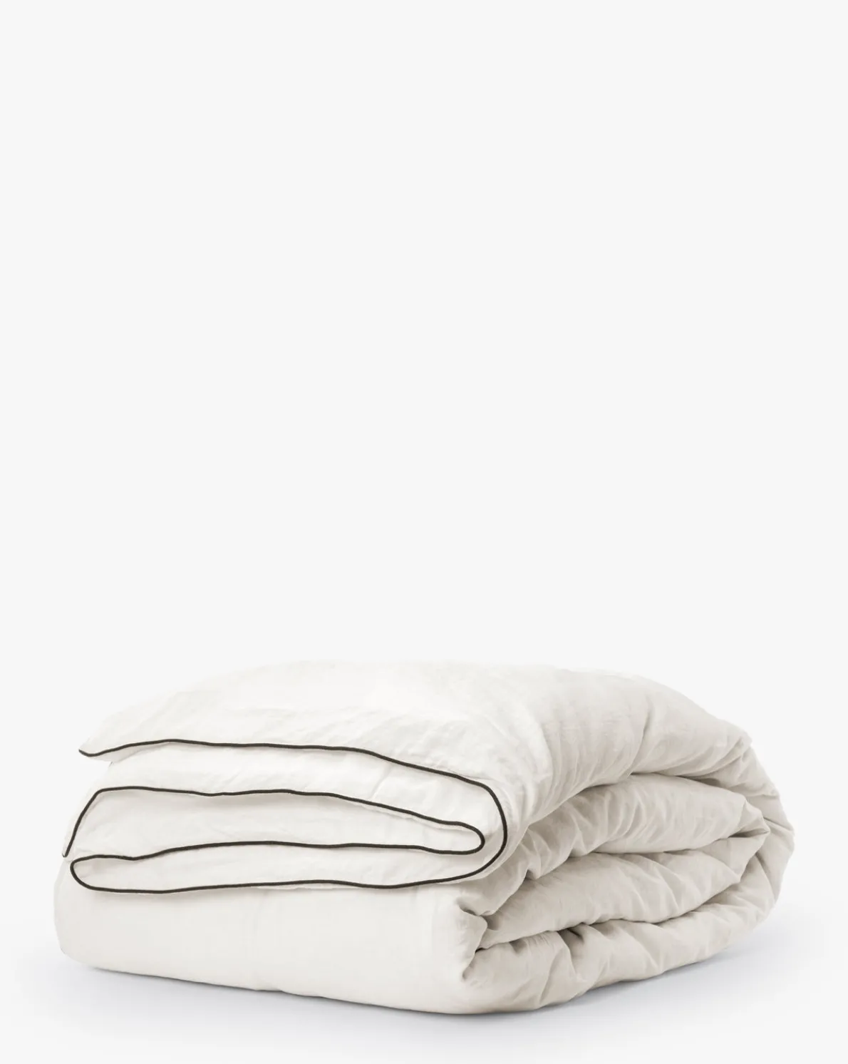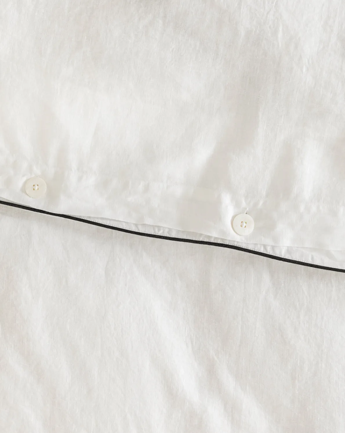 With a simple design featuring a navy piped border, the Bembury Linen Duvet Cover brings a cohesive and elevated look to your bedding. Made from 100% linen woven from European flax, the duvet cover is pre-washed for a soft feel.