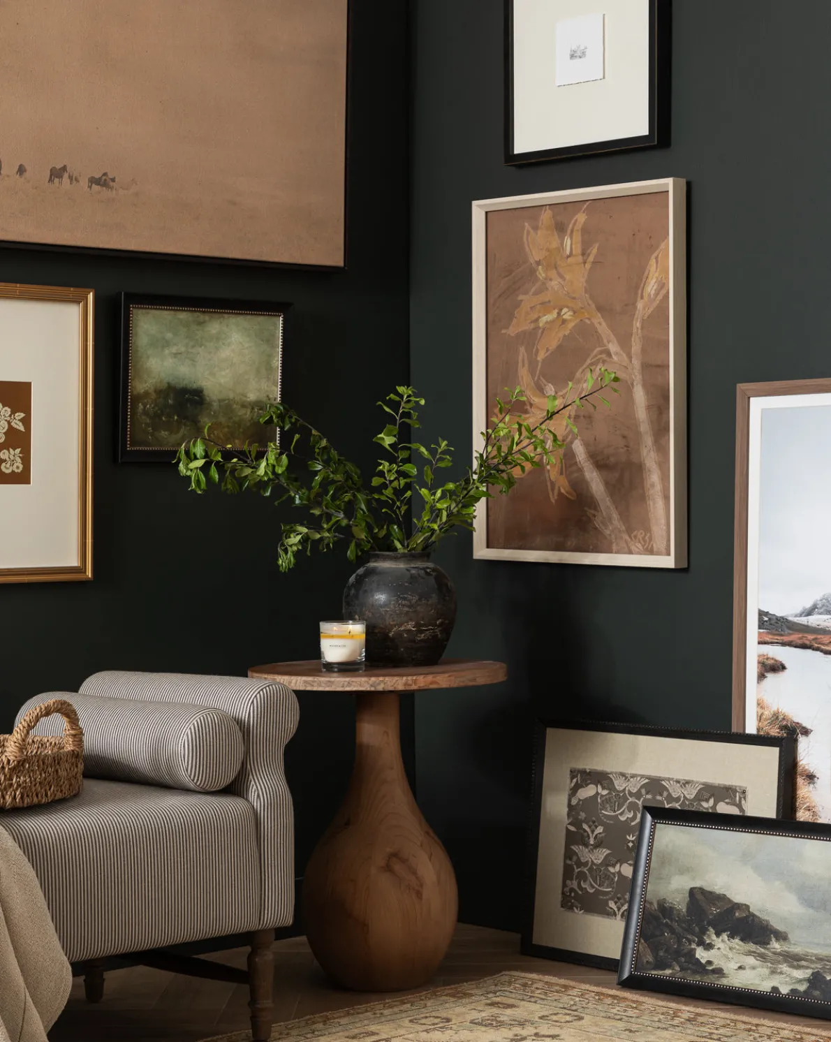 Full of movement and texture, Blowing Bush comes to life with each brush stroke. The piece is a giclee print on gallery-wrapped canvas within a distressed black and antique gold wood frame, lending gallery-quality beauty to your wall treatments.