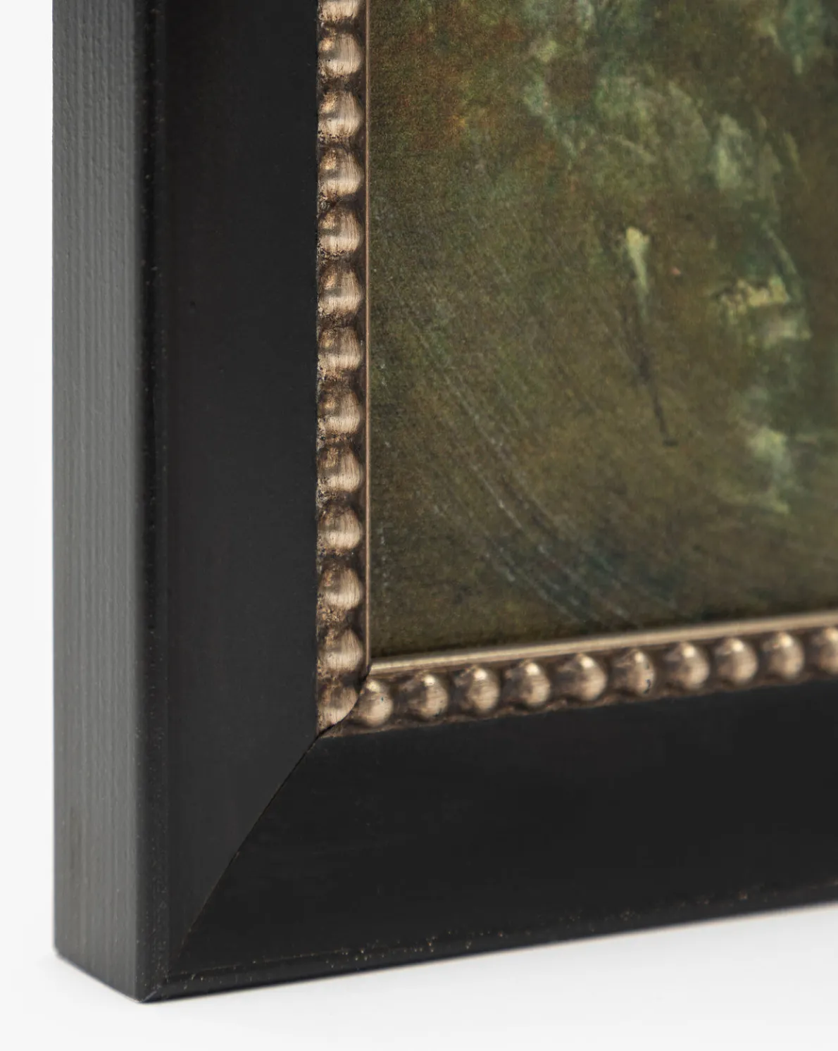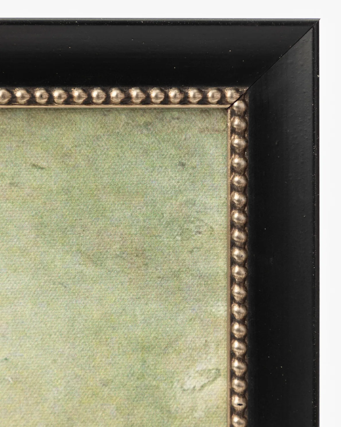 - Frame: Distressed Black Finished Wood & Antique Gold Detail