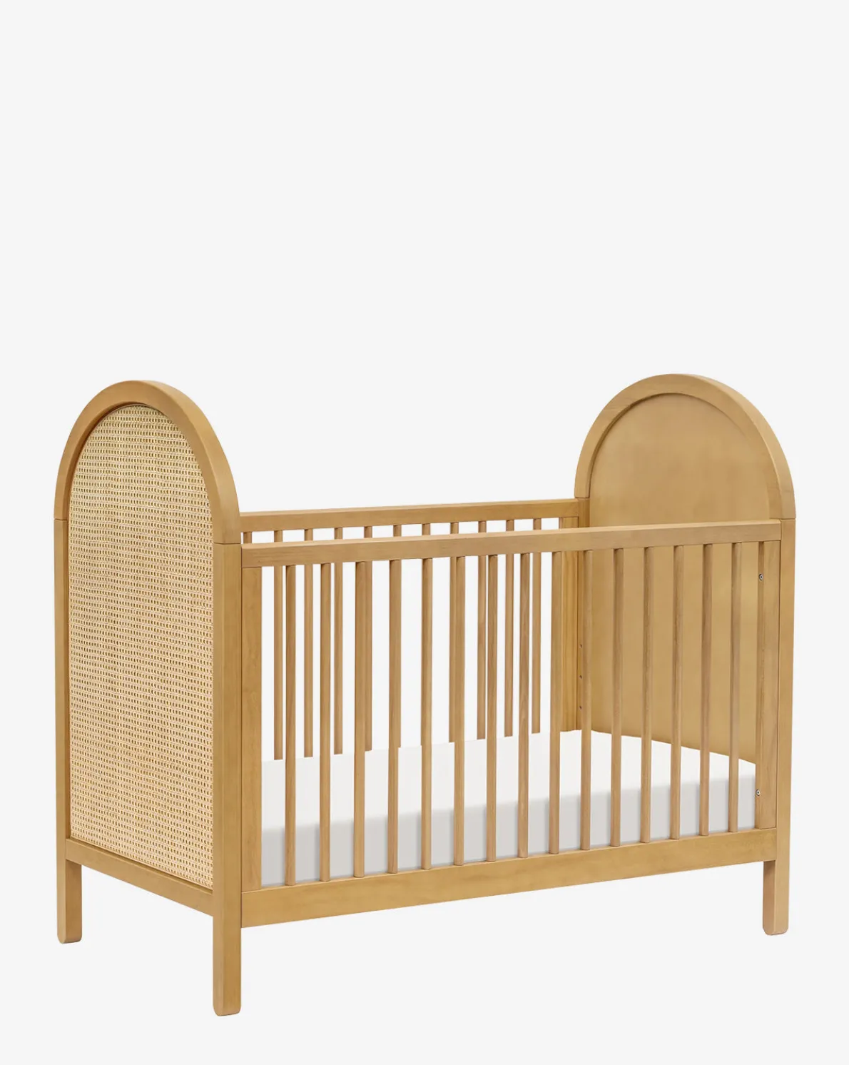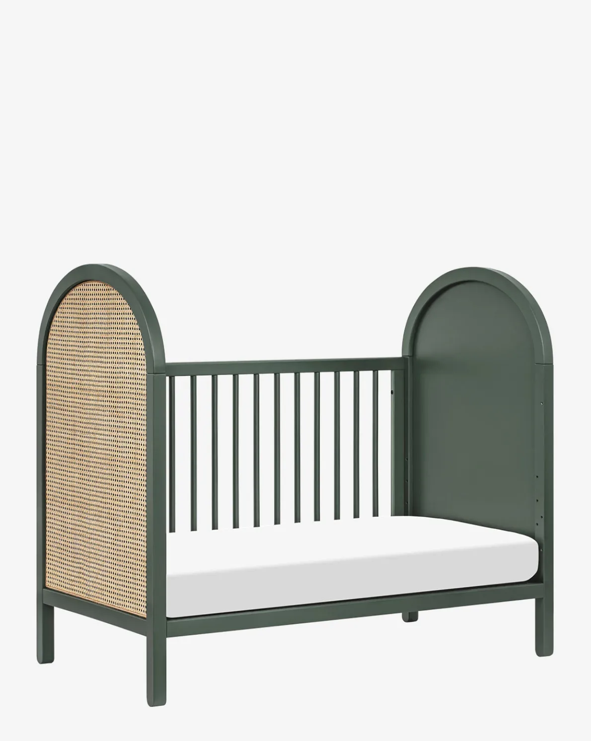 With its arched side panels, curved feet, and woven plant-based cane, the Bondi Cane 3-in-1 Convertible Crib celebrates natural materials and organic design. It offers functionality and a playful yet elevated aesthetic, with a choice of finishes to compliment your nursery. Designed to grow with your little one, it easily converts from a crib to a toddler bed and daybed with an included conversion kit and toddler conversion rail.