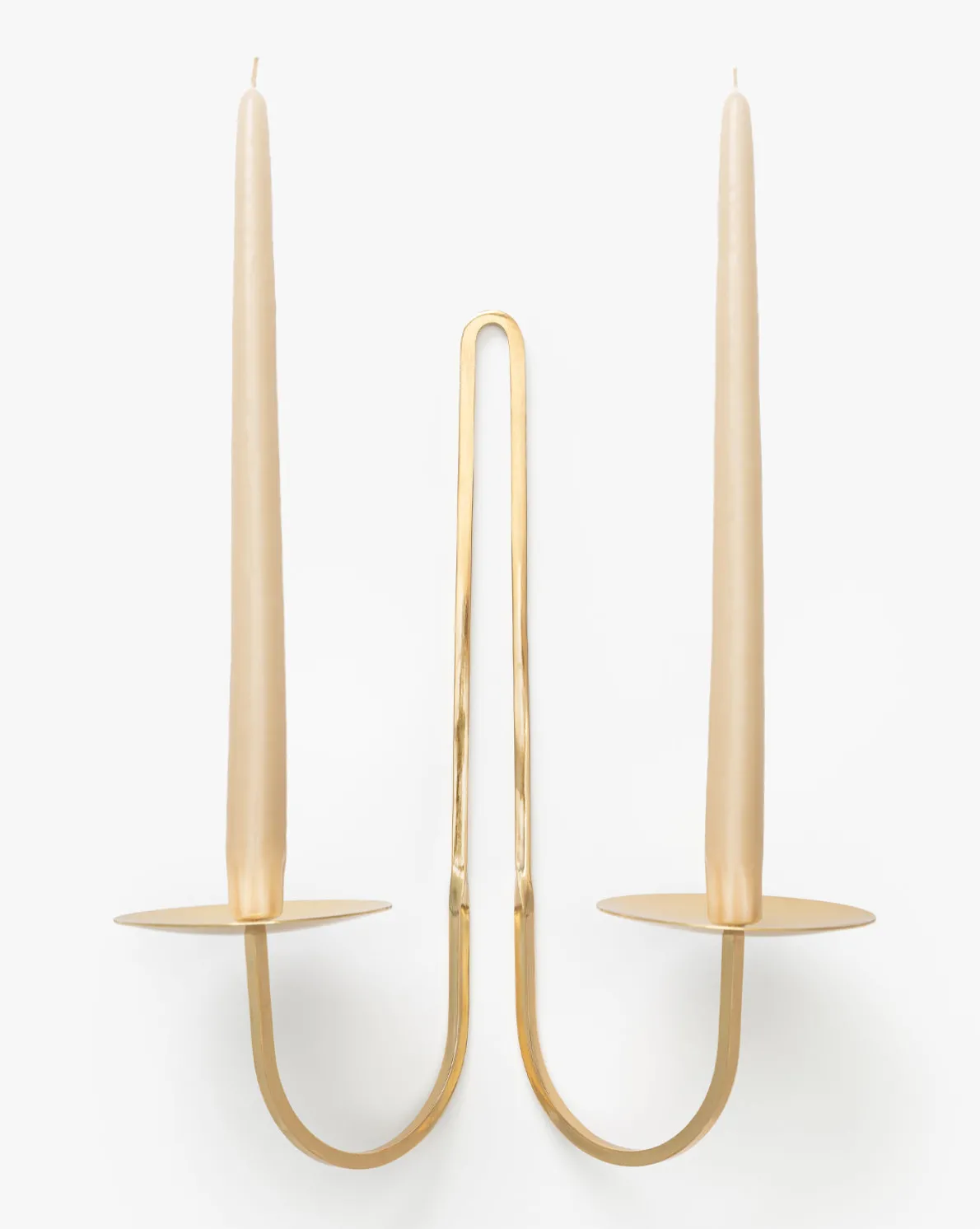 The sleek quality of the Brass Two Arm Candle Holder gives character and personality to your home. Its brass finish highlights each element, bringing practical use and visual interest.