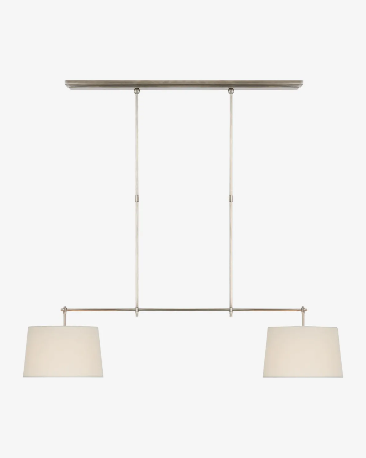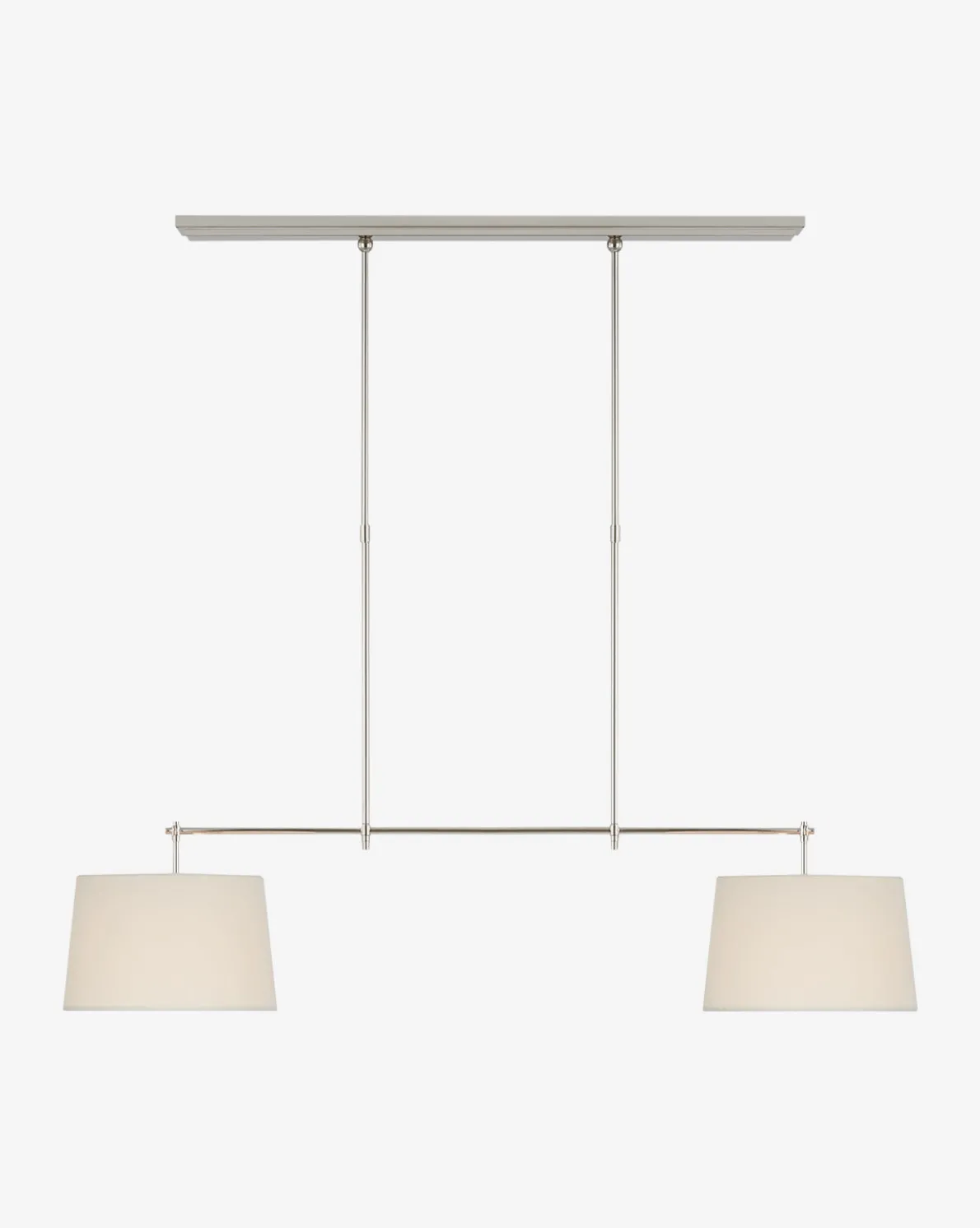 Simple and streamlined in design, the Bryant Medium Billiard is a classic addition to any space. The elegant structure and wide linen shades of this fixture blend seamlessly with existing decor wherever it is styled.