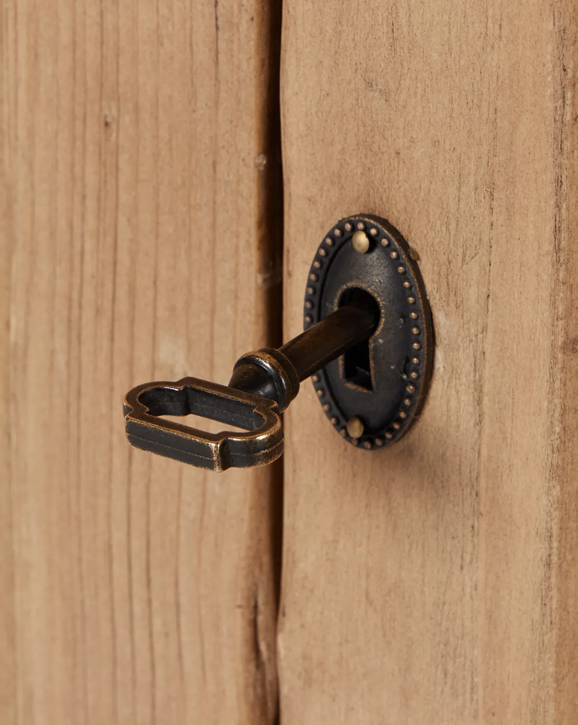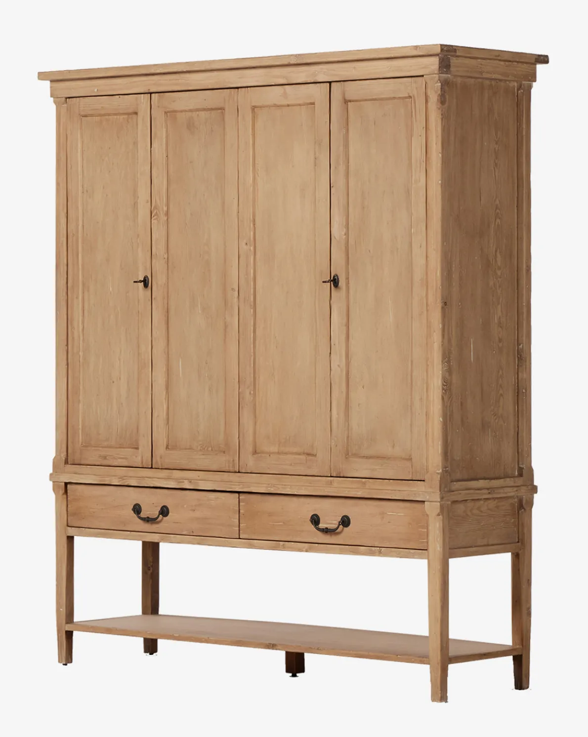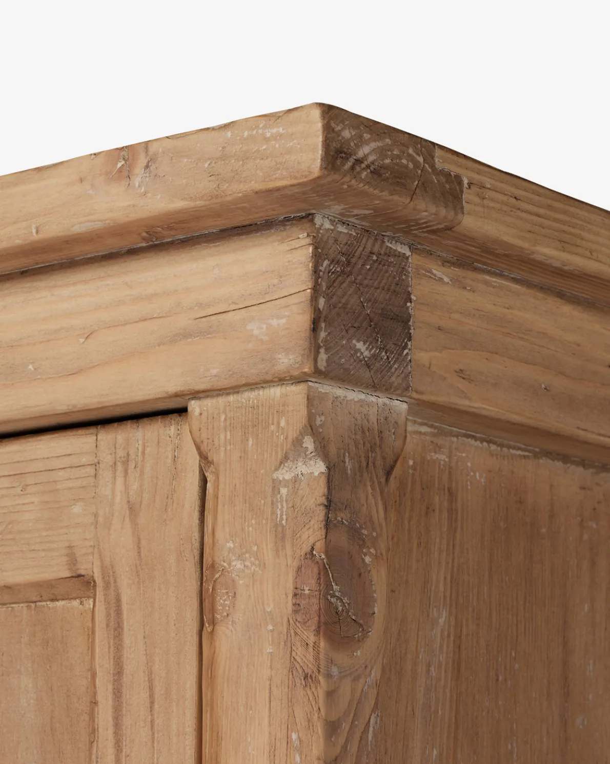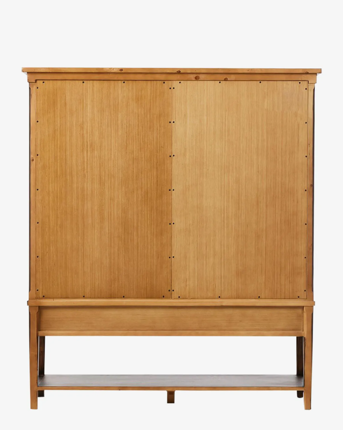 With a traditional design, the Bryn Cabinet is crafted from solid pine with a keen attention to detail on its doors and frame. Featuring distressed copper hardware, the cabinet not only provides practical storage, but elegant sophistication.