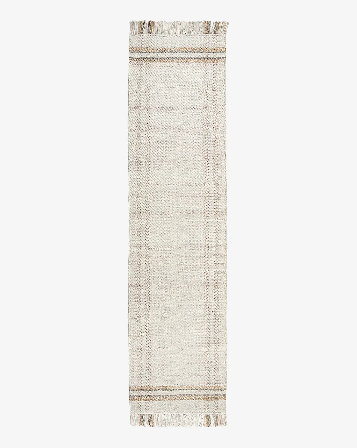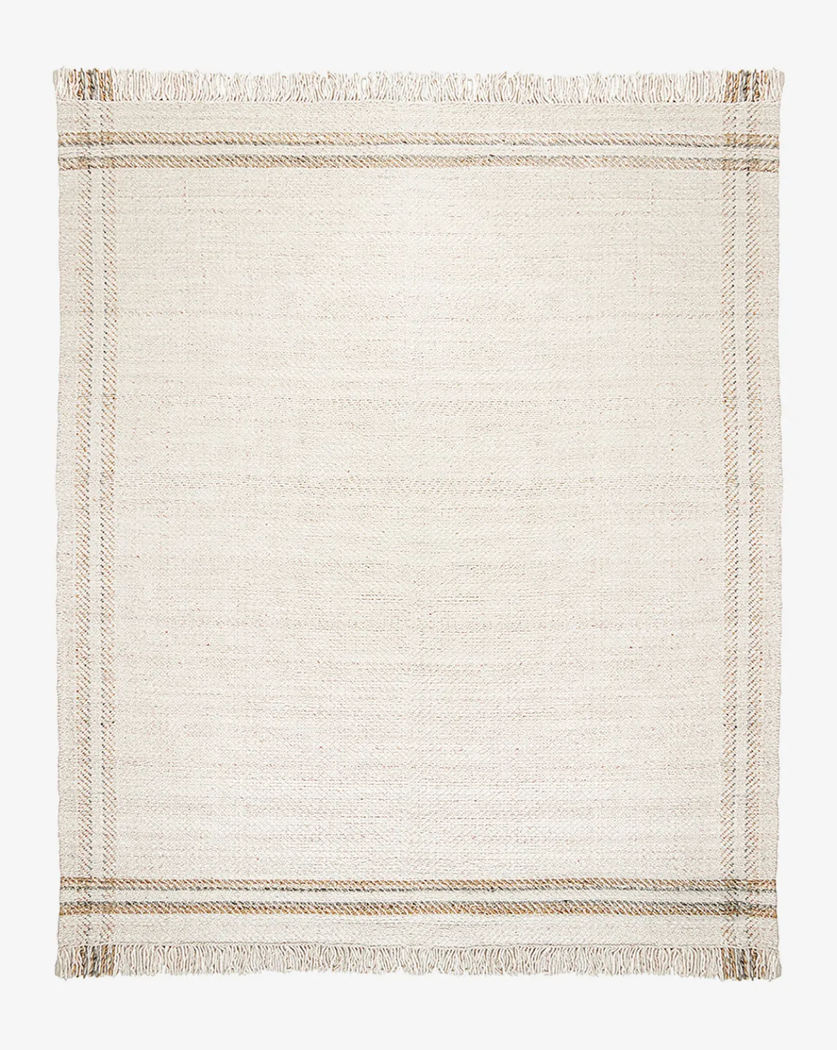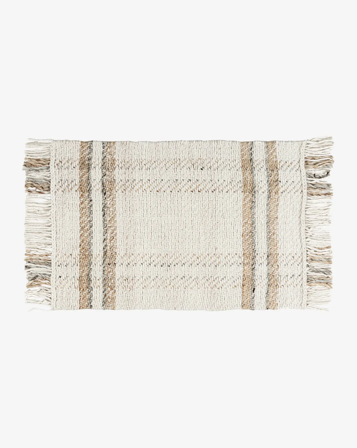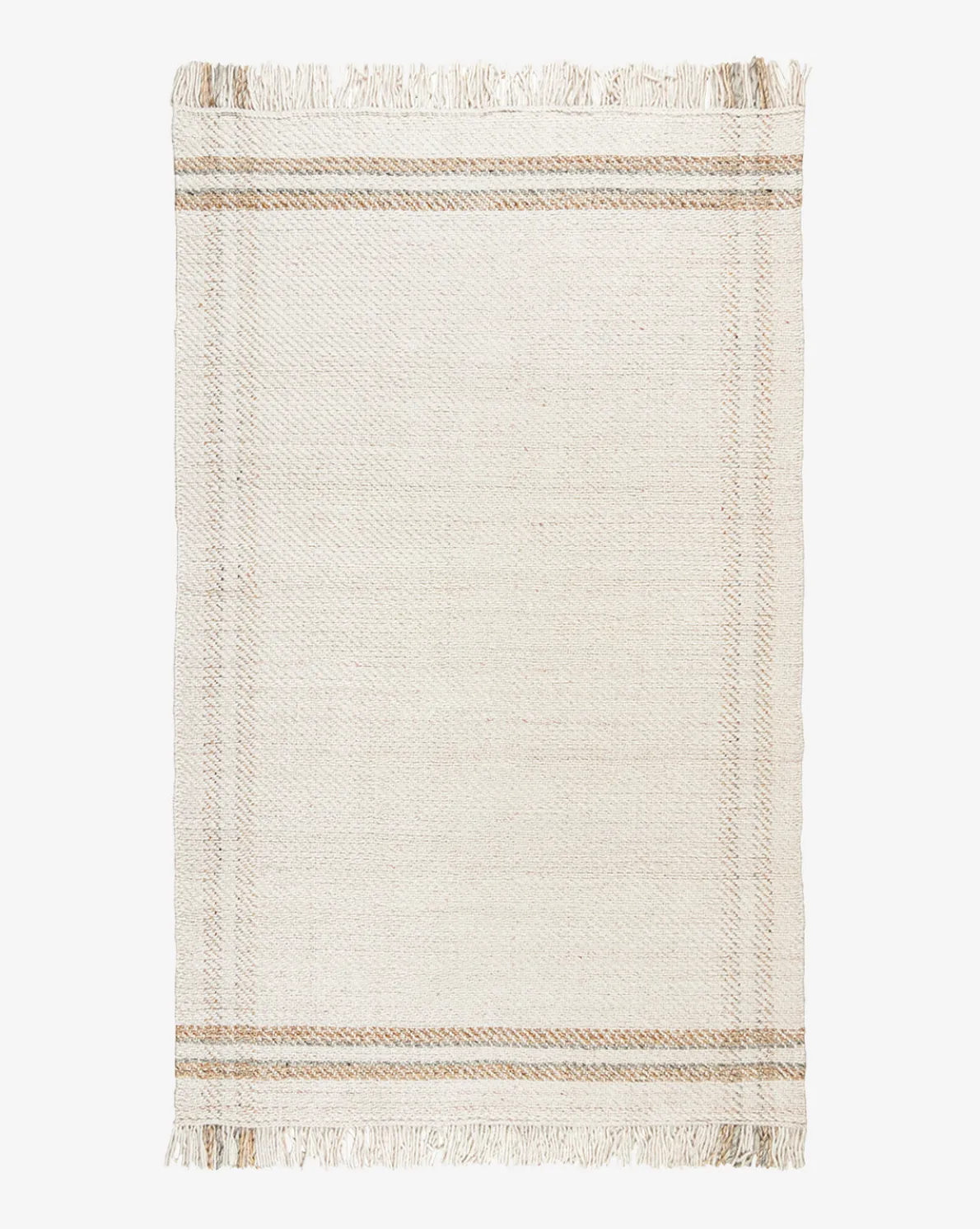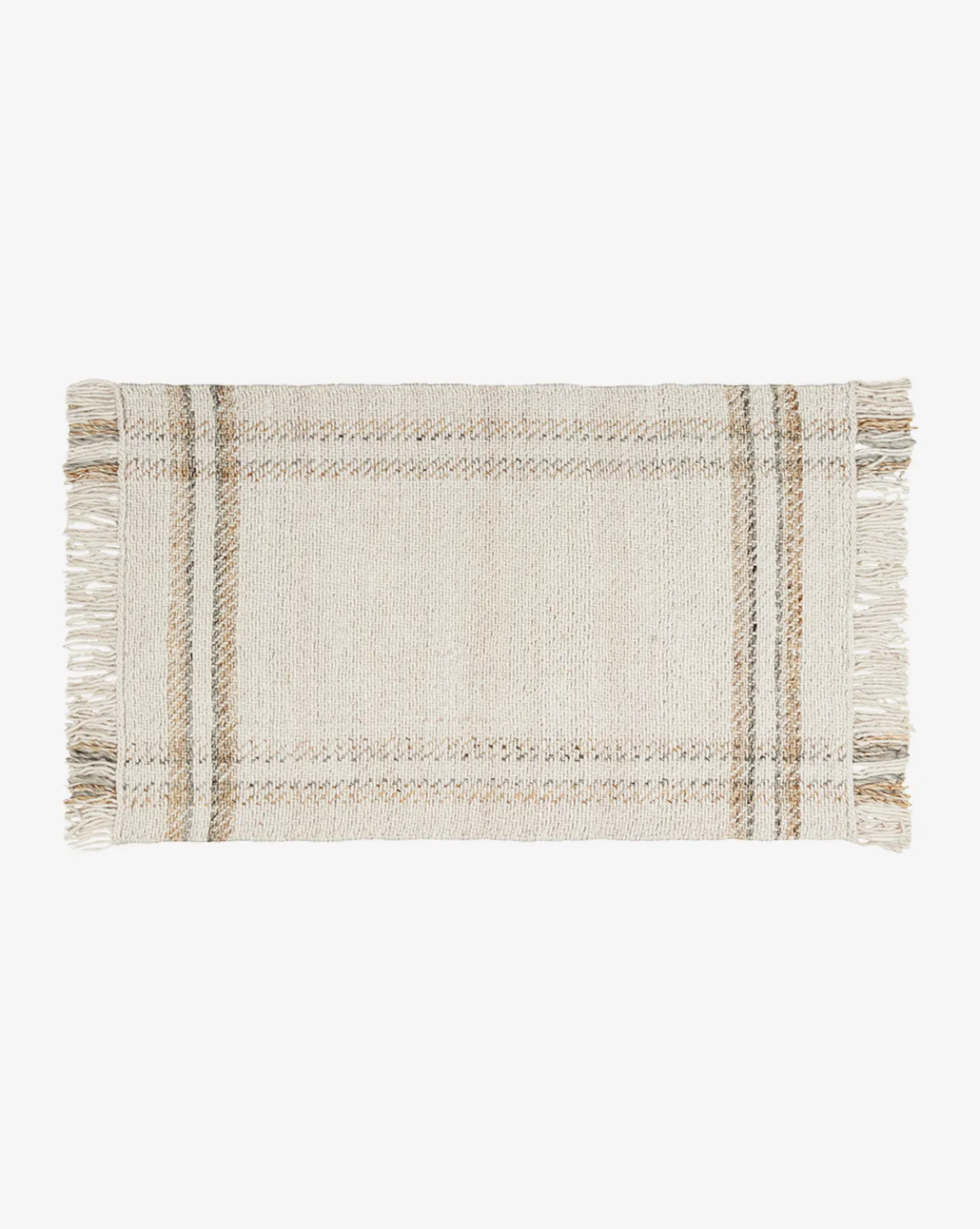 In a hand-woven design, the Callahan Handwoven Indoor/Outdoor Rug anchors any room and gives warmth to your designs. Its neutral beige and gray palette lends versatility, and its stripes have subtle visual interest. Finished with long, multi-colored fringe, the Callahan Rug has a playfully casual look that gives a relaxed feel to your space.