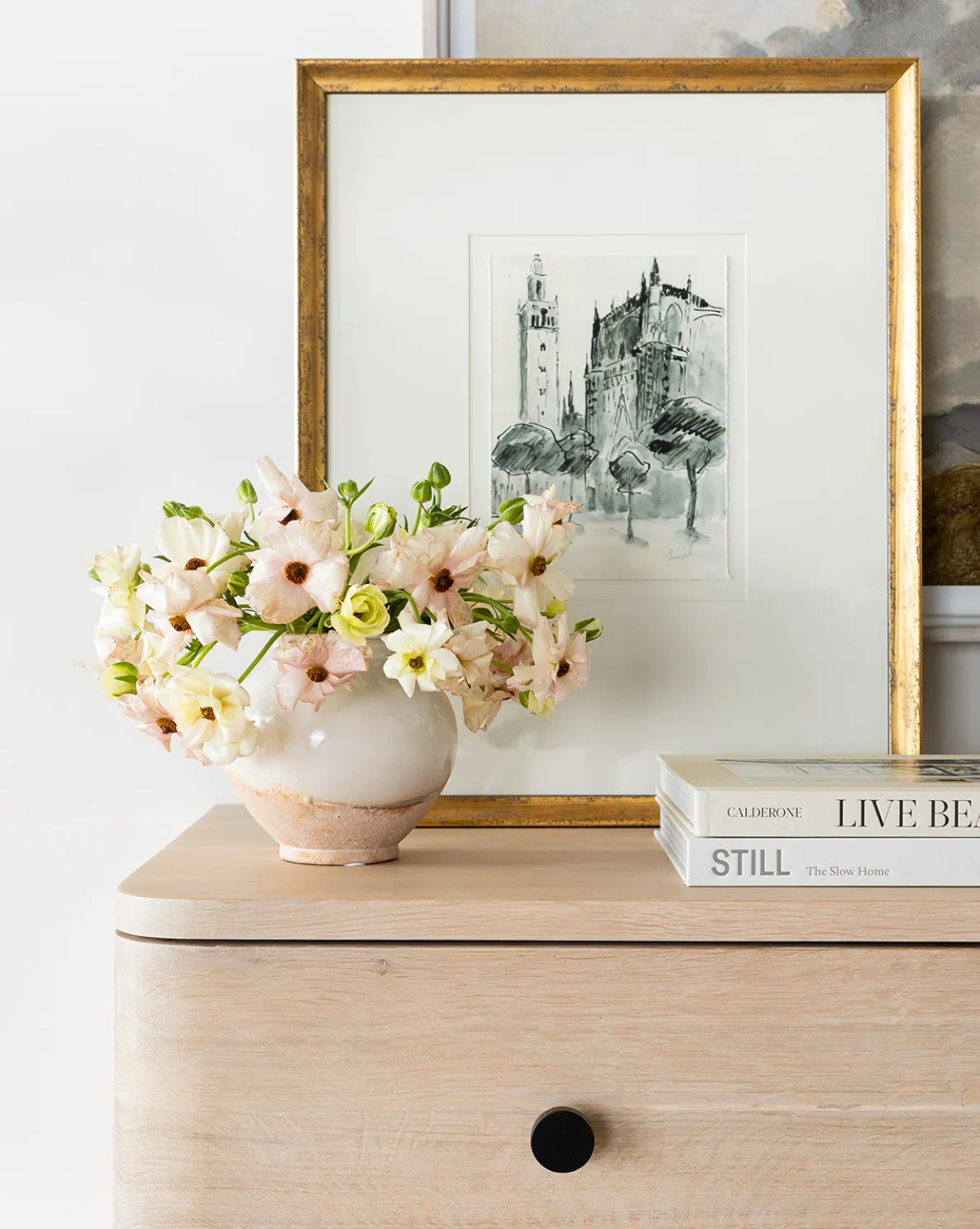 Sketched and painted with the beauty of watercolor, our Castle Sketch adds dimension with its tonal use of black. Enhanced with artist applied texture, this piece brings interest to your space with its wide mat design and stunning gold hued frame.