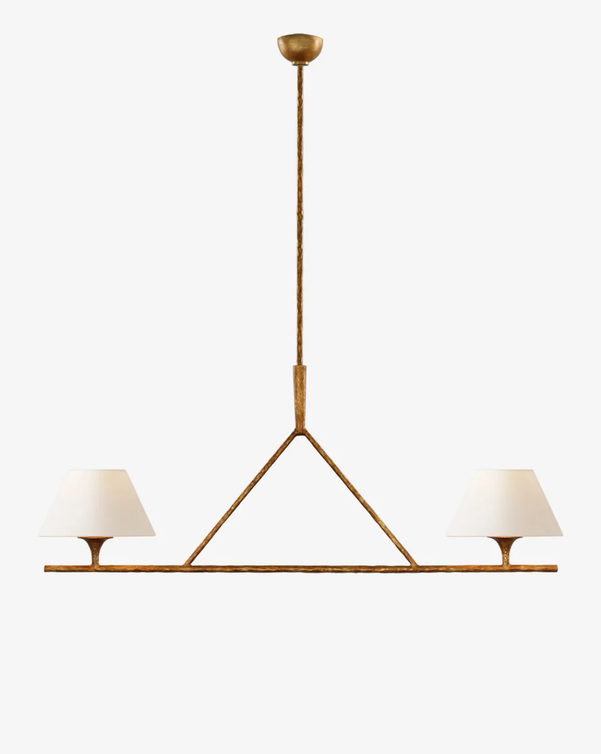 Elegant and geometric, the Cesta Large Linear Chandelier boasts elevated craftsmanship with its subtle details. The dark metal structure is made from steel in a streamlined design that complements the linen shades. With its simple silhouette, the chandelier casts beautiful light into your space.