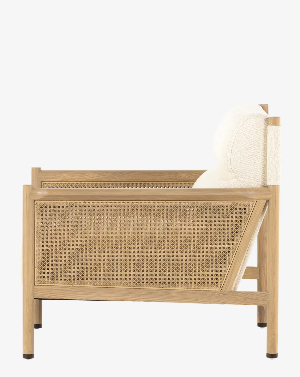Crafted with a keen attention to detail, and inspired by Parisian design, the Channing Lounge Chair creates a moment of depth and dimension wherever it’s placed. With comfortable textures and inviting hues, its high performance-upholstered seat is perfectly positioned for comfort alongside the woven natural cane and stunning parawood frame.