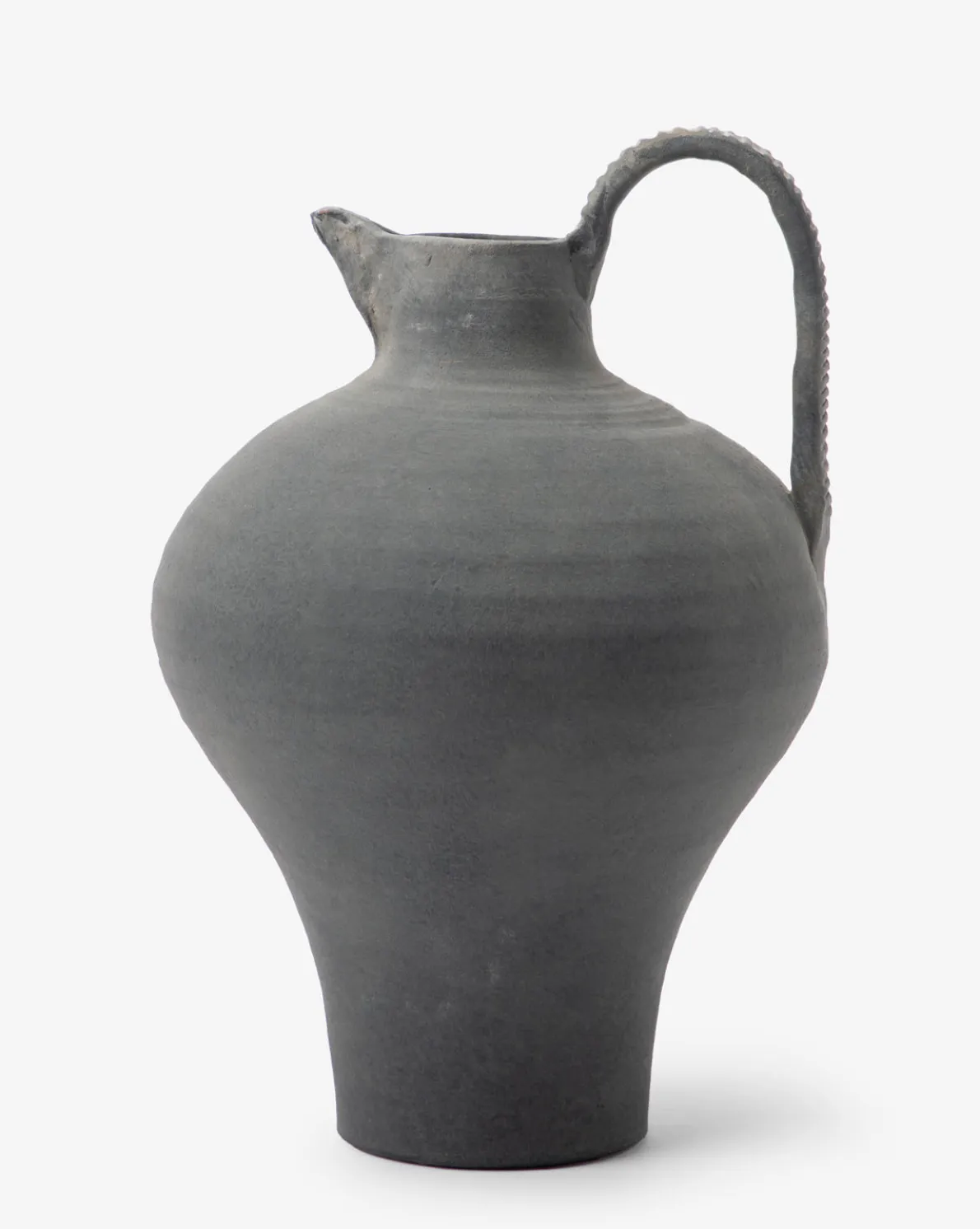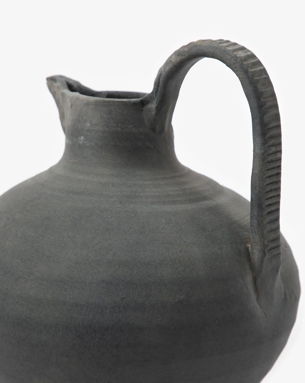 With a dramatic form, the Charcoal Terracotta Jug brings a rich, charcoal hue to your decor. Handmade and textural, the steep handle and wide body of the jug make a powerful and timeless statement in your space.