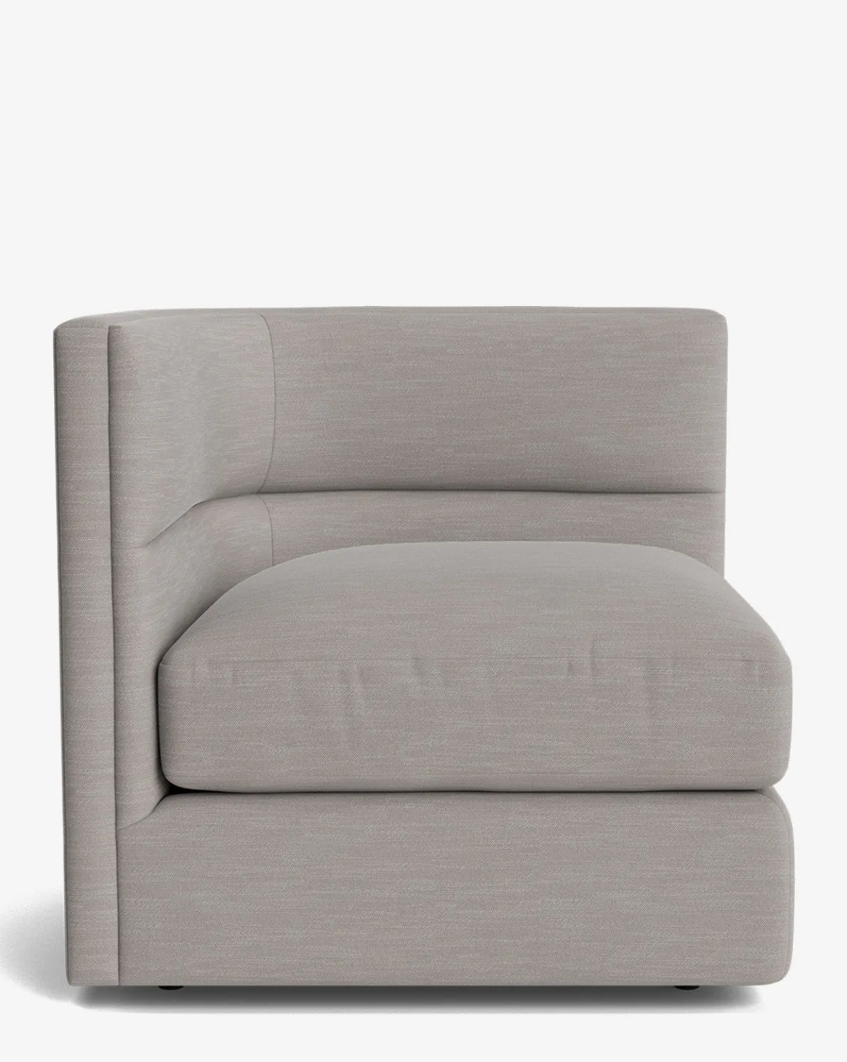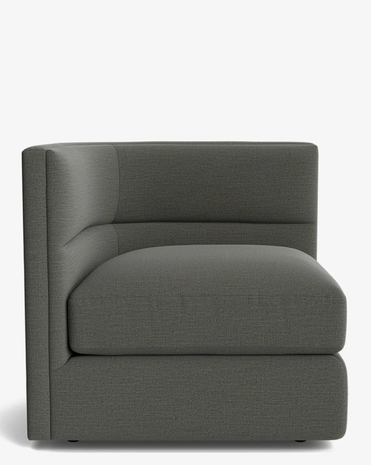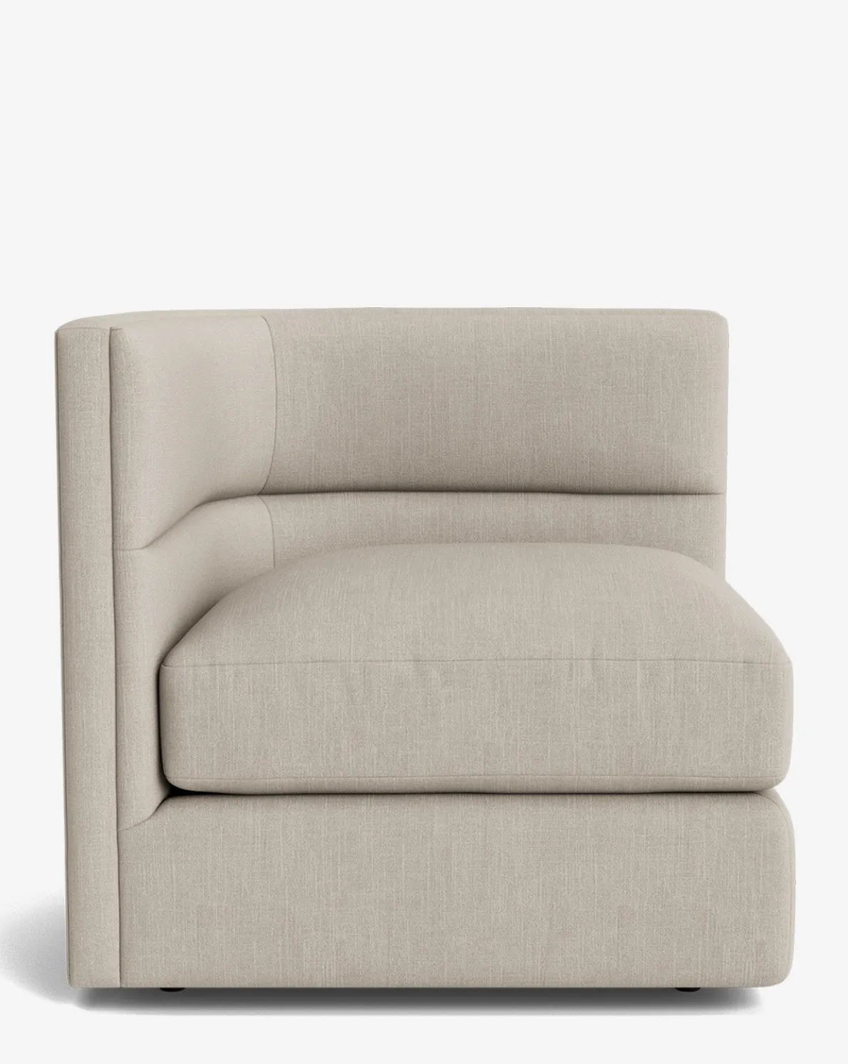 Our Claremont Modular Corner takes a bold and vintage-inspired approach to luxurious comfort. A functional accent to your living space, the wide seat cushion is complemented by a channeled back. Make this piece completely your own by choosing from our favorite high-quality fabric choices that suit your space and lifestyle. Style the modular corner on its own or within a set from our Claremont modular collection.