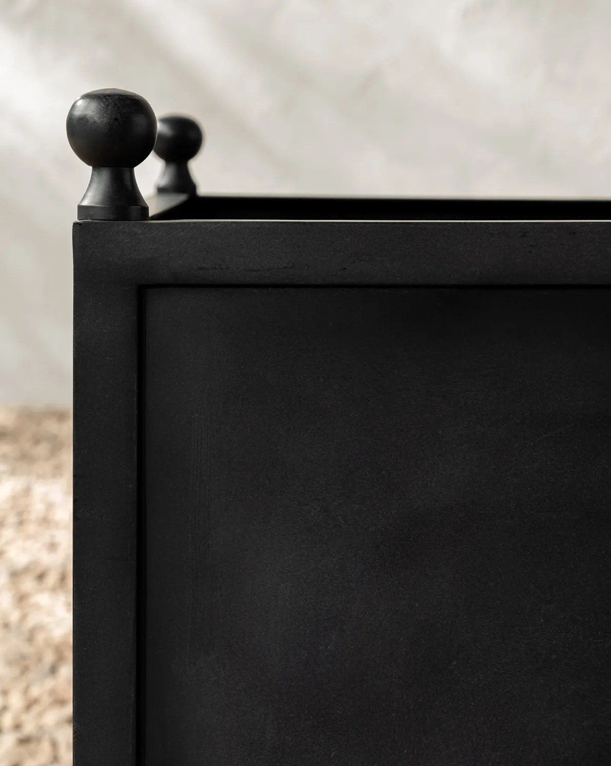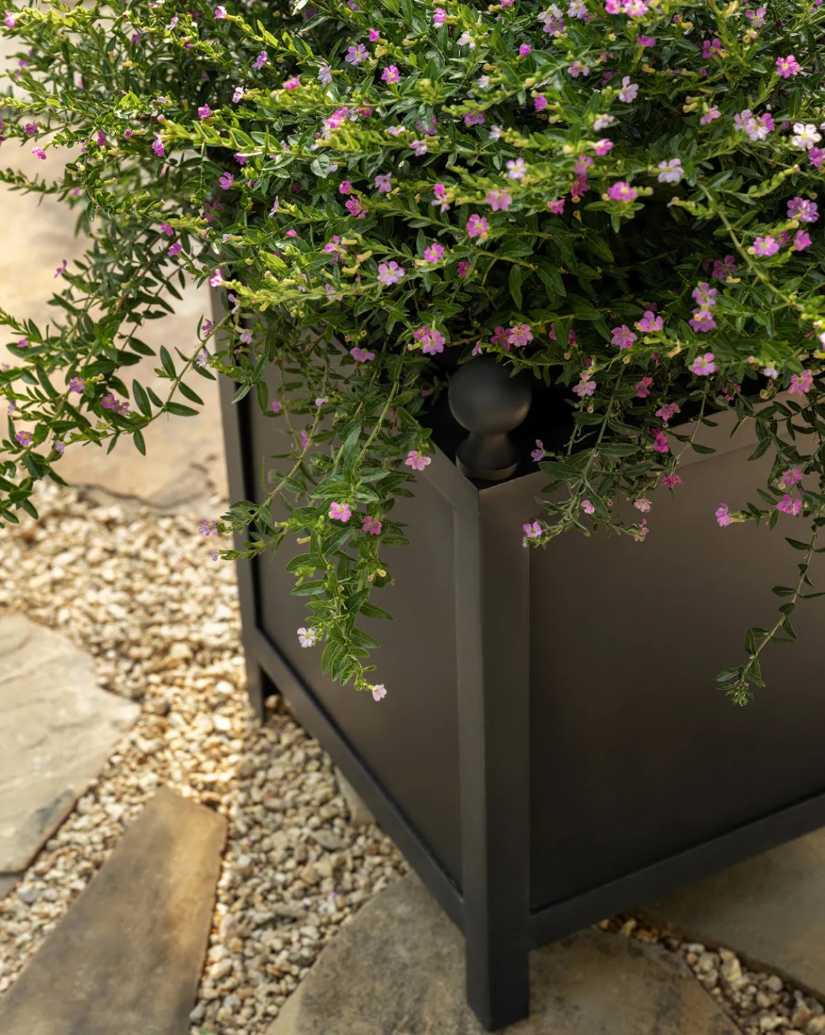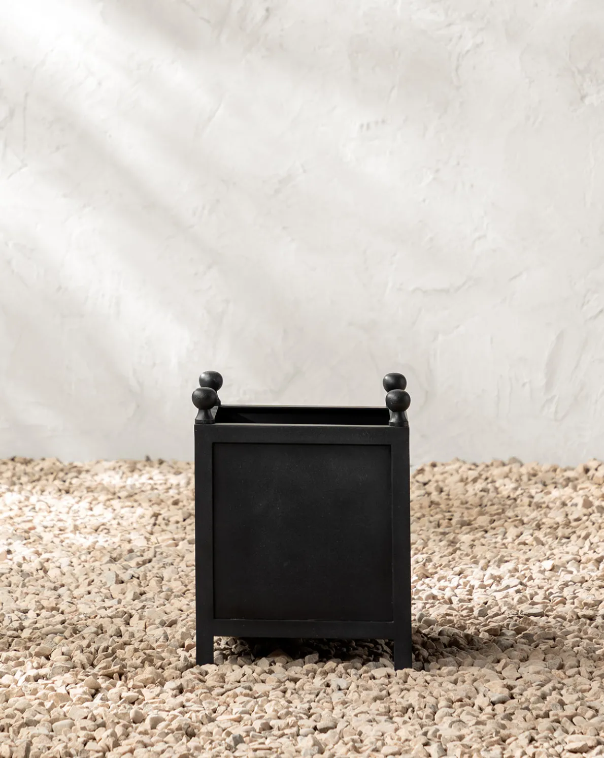 With a bold finish and geometric shape, the Clariance Planter brings intrigue and elegance to your decor. Made from aluminum with a dark finish, the playful details of the metal planter add function to your outdoor styling.