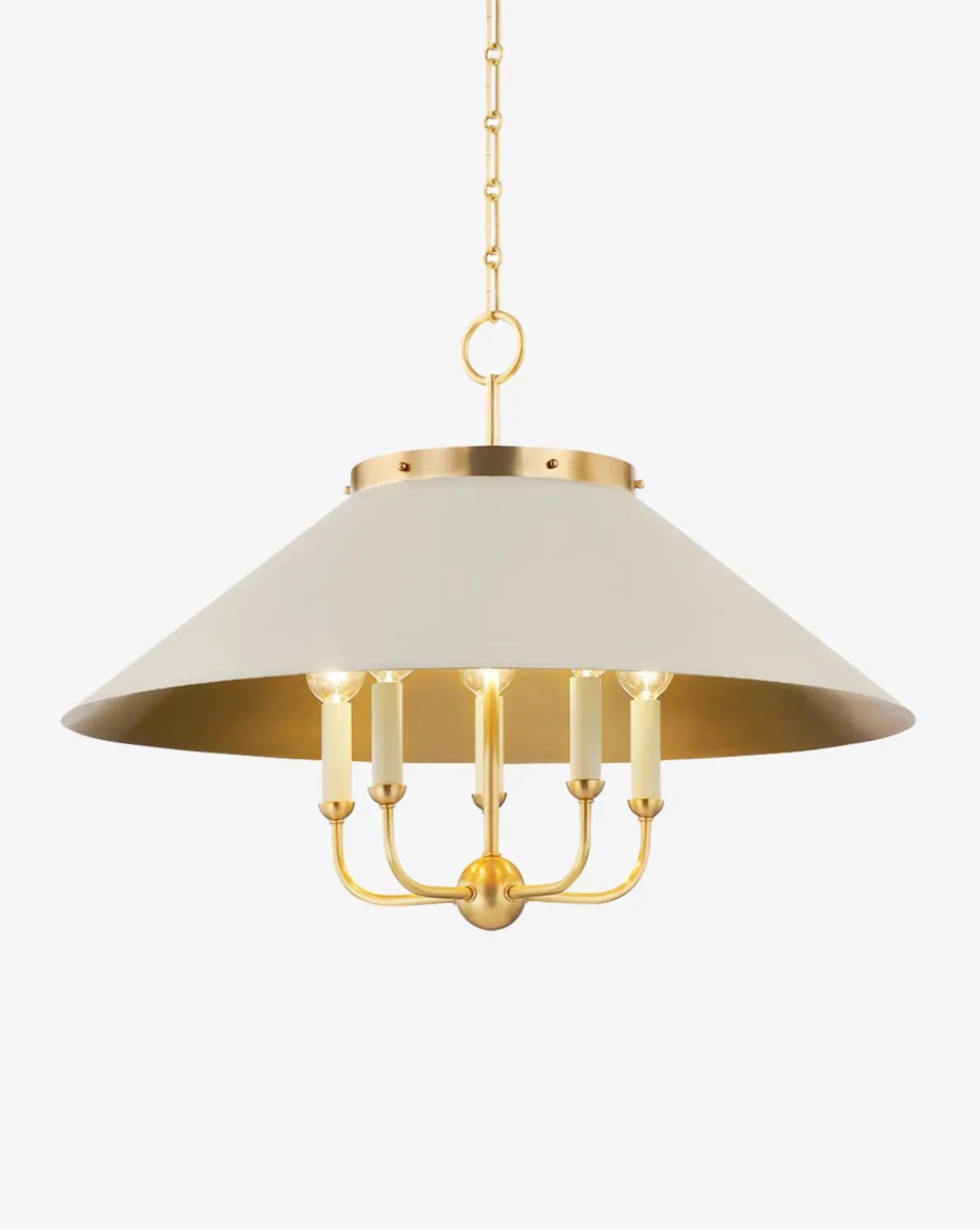 With a contemporary yet approachable feel, the thoughtful design of the Clivedon Pendant gives it a unique beauty. The wide steel shade in one of two finishes frames five candelabra bulbs, lending delicate detail and warm light to your home.