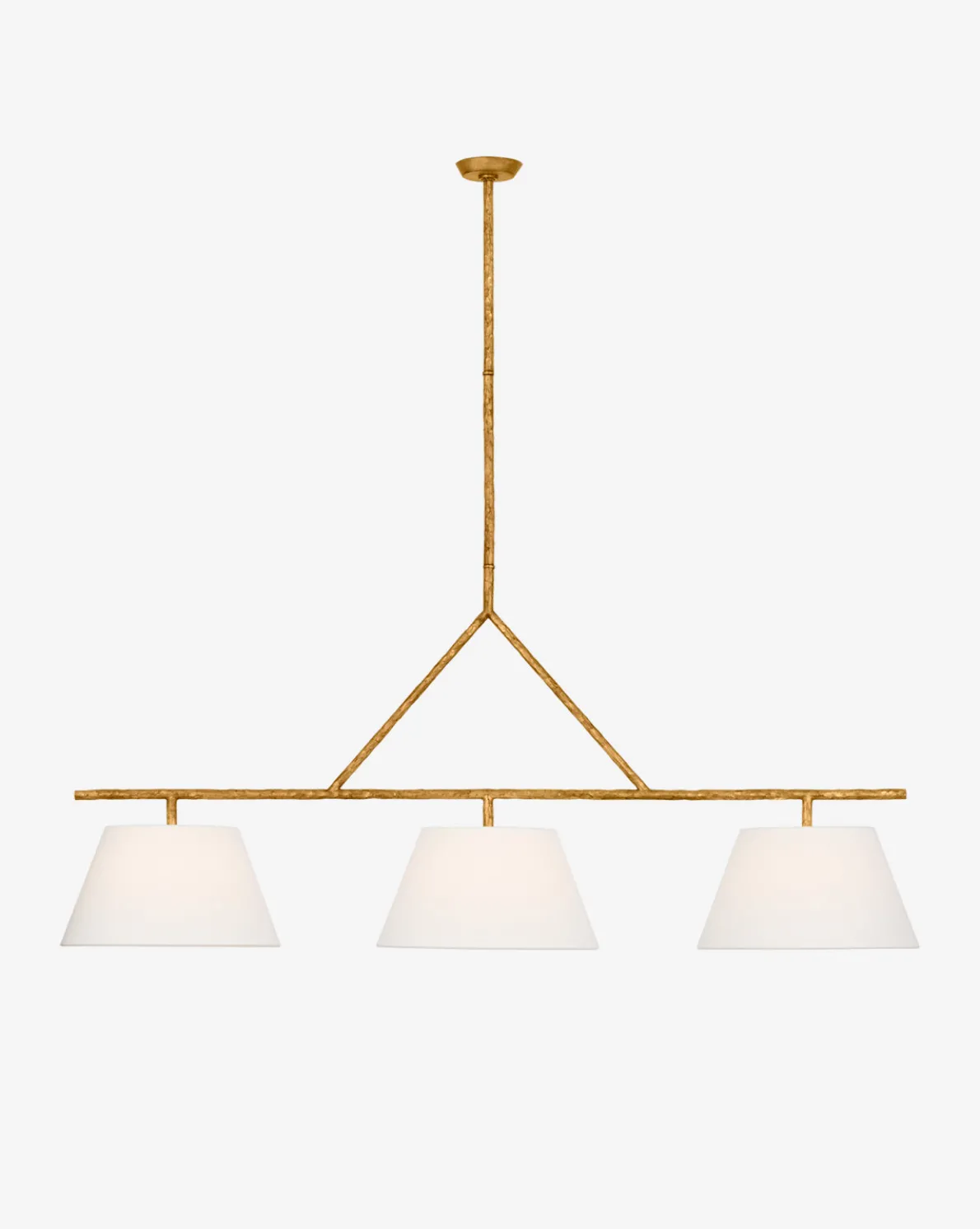 Elegant and geometric the Collette Linear Chandelier boasts thoughtful craftsmanship with its subtle details. The steel structure is available in two timeless finishes to complement its white linen shades.