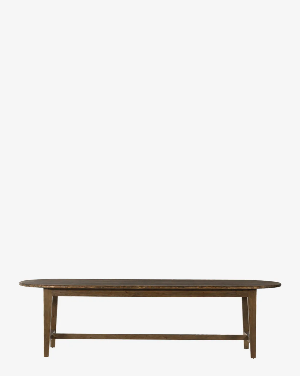 Crafted from solid pine, the Constance Dining Table brings a modern farmhouse feel to your space. The pine is finished in a warm honey, for an enhanced rustic feel. Its oval top sits on simple tapered legs, with both an apron and stretcher for support and visual interest.