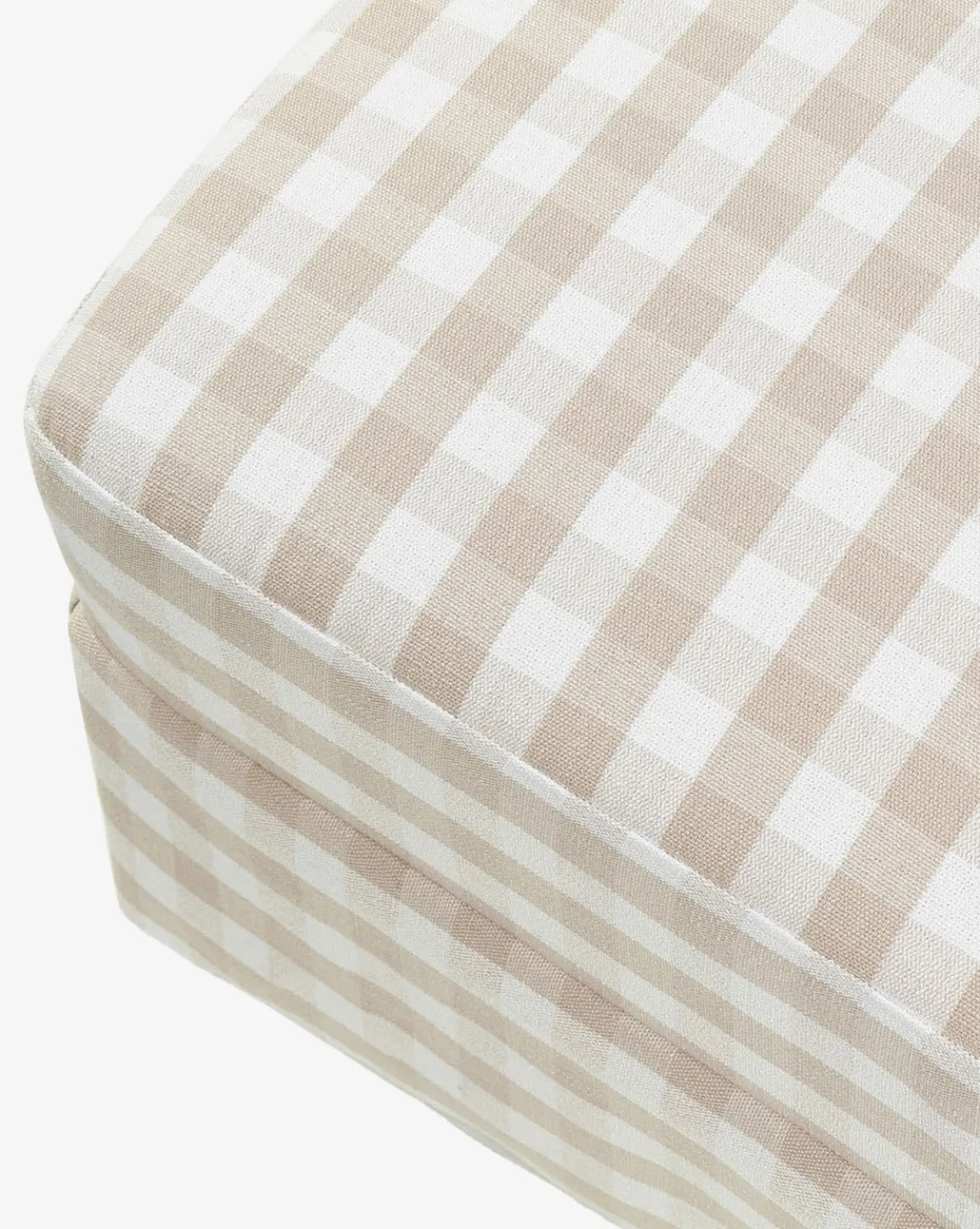 With a classic gingham motif in a neutral palette, the Crawford Gliding Ottoman in Gingham is intended to be a timeless and durable take on the classic small ottoman. Designed for a kids’ room or nursery, the ottoman features a forward and backward glide.