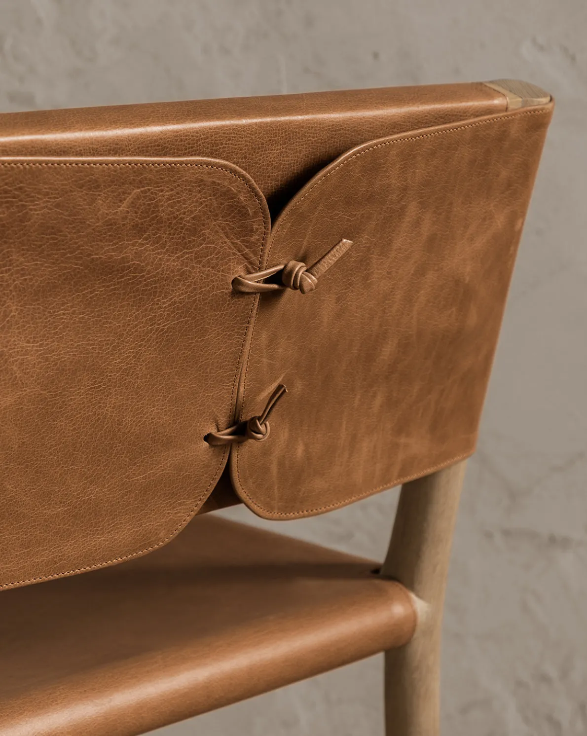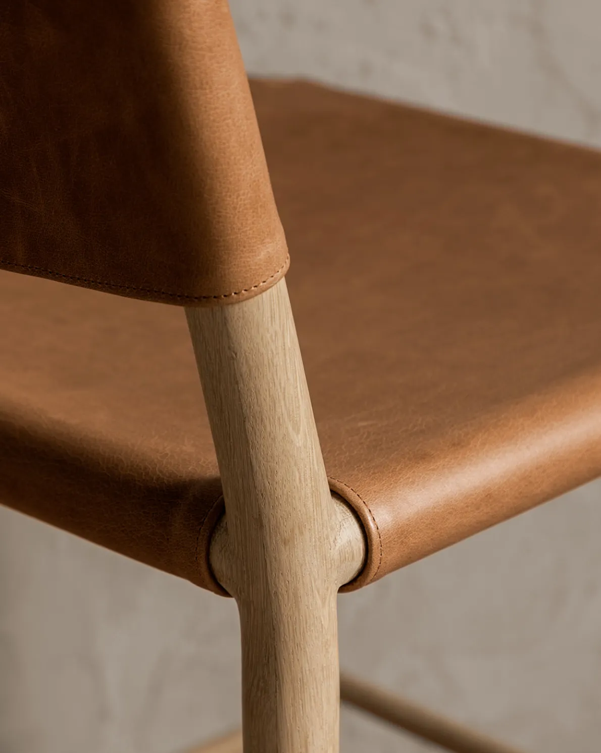 It’s all about the details with our Danson Counter Stool! From the light neutral wood base, to the warm leather seat and back, this stool highlights minimalist design while showing off its unique back detail with faux ties and rounded straps.