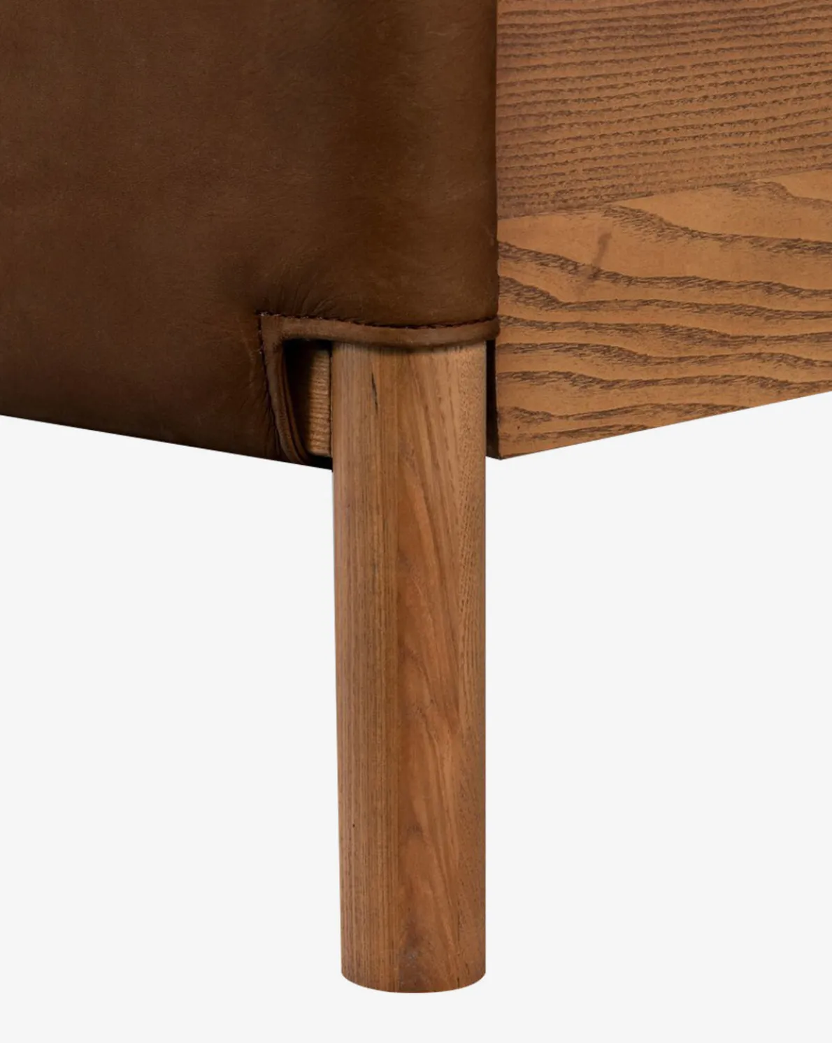 Made from a stunning mix of materials, the Dorian Bed brings tone and texture to the center of your bedroom styling. Its frame features top grain leather upholstery for a warm and sophisticated feel.