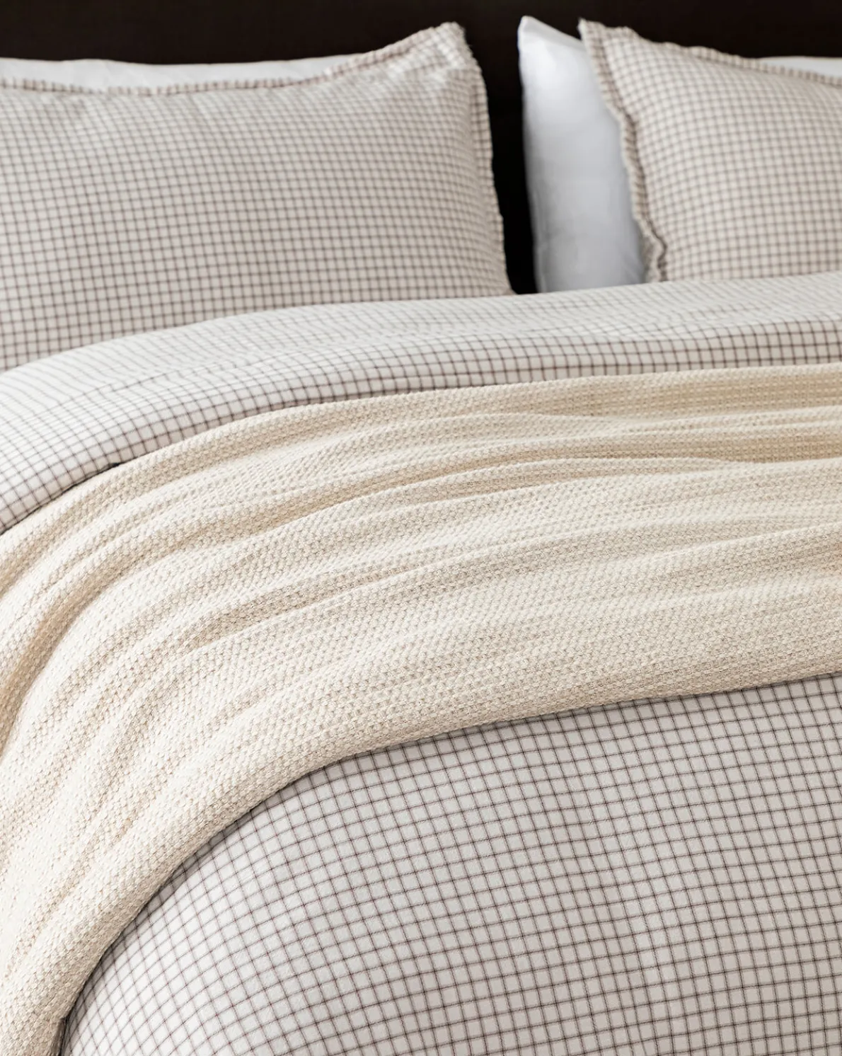 A harmonious fusion of style and comfort. Woven in a cotton-hemp blend, our Duffy Oversized Throw is a durable, soft, and warm layer. We designed it with a neutral tone that lends to versatility, and a textural feel that makes it ideal for styling at the end of the bed.