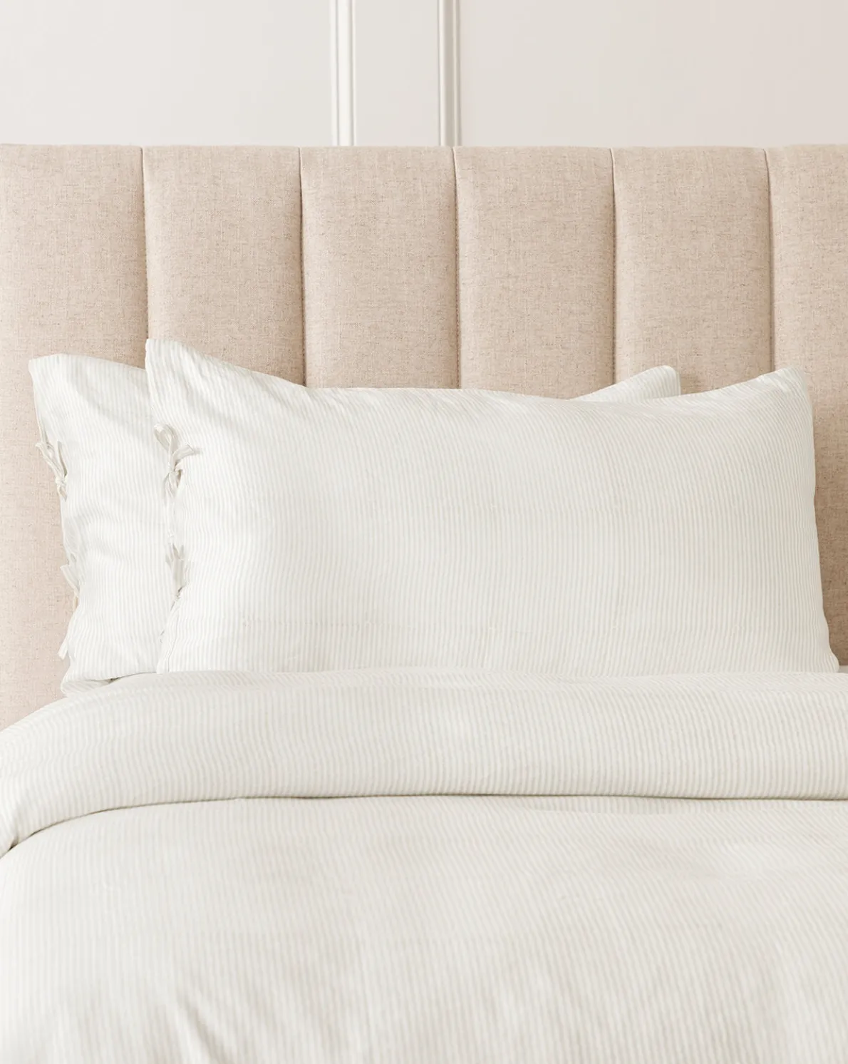 Subtle and soft, the Easton Striped Shams add a subdued pattern to bedding without overpowering other components of the room. This elegant pair of shams has a cream and oatmeal palette, using a classic design of thin-banded strips to give interest and gentle visual interest to your bed’s style.