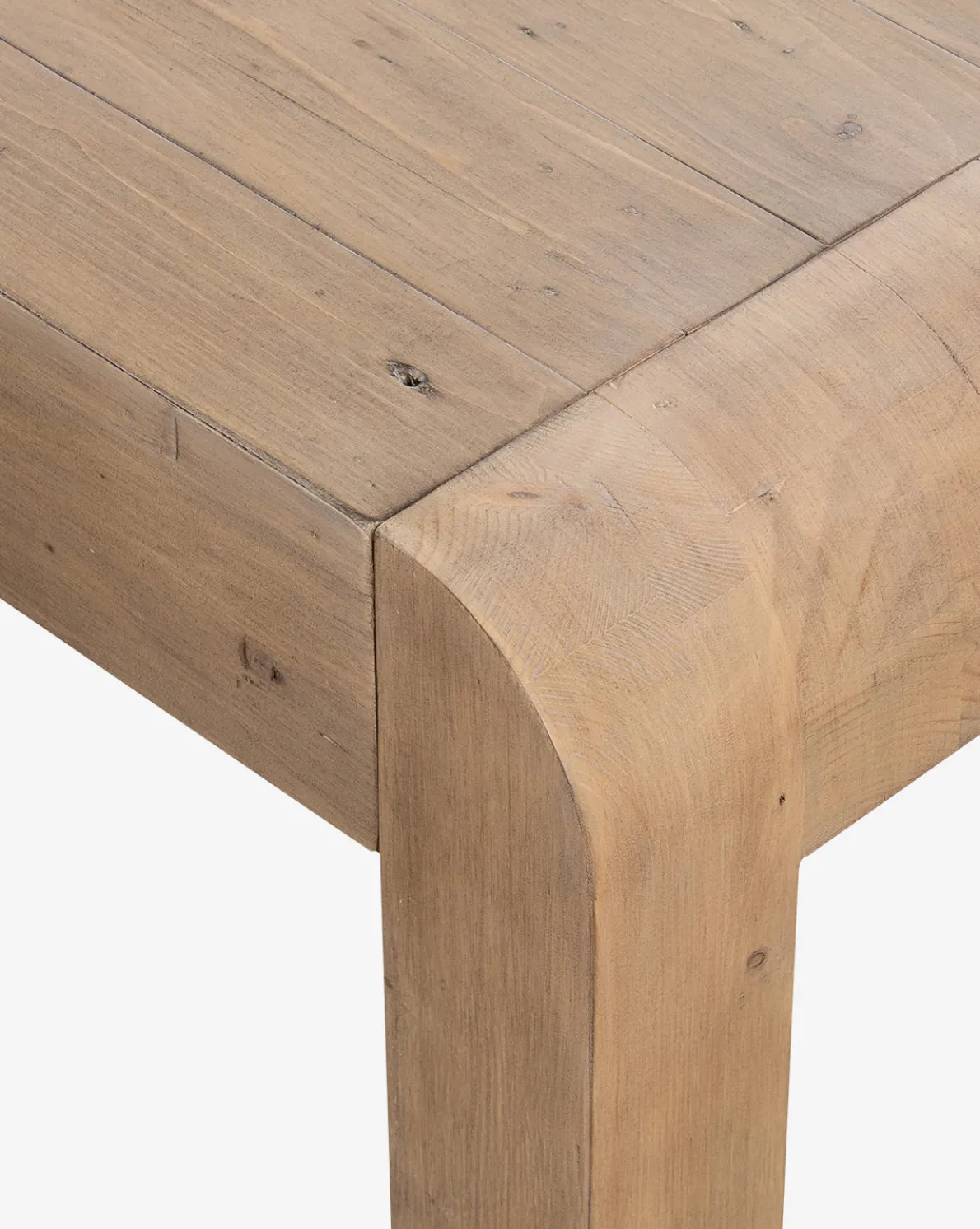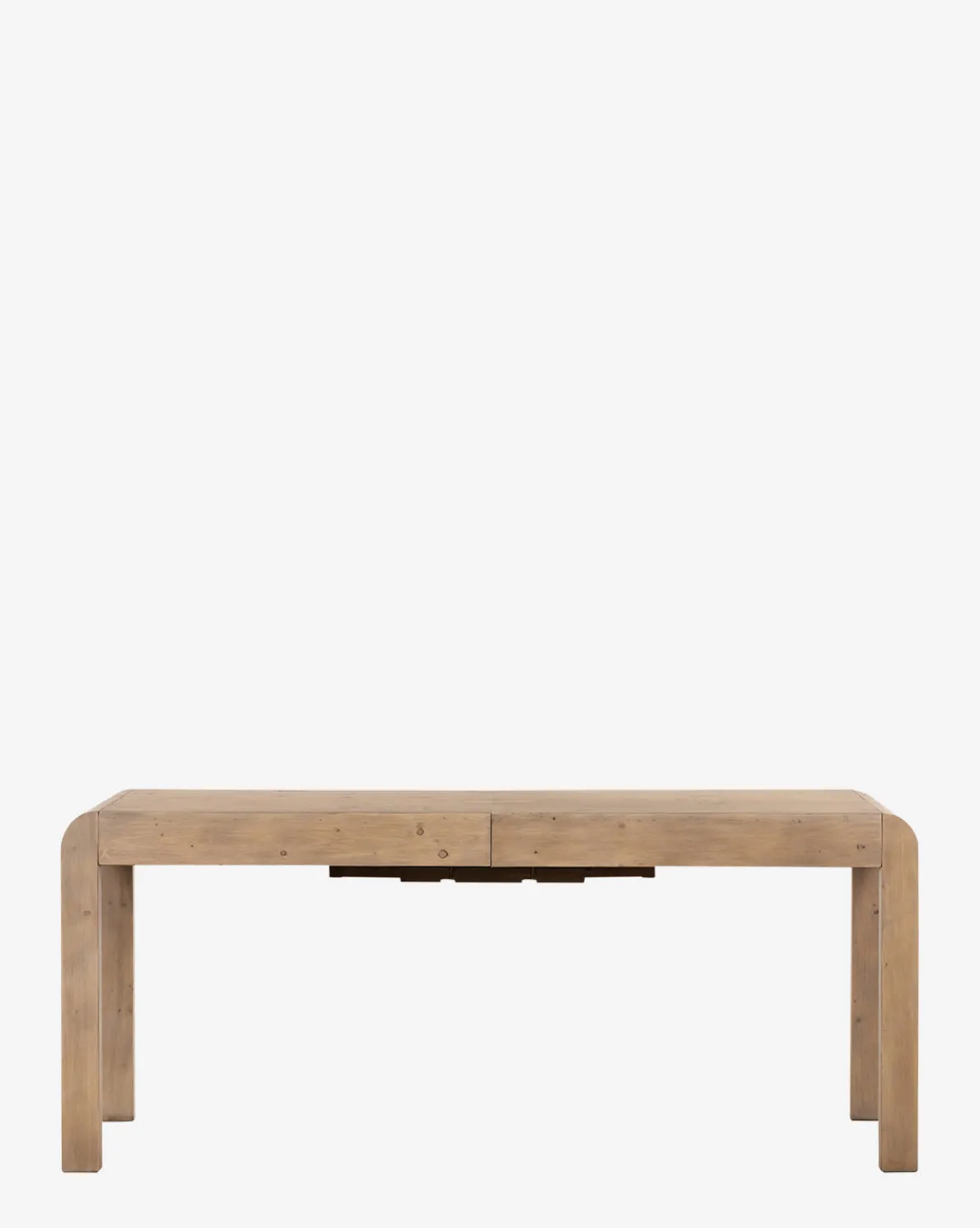 The Elisha Extension Dining Table brings a modern feel to a classic wood table with its simple and organic design. Crafted from mixed reclaimed woods for a natural look, the curved structure of the table makes it a warm and inviting element in your dining spaces. The dining table features a butterfly leaf that allows for easy extension.