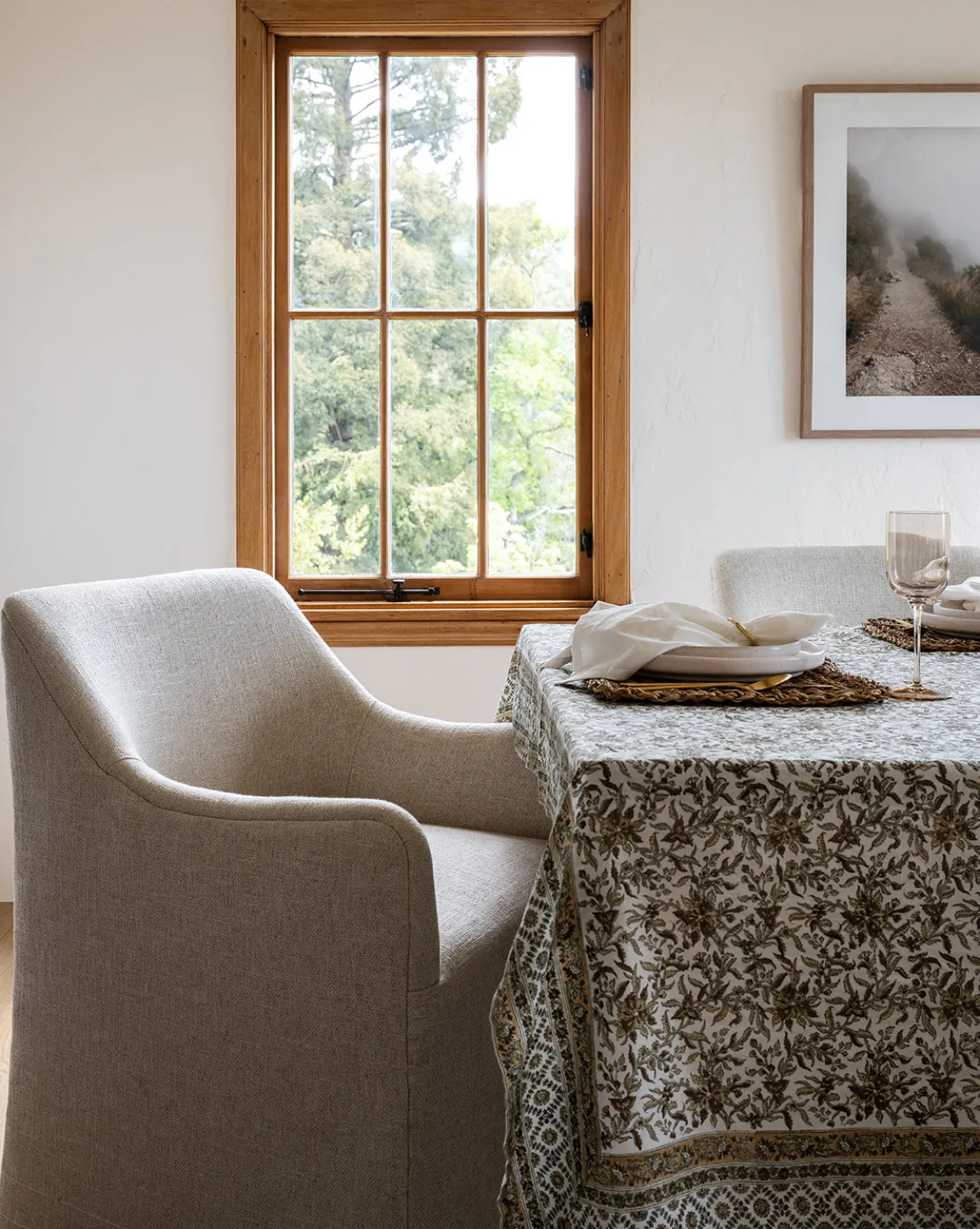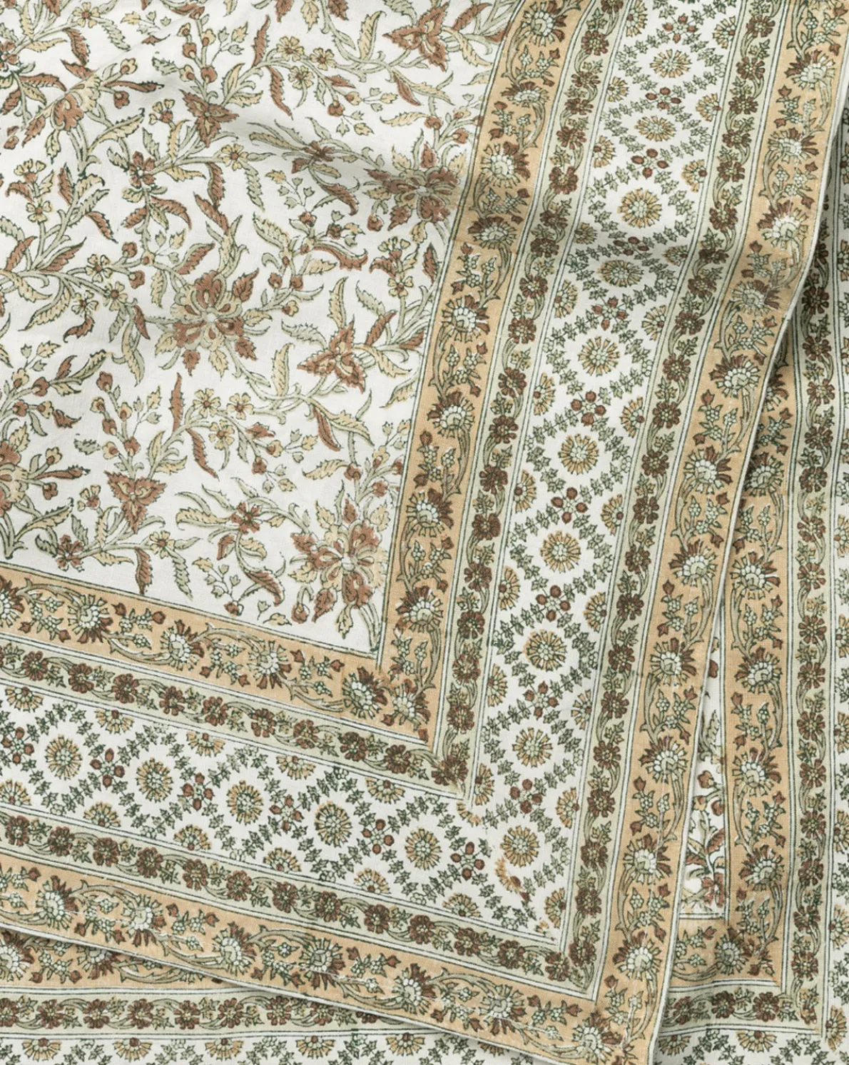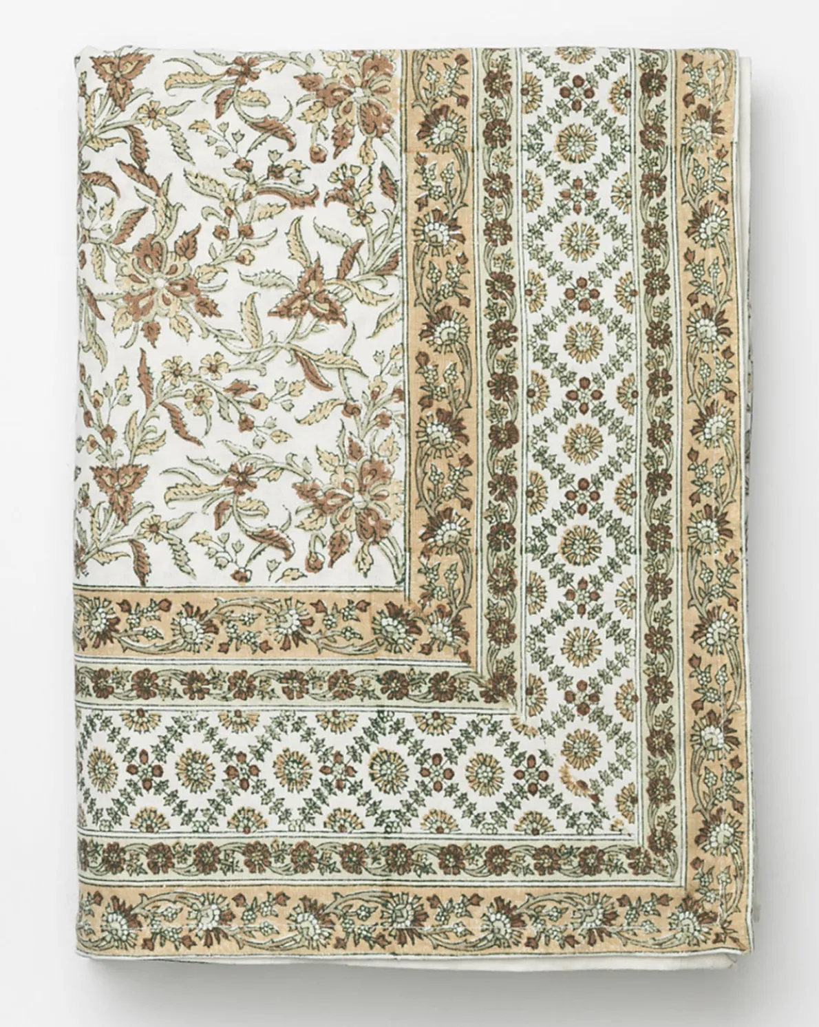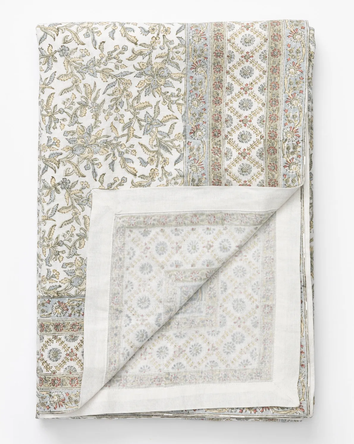 Block printed in a botanical motif, the Estelle Block Print Tablecloth is crafted from a linen-cotton blend for a delicate softness that complements its floral pattern. A natural palette and hemmed border complete the look of this patterned tablecloth, which offers a welcoming, cozy atmosphere to your dining spaces.